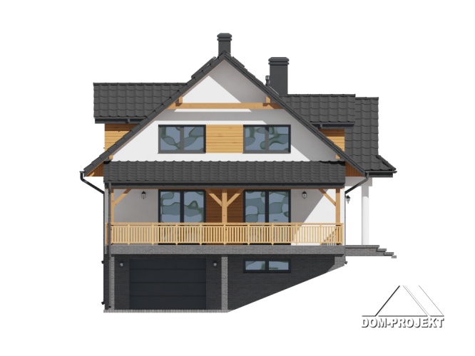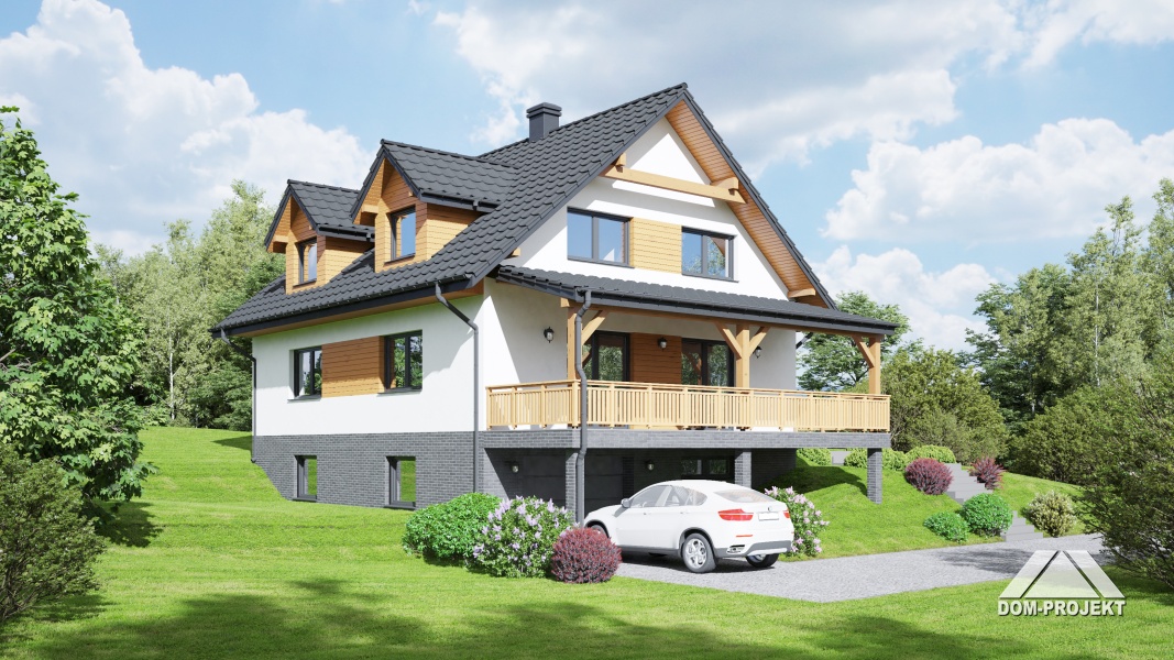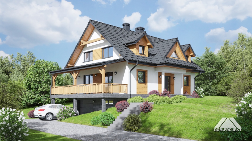 Projekt domu mieszkalnego parterowego, z poddaszem mieszkalnym, podpiwniczonego, z garażem.