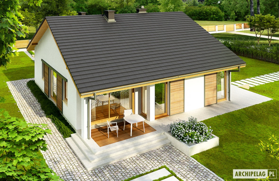 2 sypialnie, mniejsza powierzchnia użytkowa, dach o kącie nachylenia 25°, z