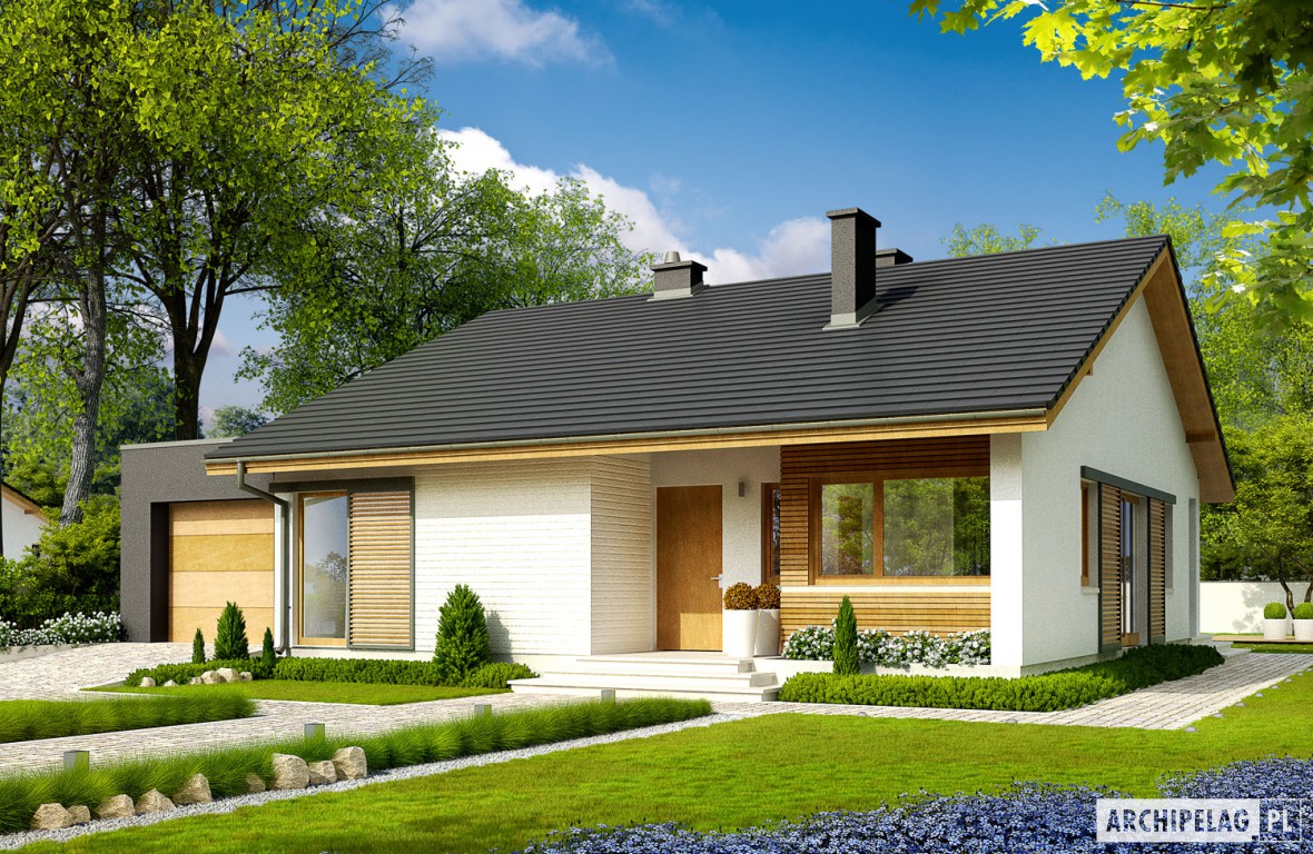 2 sypialnie, jadalnia z wykuszem, dach o kącie nachylenia 25°, bez garażu i z
