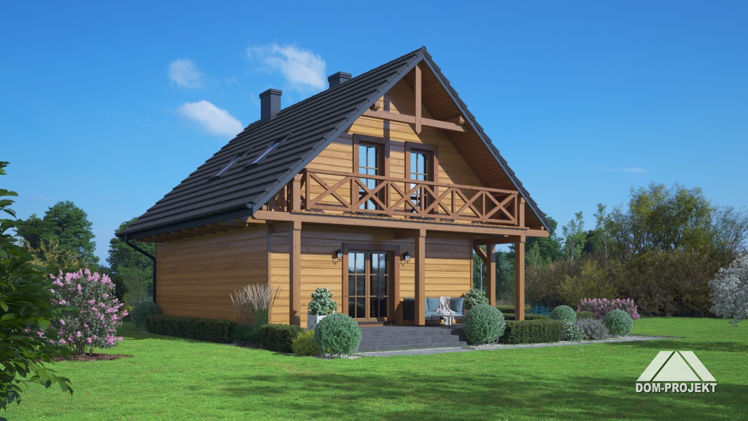 Projekt wygodnego domu w konstrukcji szkieletu drewnianego, o klasycznej ponadczasowej architekturze. Sercem domu jest wygodny salon z jadalnią i kuchnią oraz wyjściem na częściowo zadaszony taras. Program funkcjonalny parteru uzupełnia łazienka, kotłownia oraz wiatrołap. Poddasze to strefa prywatna domowników – zostały przewidziane tam trzy sypialnie oraz wygodna, wspólna łazienka. Technologia budowy (szkielet drewniany) oraz prosta, zwarta bryła budynku i dach dwuspadowy sprzyjają szybkiej i taniej budowie oraz obniżają koszty eksploatacji.