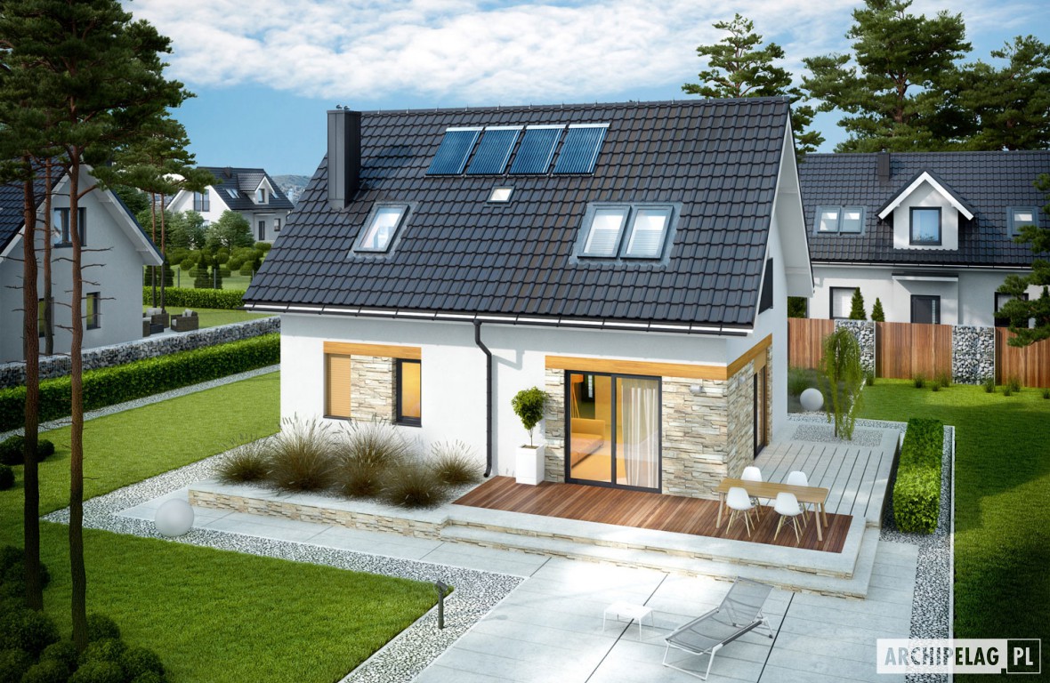 – Witek II – podobny układ funkcjonalny, inne wykończenie elewacji, różne wersje garaży