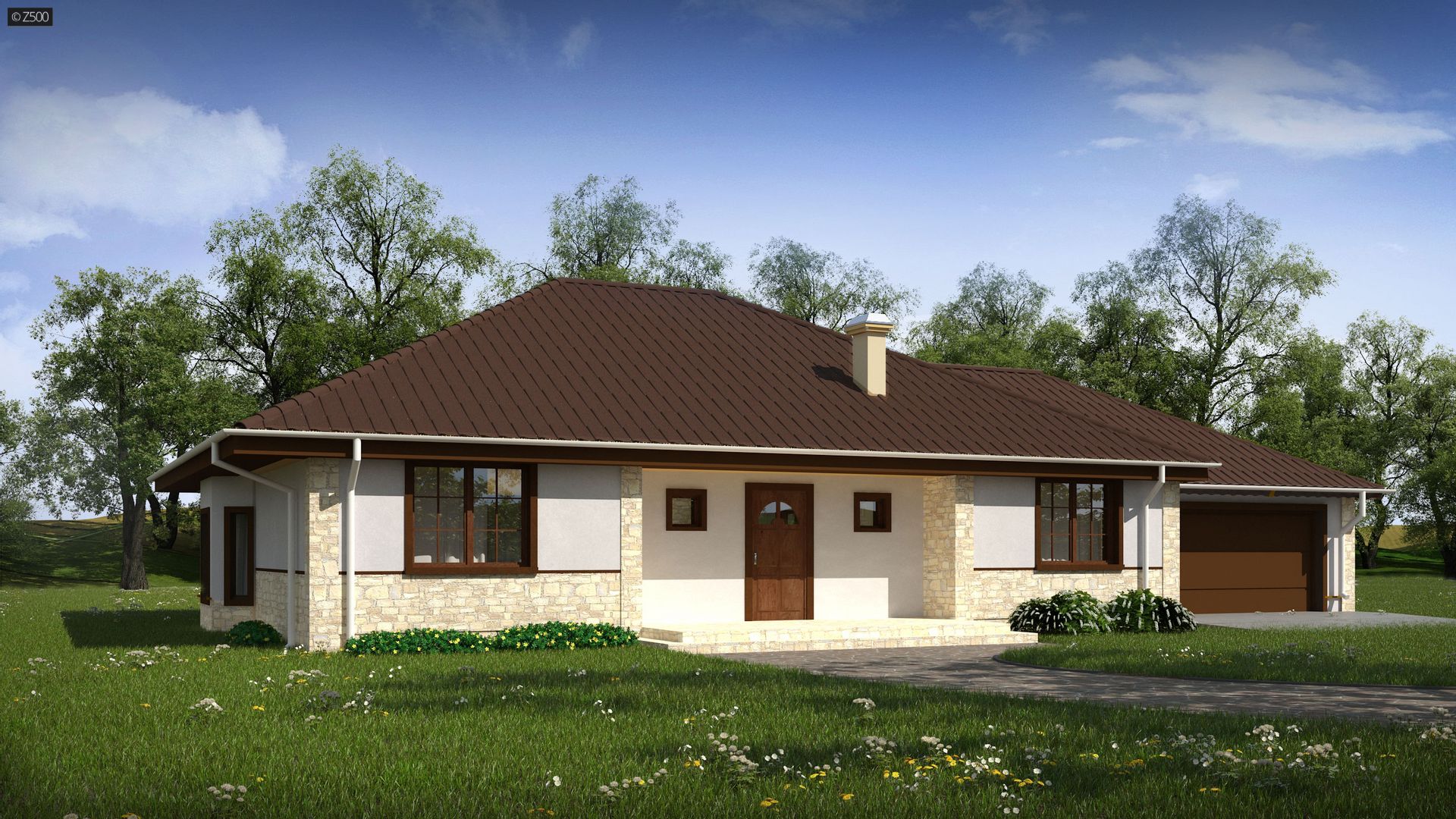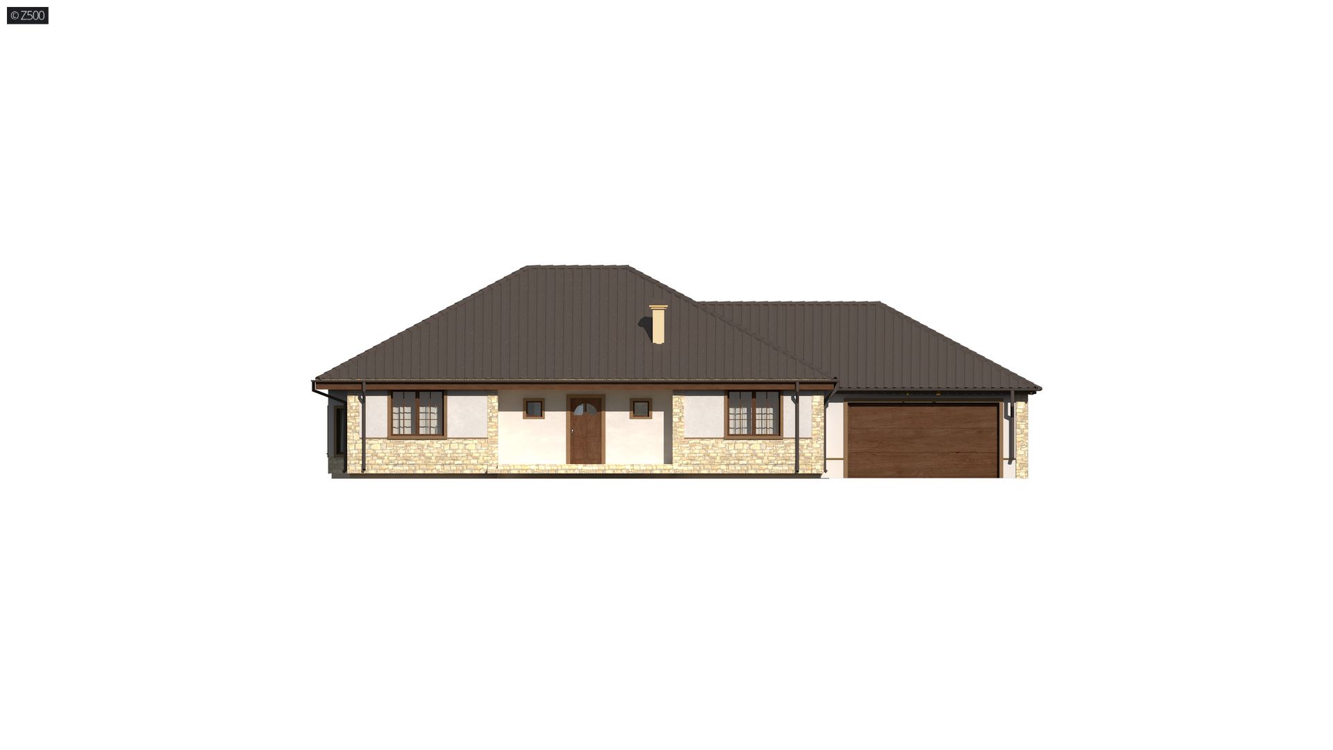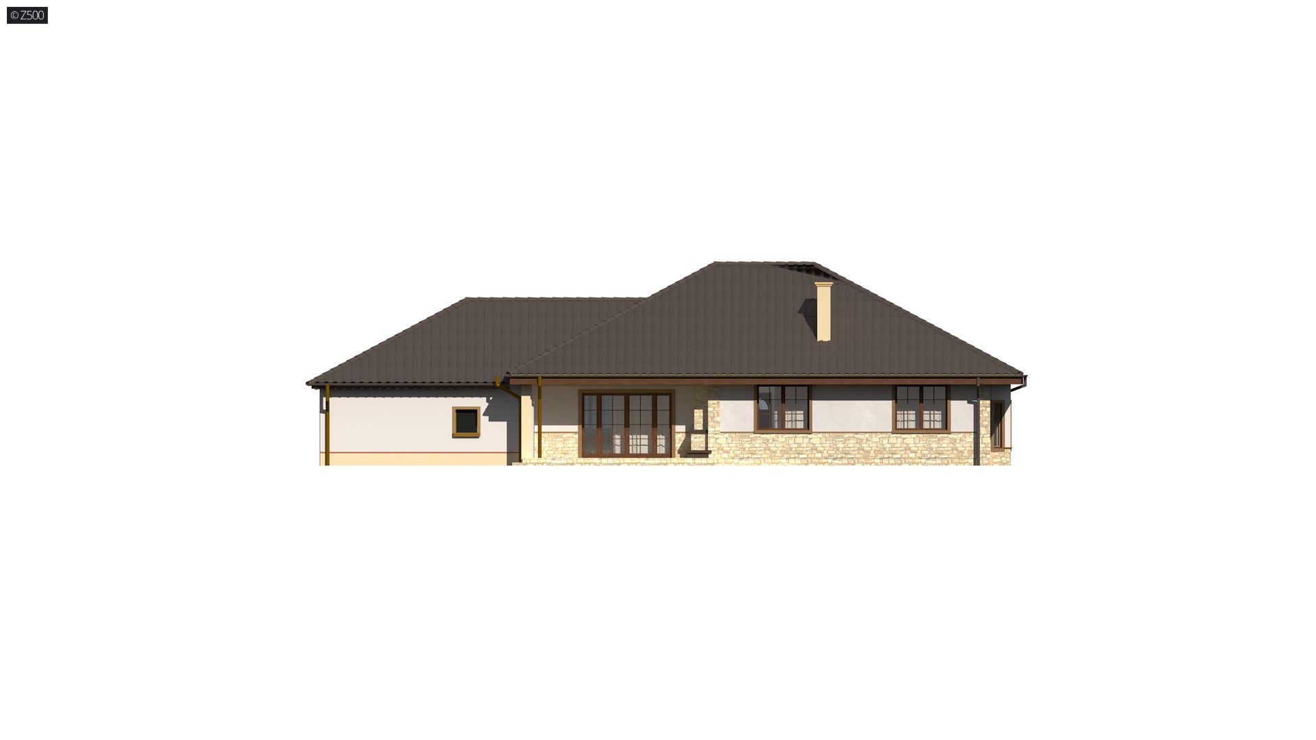 Wariant w odbiciu lustrzanym z garażem dwustanowiskowym z prawej strony budynku (51m2). Projekt ze stropem drewnianym nieużytkowym.