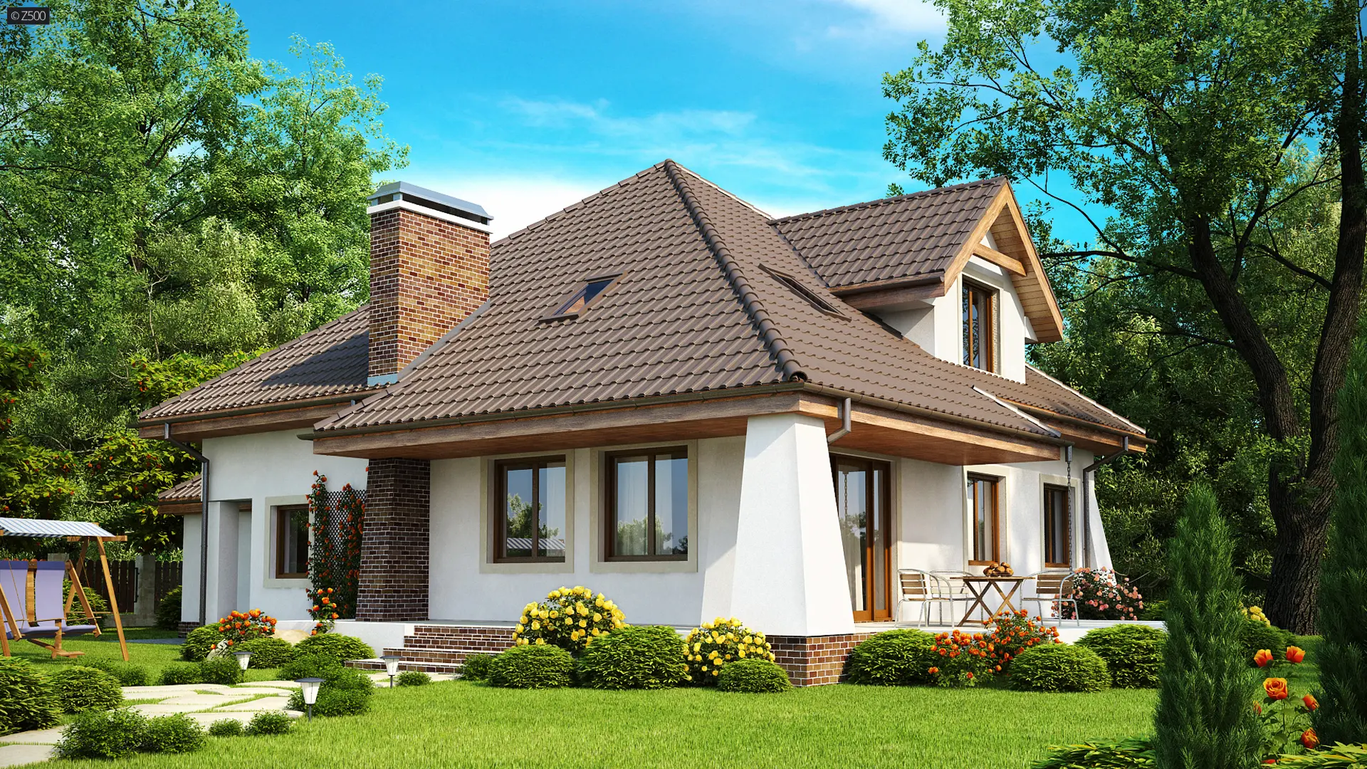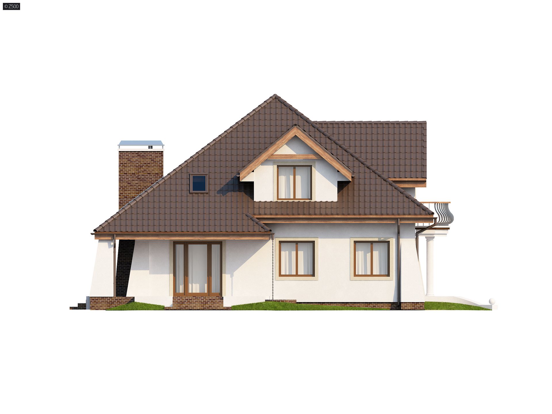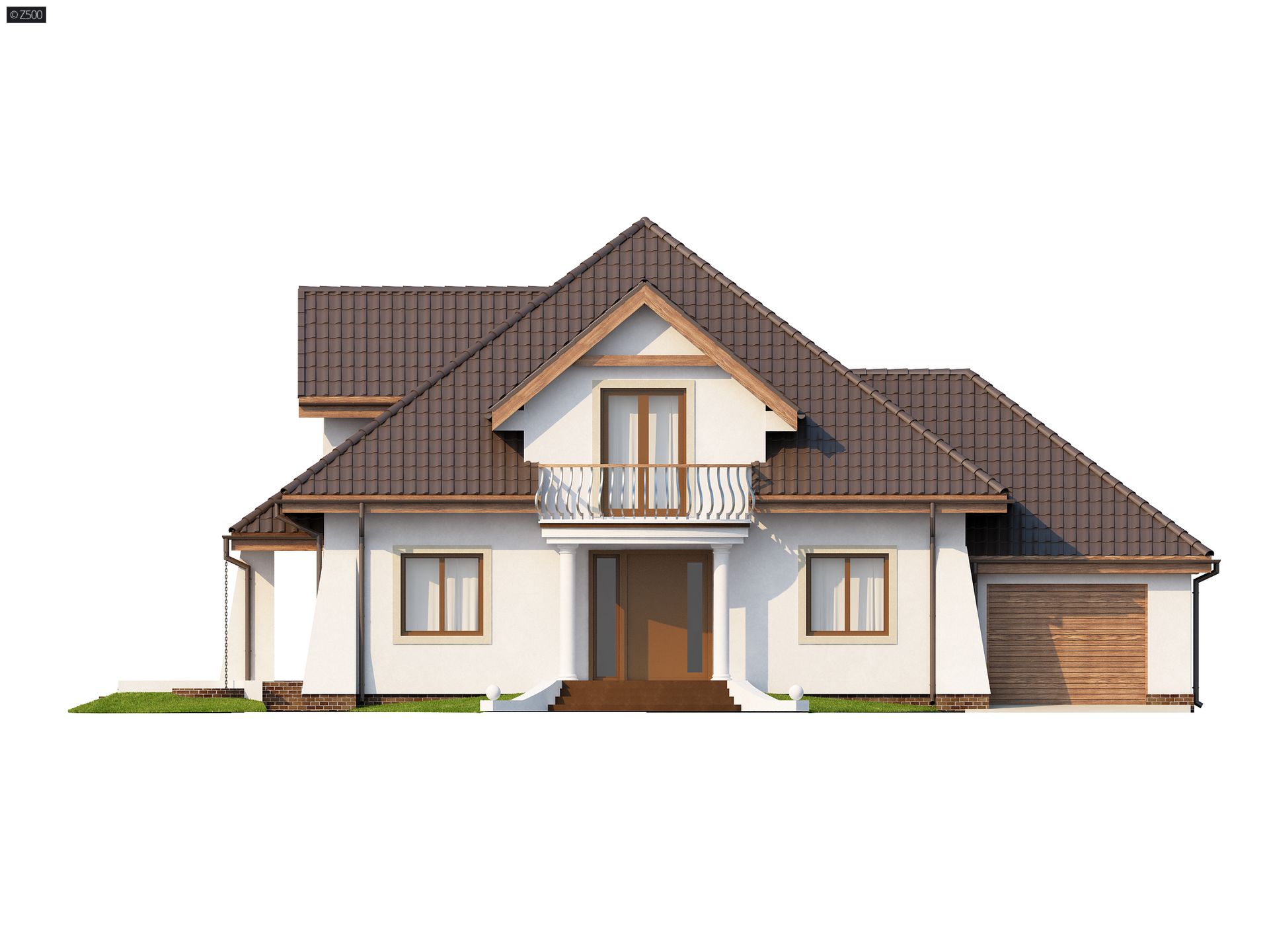 Z109 to projekt funkcjonalnego domu z poddaszem użytkowym. Charakter domu podkreślają zgrabne przypory oraz półkolisty balkonik od frontu.