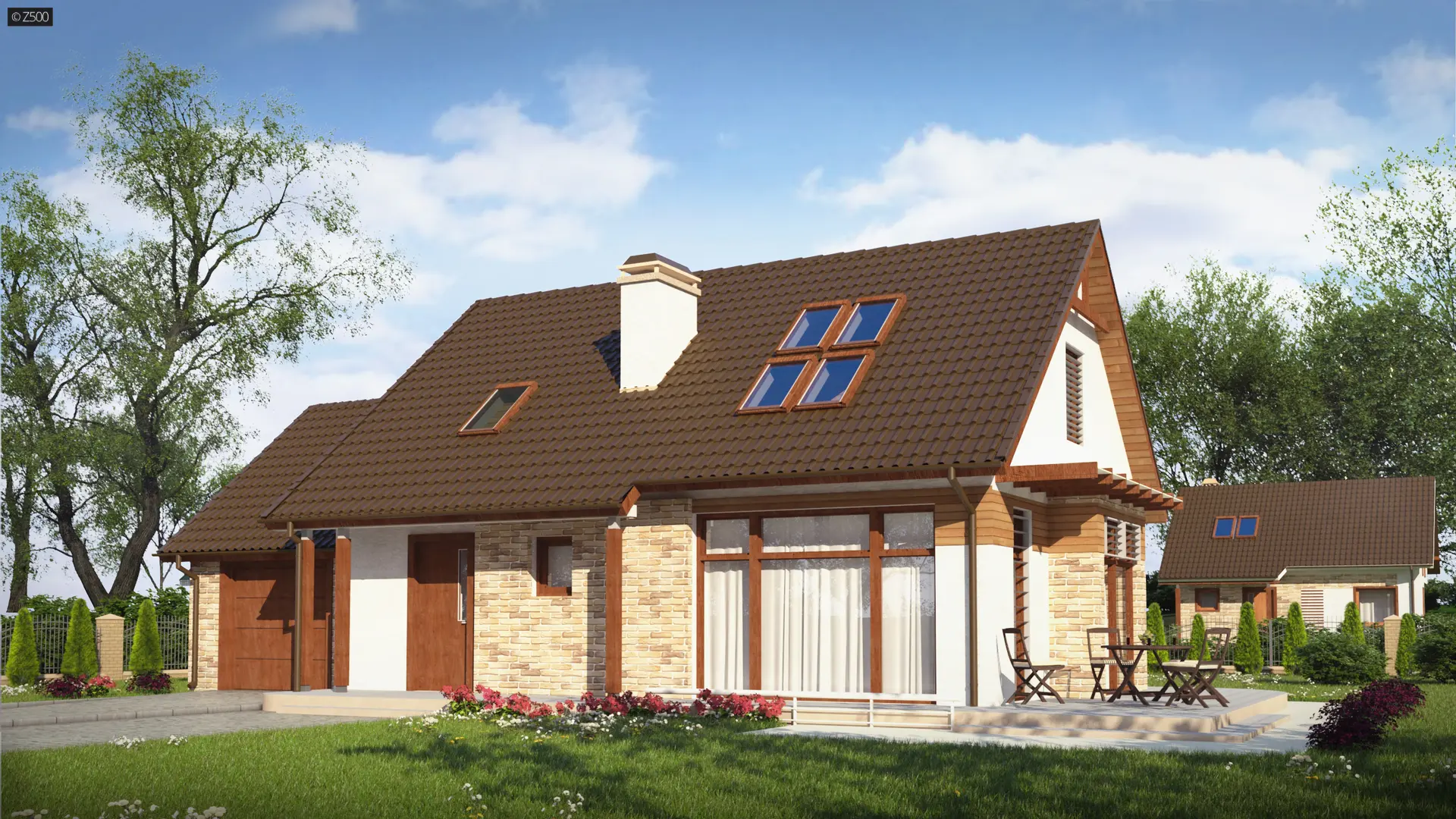 Wariant z garażem po lewej stronie.
