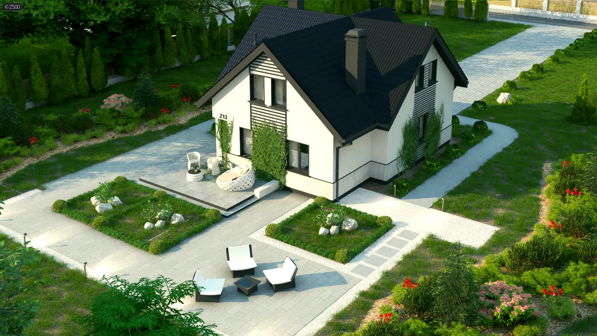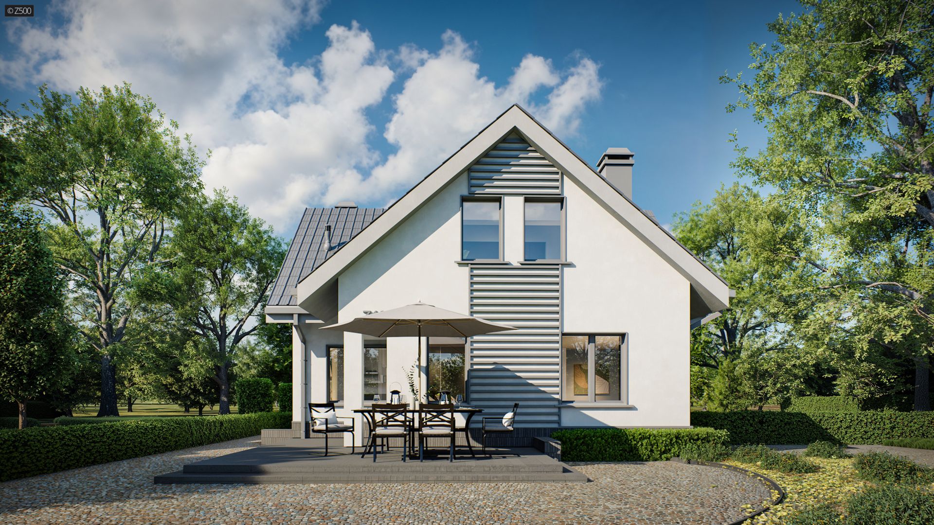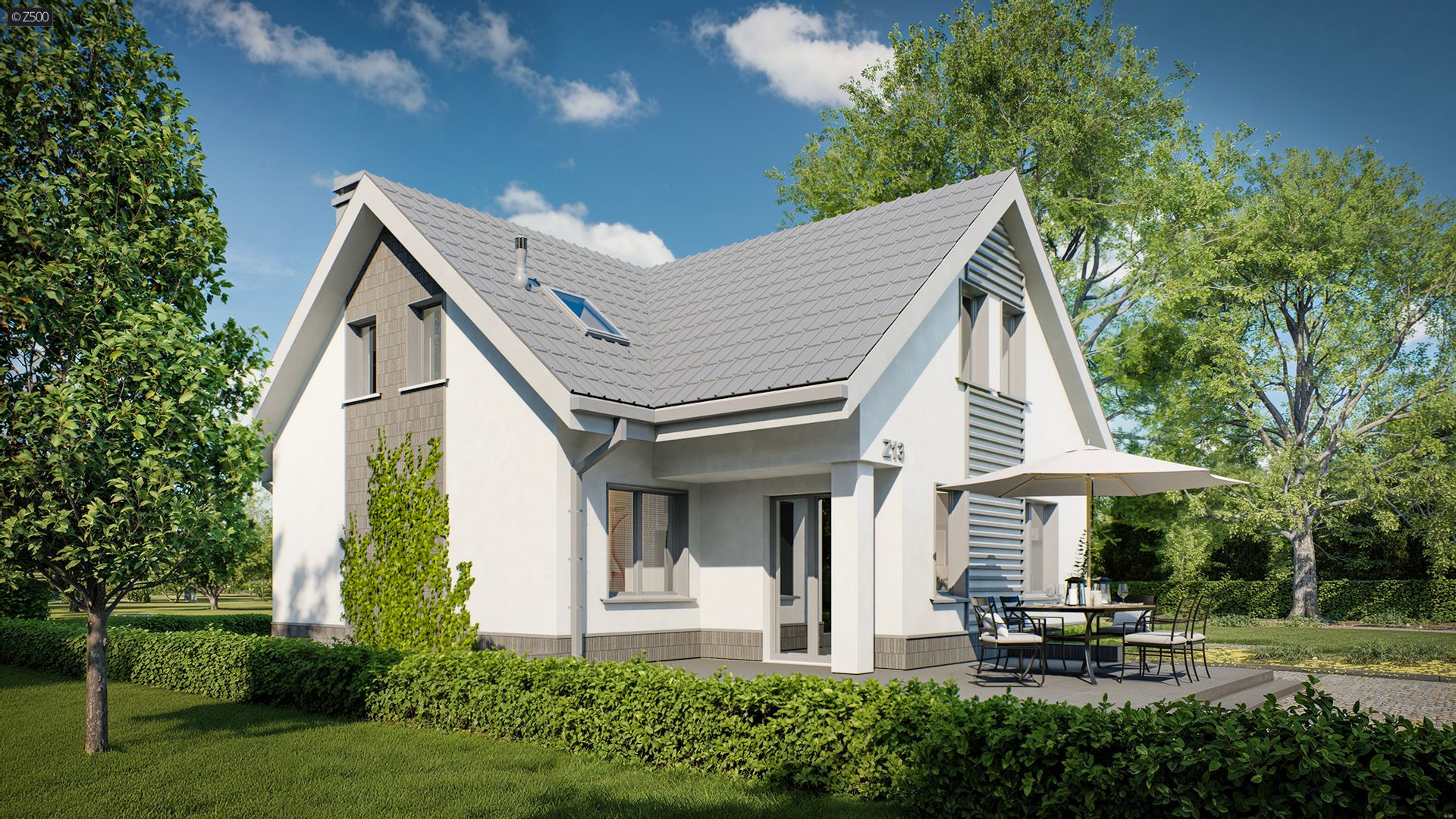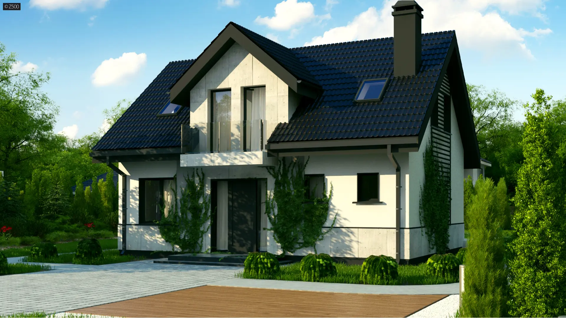 Z13 to wygodny i funkcjonalnym dom o przyjemnym wyglądzie zewnętrznym. Zgrabna bryła dobrze komponuje się zarówno w zwartej zabudowie jak i otwartej przestrzeni. Strefę wejściową podkreśla balkon chroniący jednocześnie przed wpływami atmosferycznymi.