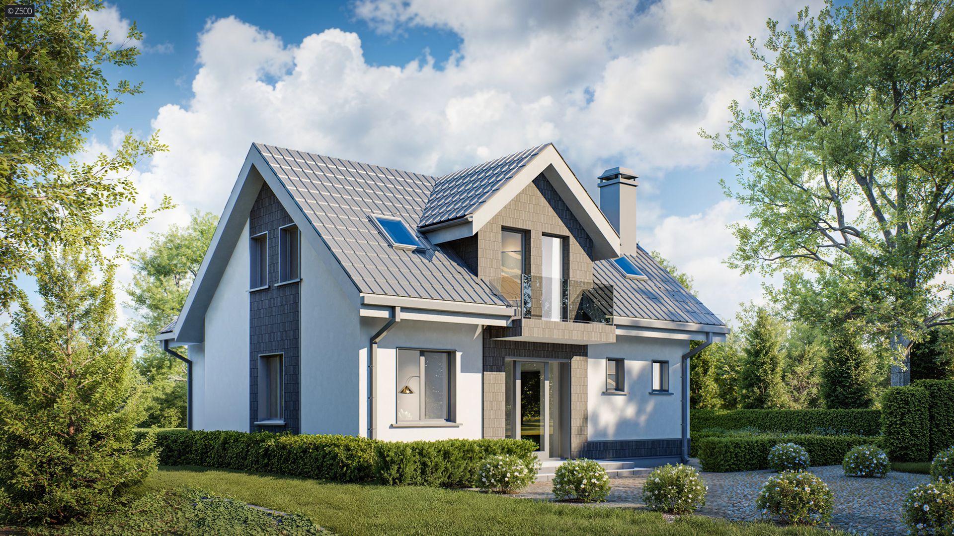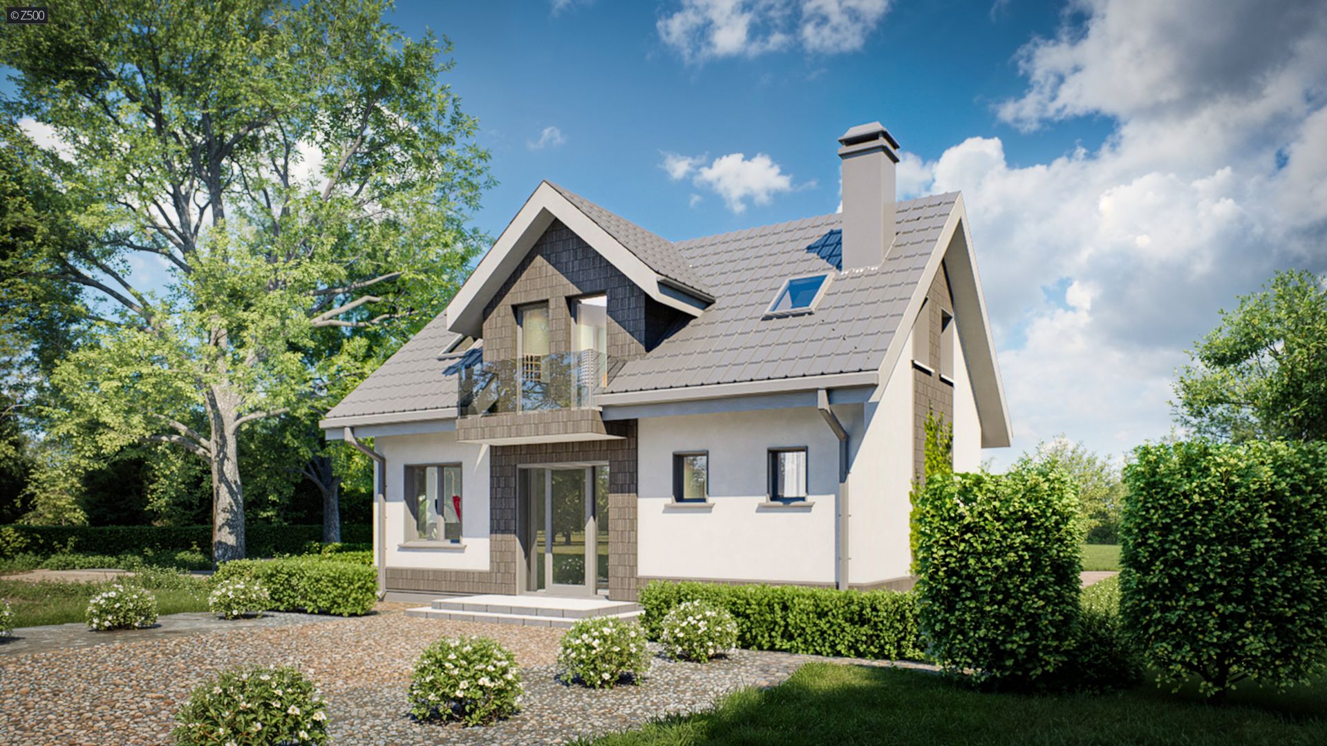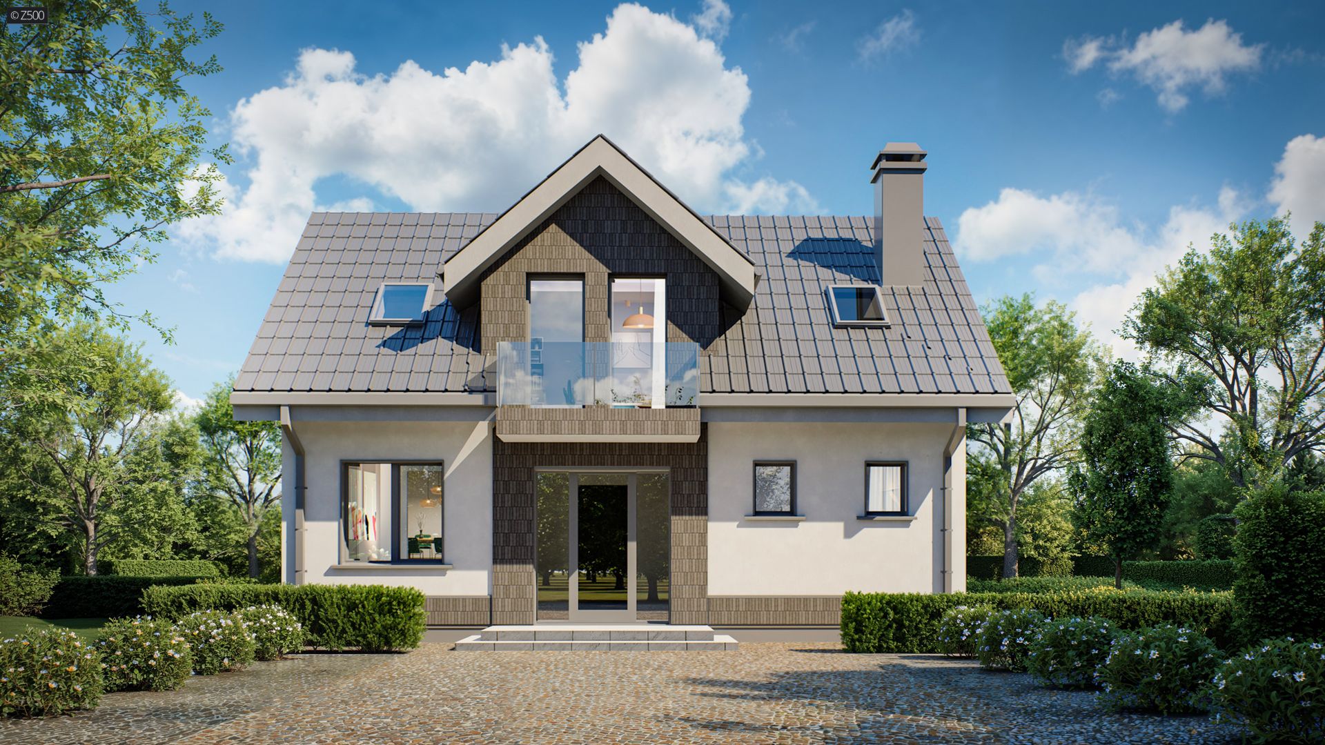 Funkcjonalny i ekonomiczny dom z poddaszem użytkowym oraz balkonem nad wejściem