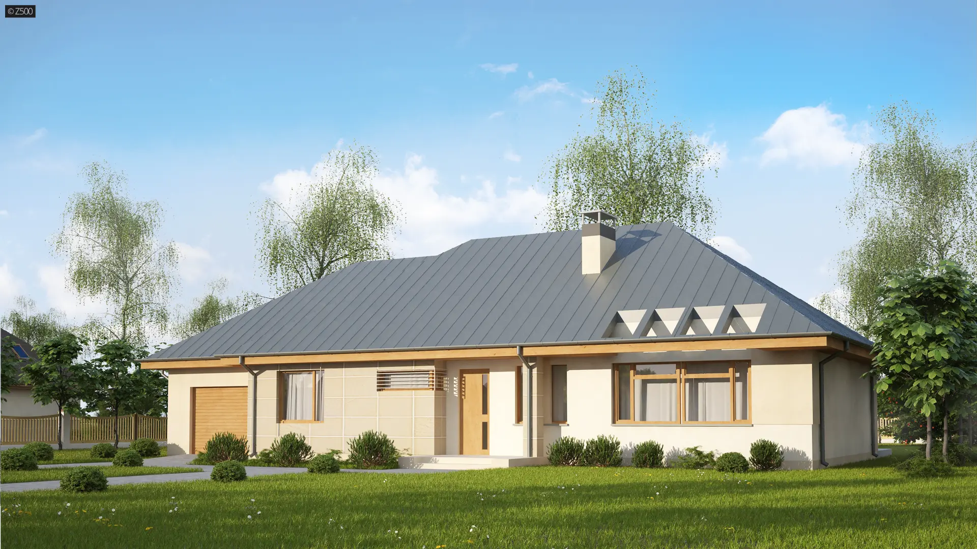 Wersja z garażem jednostanowiskowym z lewej strony.