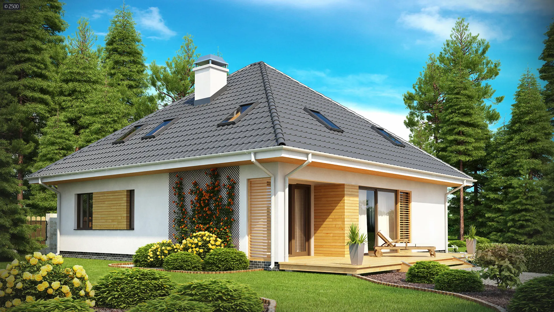 Z143 to ciepły i niezwykle urokliwy projekt domu. Bryła ujmuje swą dokładnością i dbałością o detale. Zgrabny wykusz i delikatny podcień podkreślają przytulny wyraz domu.