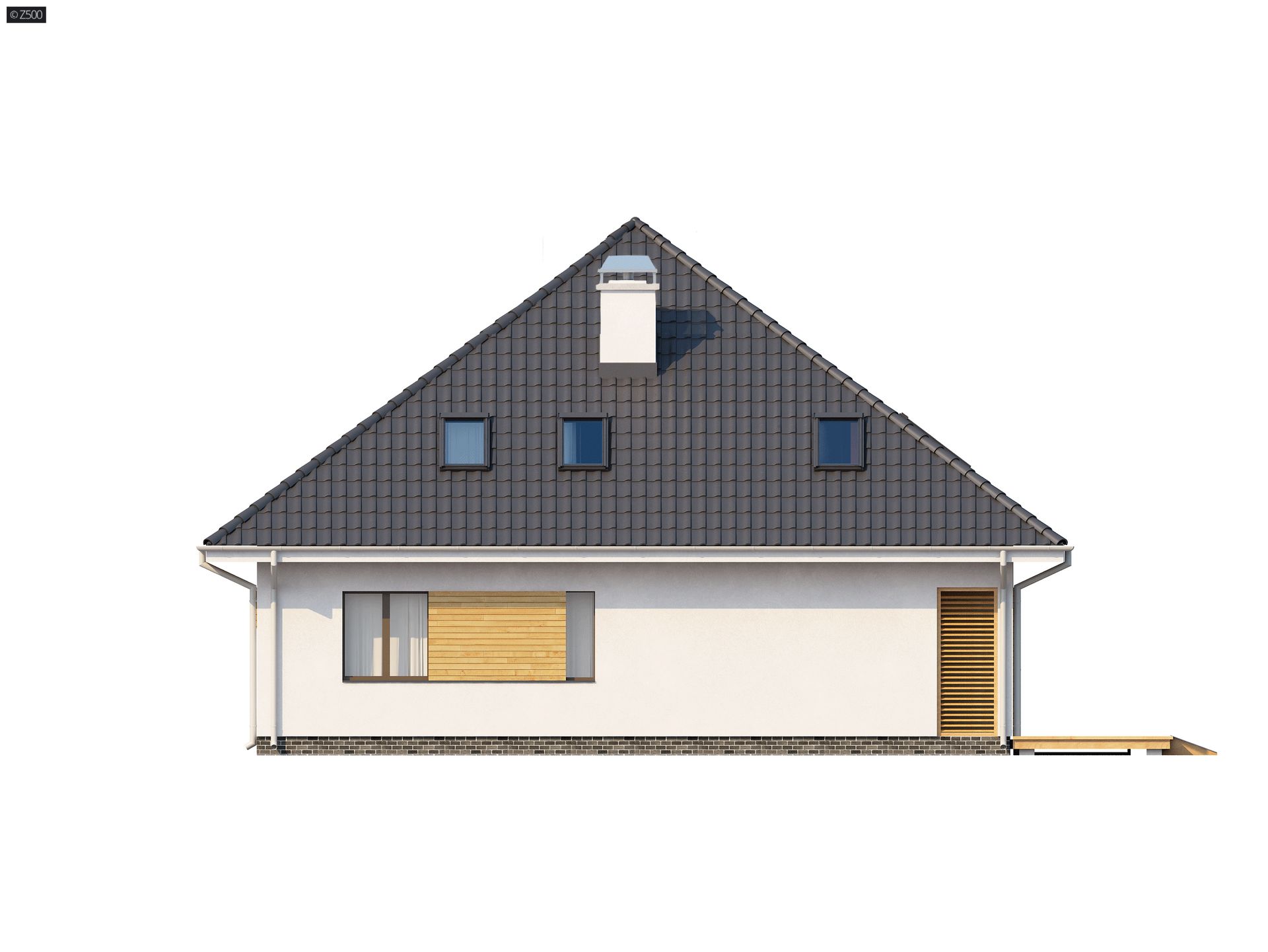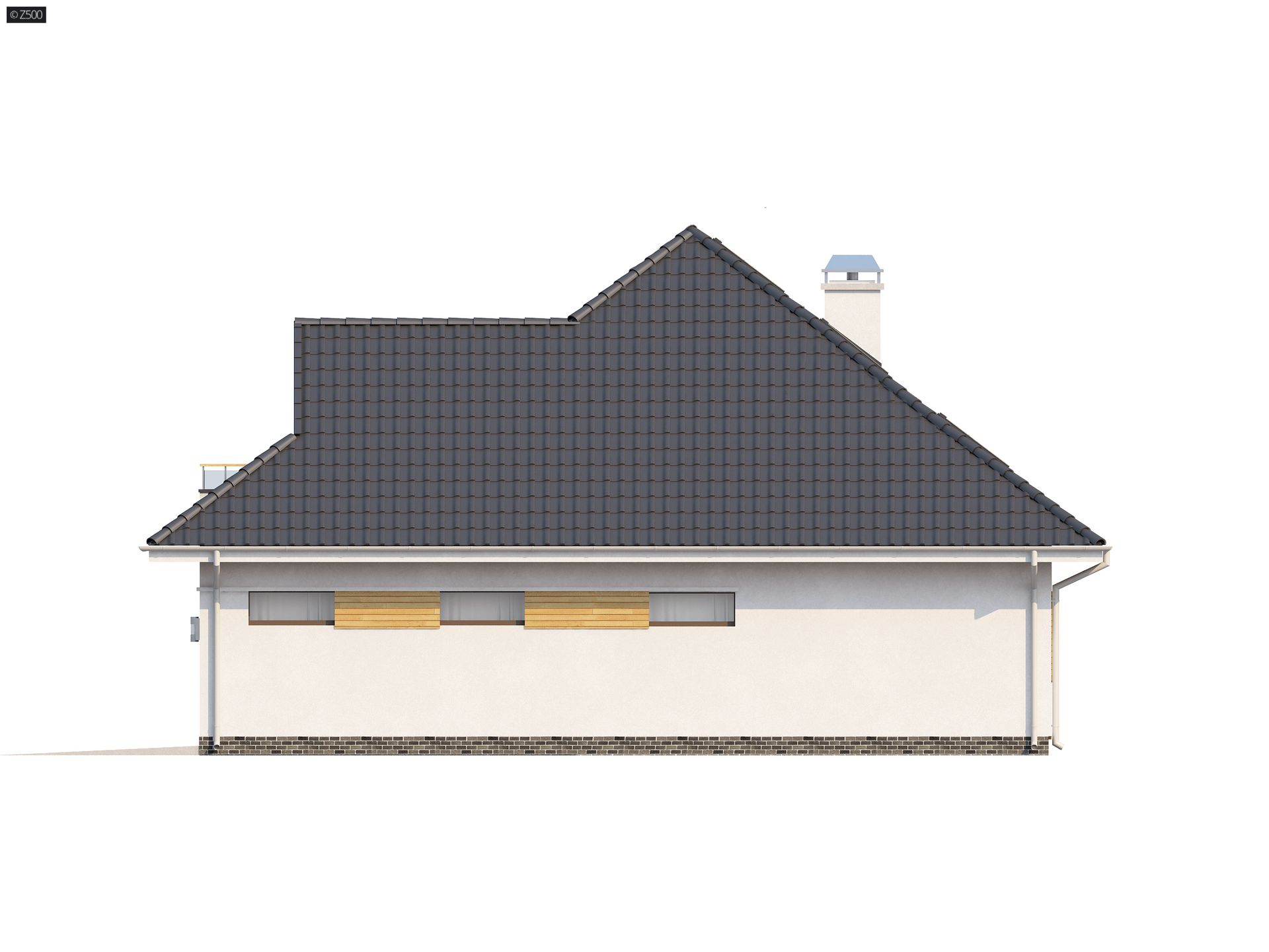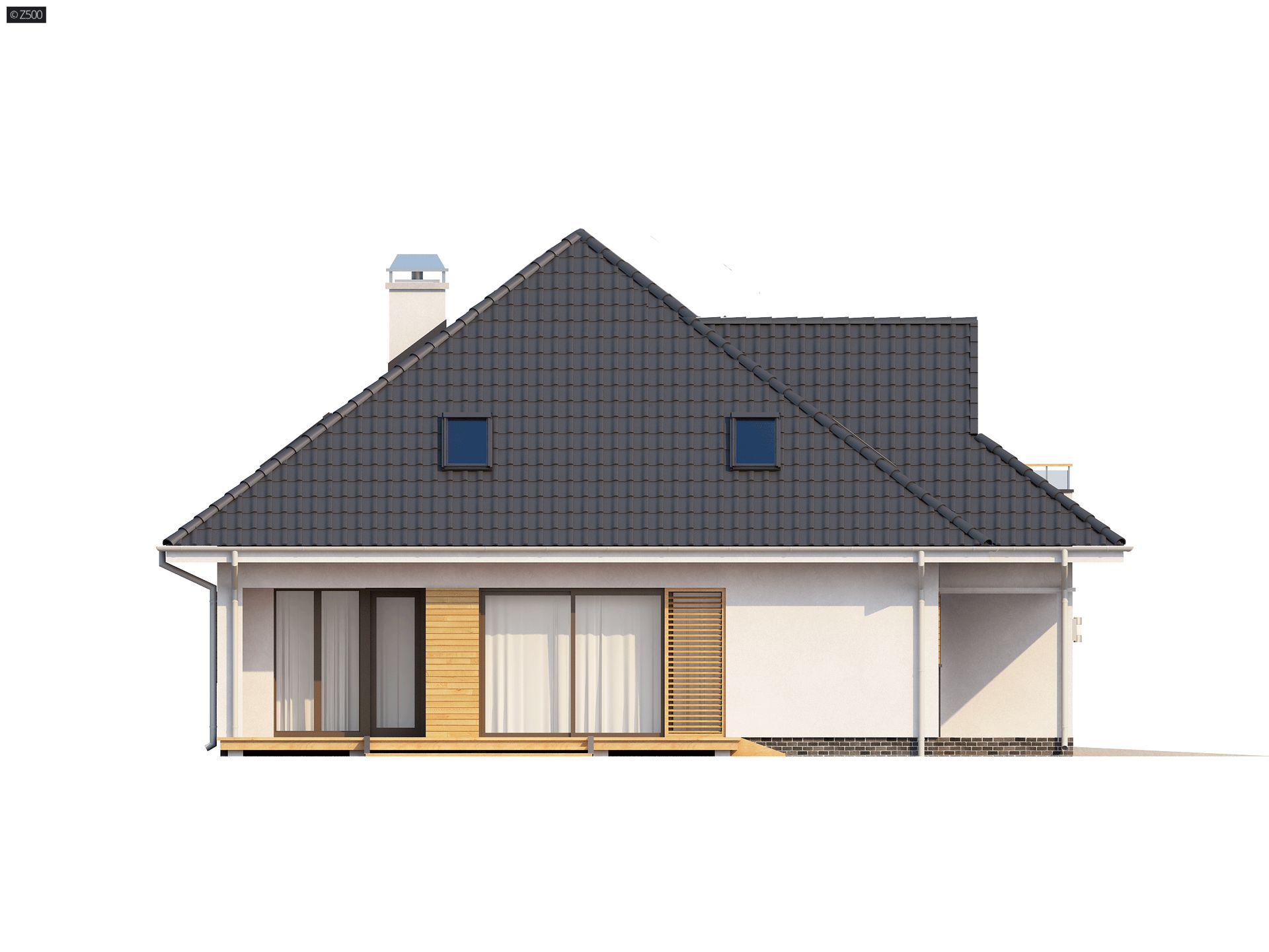 Największą zaletą projektu Z143 jest przestrzeń salonowa, subtelnie podzielona na dwie części. Pierwsza tworzy miejsce spotkań i wspólnego biesiadowania przy stole. Druga jest idealna do wypoczynku i relaksu. Delikatnie przesłonięta kuchnia posiada własną, podręczną spiżarnię. Na parterze znajdziemy również wygodny pokój gościnny ze spora garderobą oraz praktyczną łazienkę. Na pietrze znajdują się trzy przestronne sypialnie. Największa i najbardziej ekskluzywna z nich posiada własną garderobę, łazienkę oraz osobne wyjście na balkon. Wygodnie urządzony pokój kąpielowy ma oddzielne miejsce na pralnię. Świetlik jako opcja. Konstrukcja budynku zaprojektowana jest tak, aby można było w łatwy i prosty sposób, bez dodatkowych przeliczeń wykonać szklany świetlik w kalenicy.