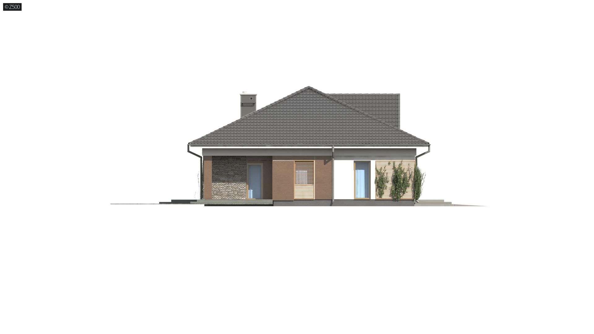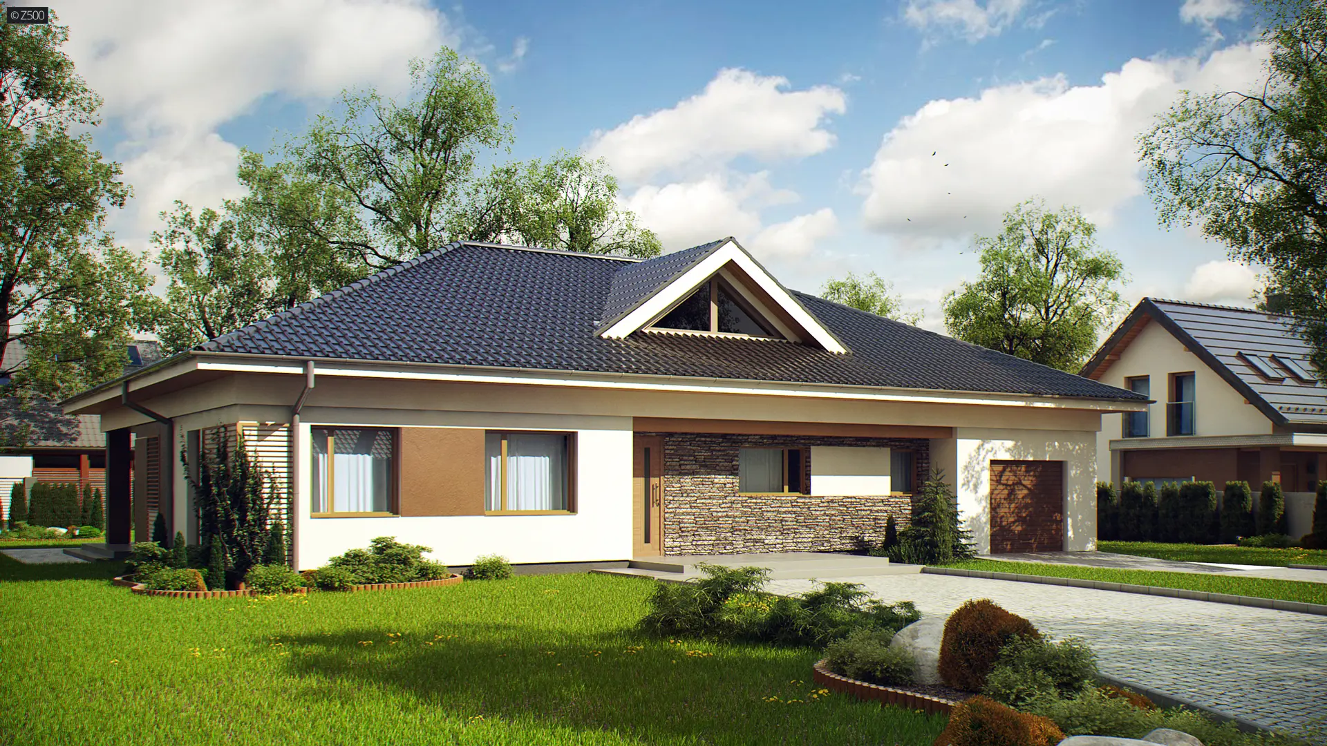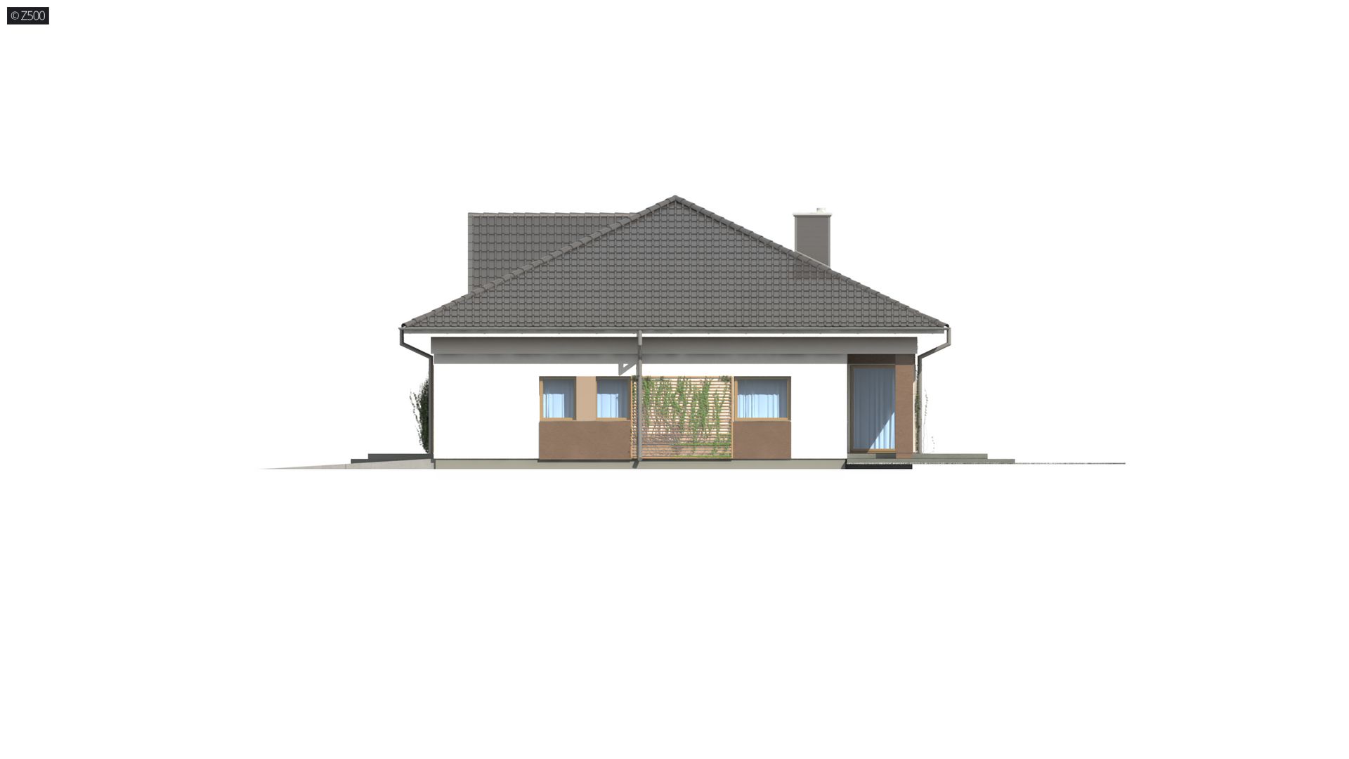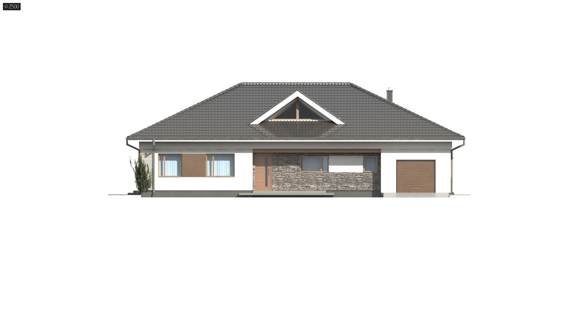 Z153 to zgrabny parterowy dom z garażem jednostanowiskowym z prawej strony. Klasyczne elementy elewacji wpływają na jego atrakcyjny i elegancki wygląd.
