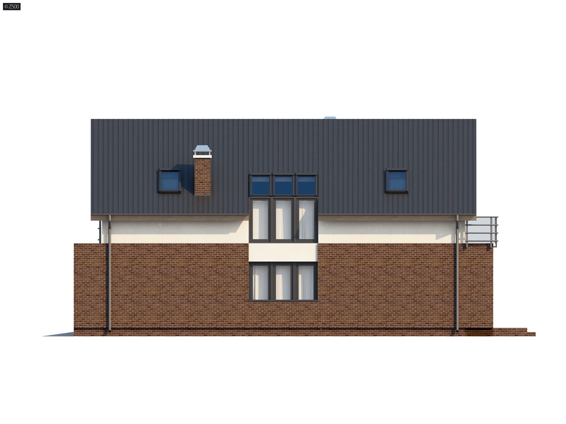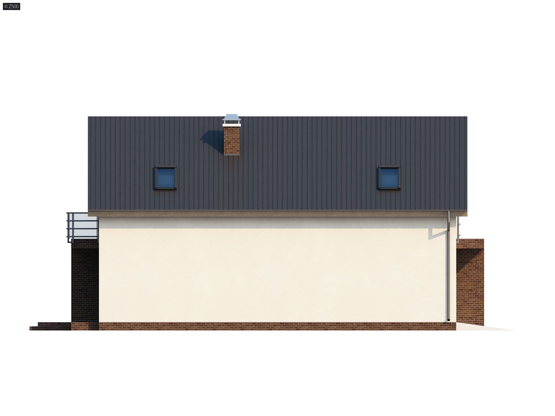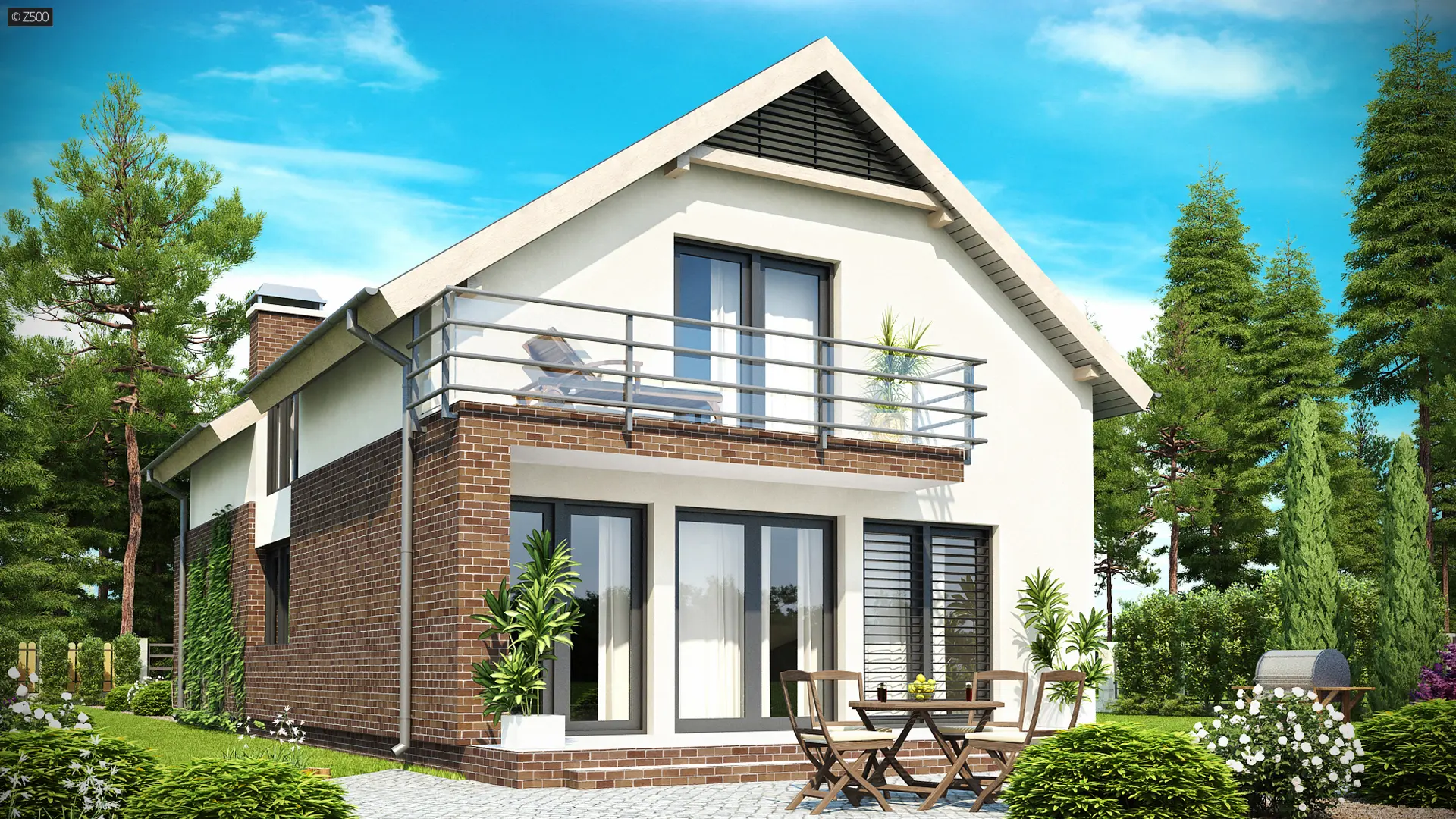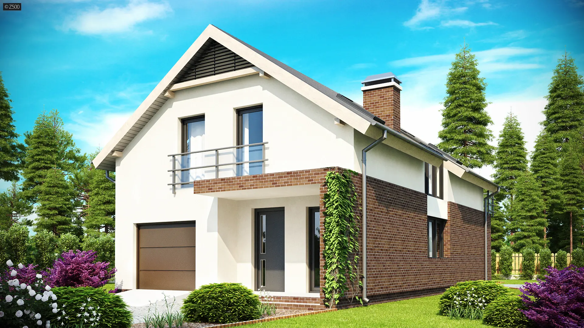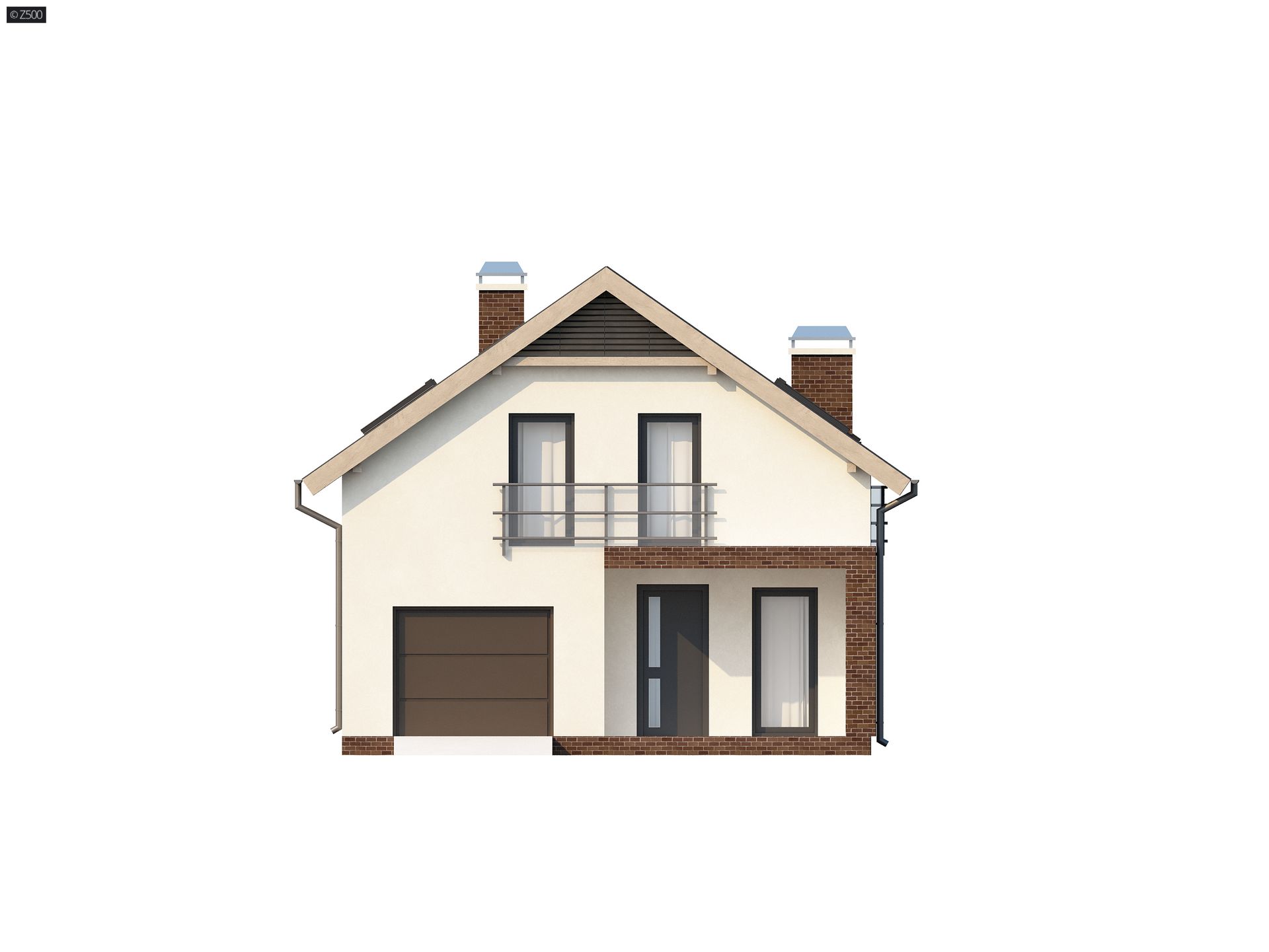 Z154 dom o podłużnym rzucie z garażem w bryle i dachem dwuspadowy. Prosta bryła czynią go tanią i ekonomiczną inwestycją. Projekt wyróżnia się ciekawą, ceglaną elewacją, idealnie skomponowaną z jasnym odcieniem ścian. Wnętrze domu jest przestronne i funkcjonalne. Na szczególną uwagę zasługuje duży, jasny salon ze skrajnie usytuowanym kominkiem.