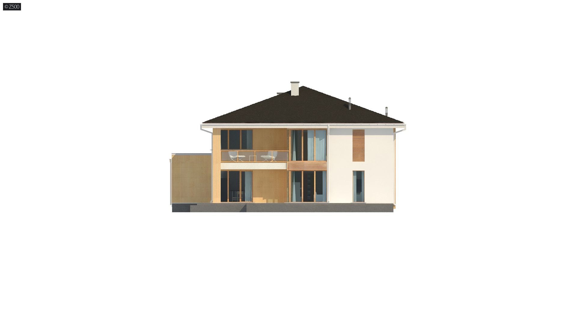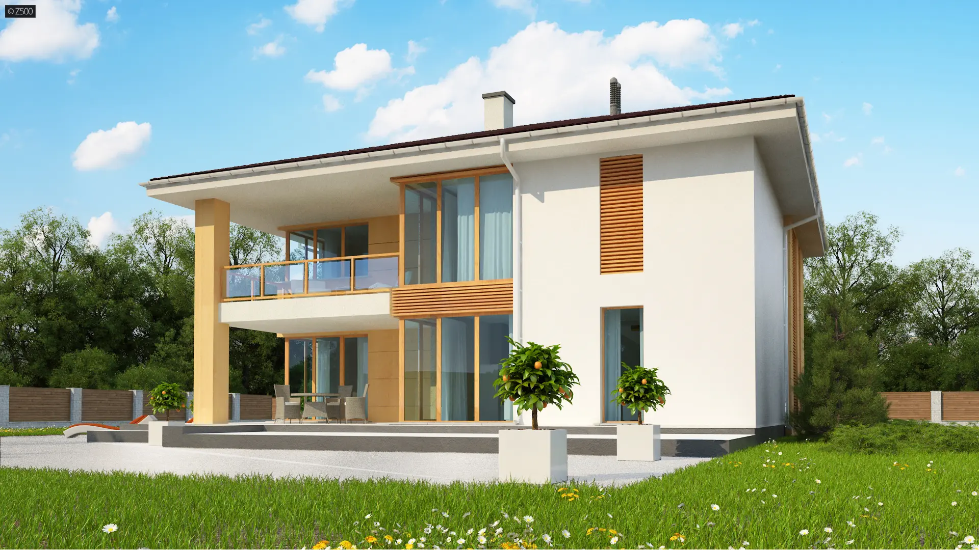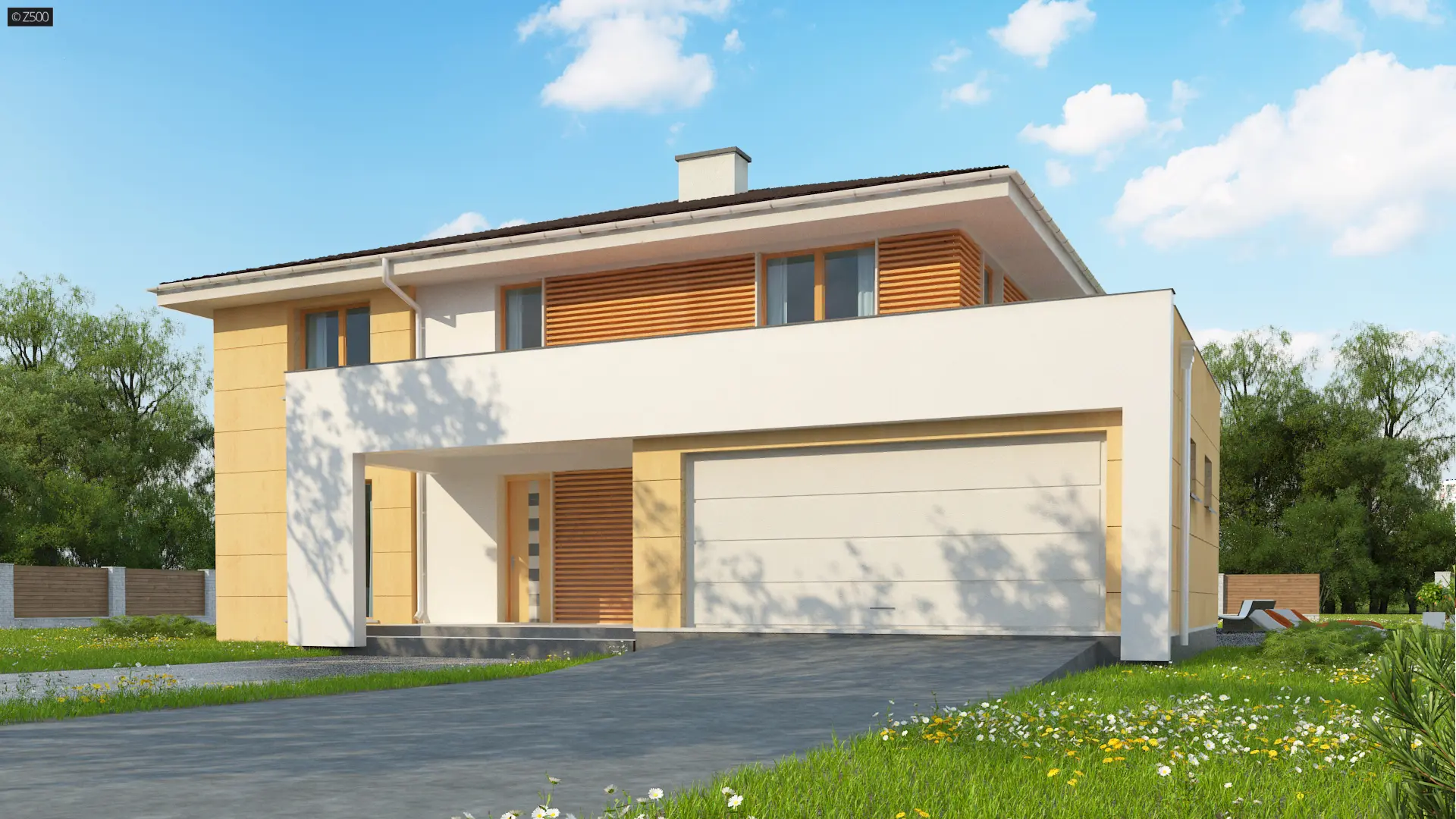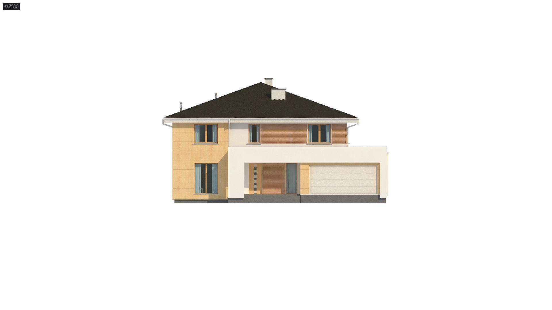 Z156_A to zgrabny dom jednorodzinny z garażem dwustanowiskowym od frontu. Elewacje utrzymane są w jasnej kolorystyce z dodatkiem drewna oraz elementów dekoracyjnych co nadaje mu eleganckiego wyglądu.