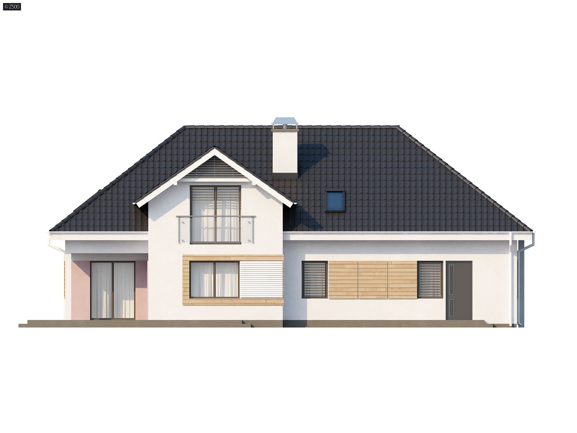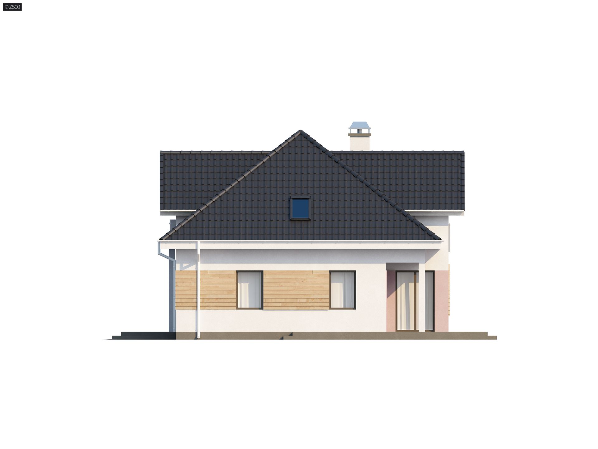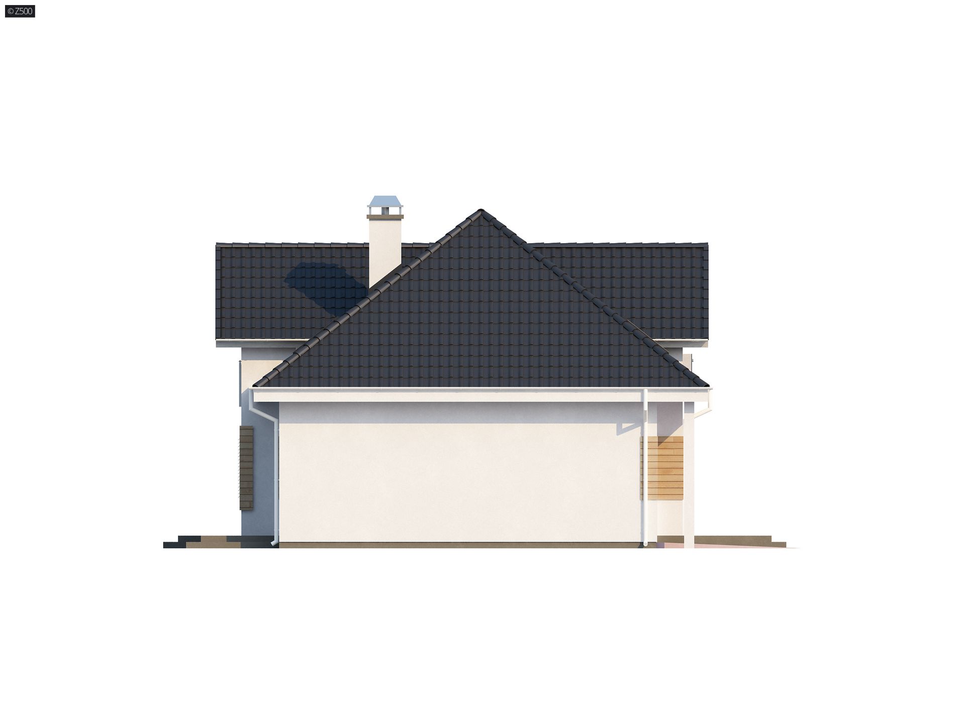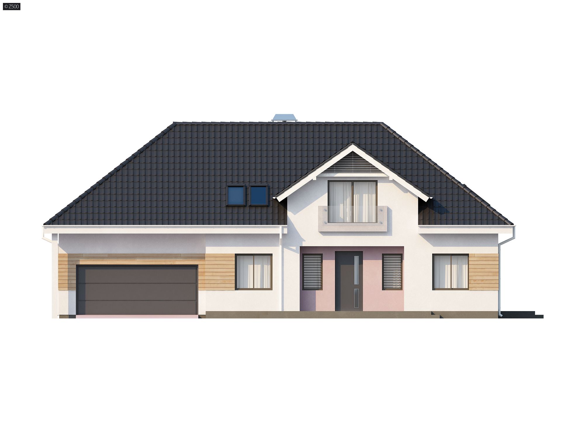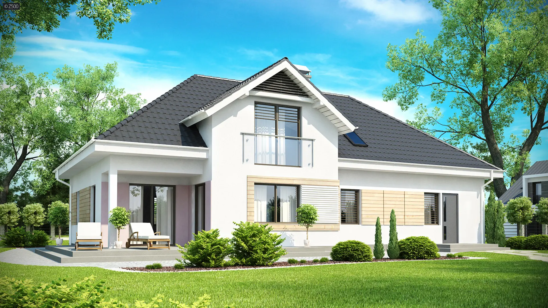 Z171 to funkcjonalny projekt domu z zaaranżowanym poddaszem. Klasyczna bryła z garażem dwustanowiskowym przekryta kopertowym dachem i wzbogacona zgrabną lukarną od frontu i strony ogrodu.