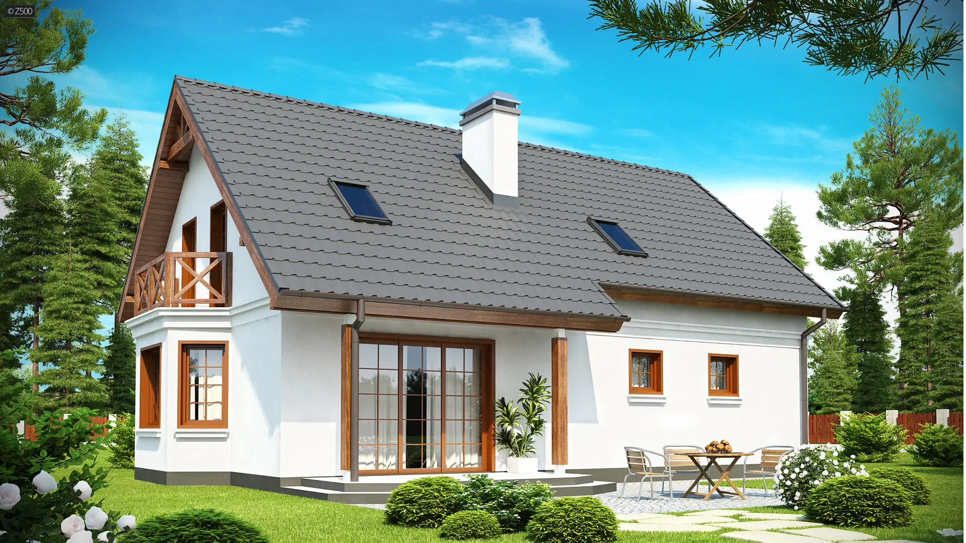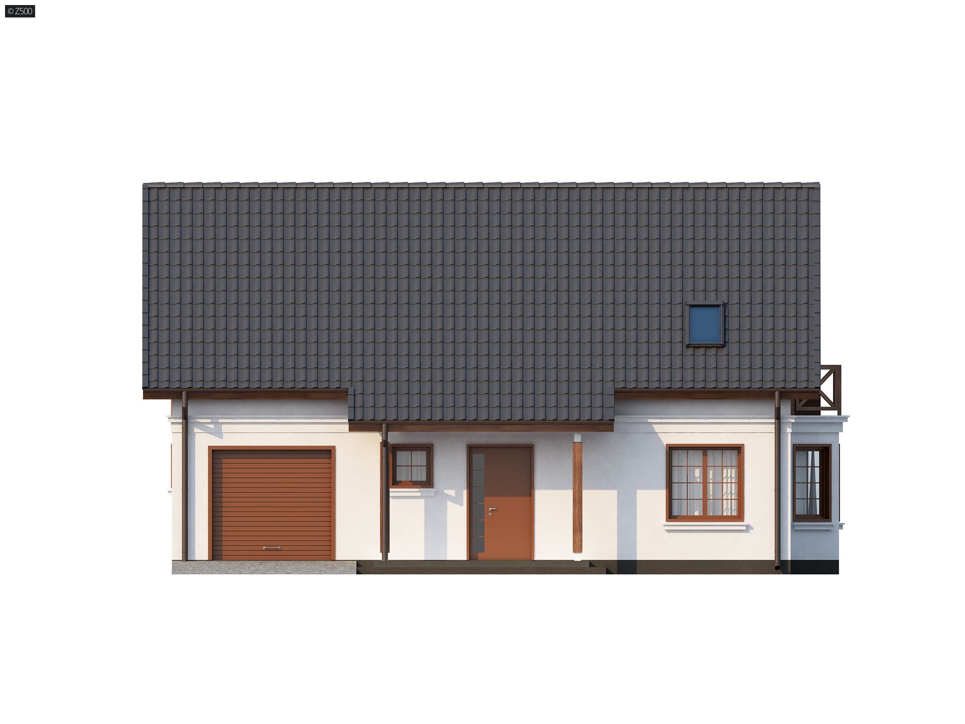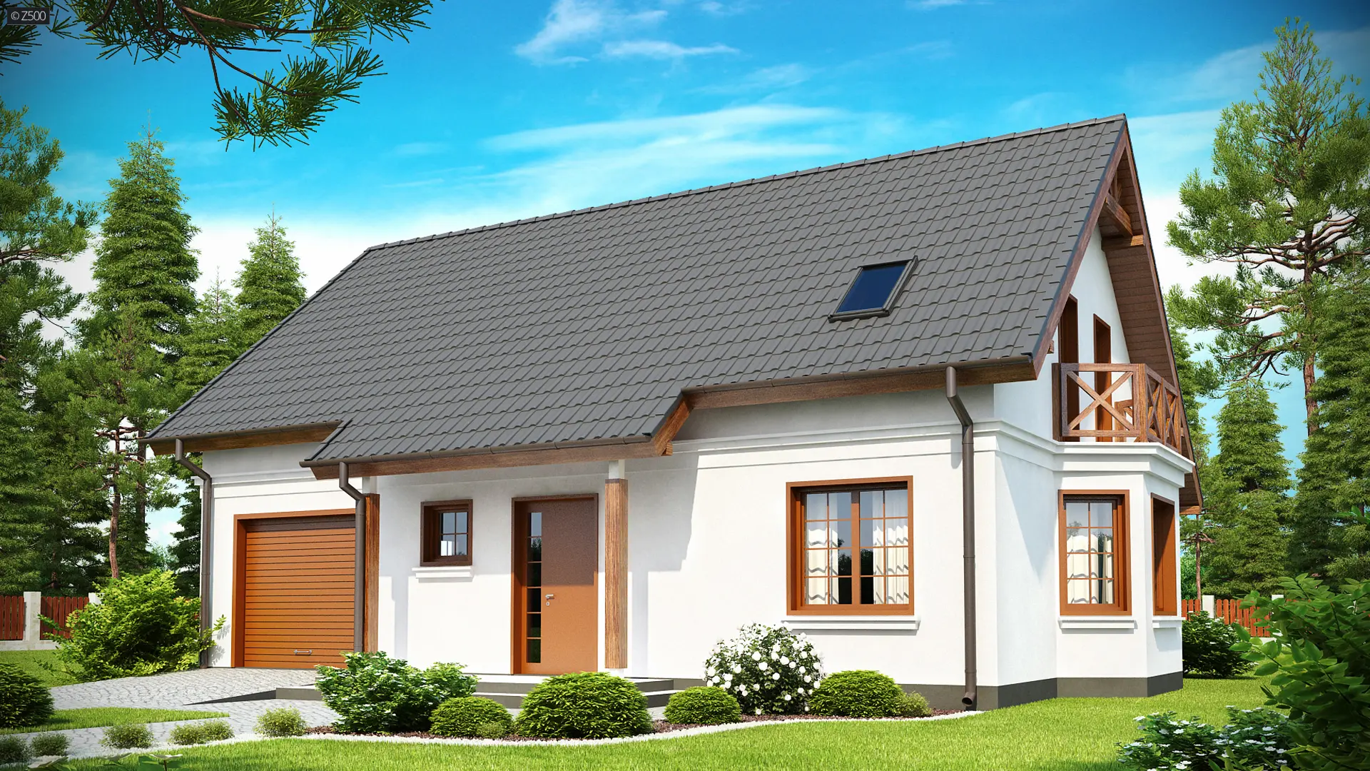Z178 to zgrabny i funkcjonalny piętrowy dom z bocznym jednostanowiskowym garażem. Zwarta, prosta bryła oraz dwuspadowy dach czynią go rozsądną, tanią w realizacji inwestycją. Eleganckie wykończenie elewacji, klasyczne dodatki oraz stolarka okienna z naturalnego drewna nadają mu wyjątkowego stylu.