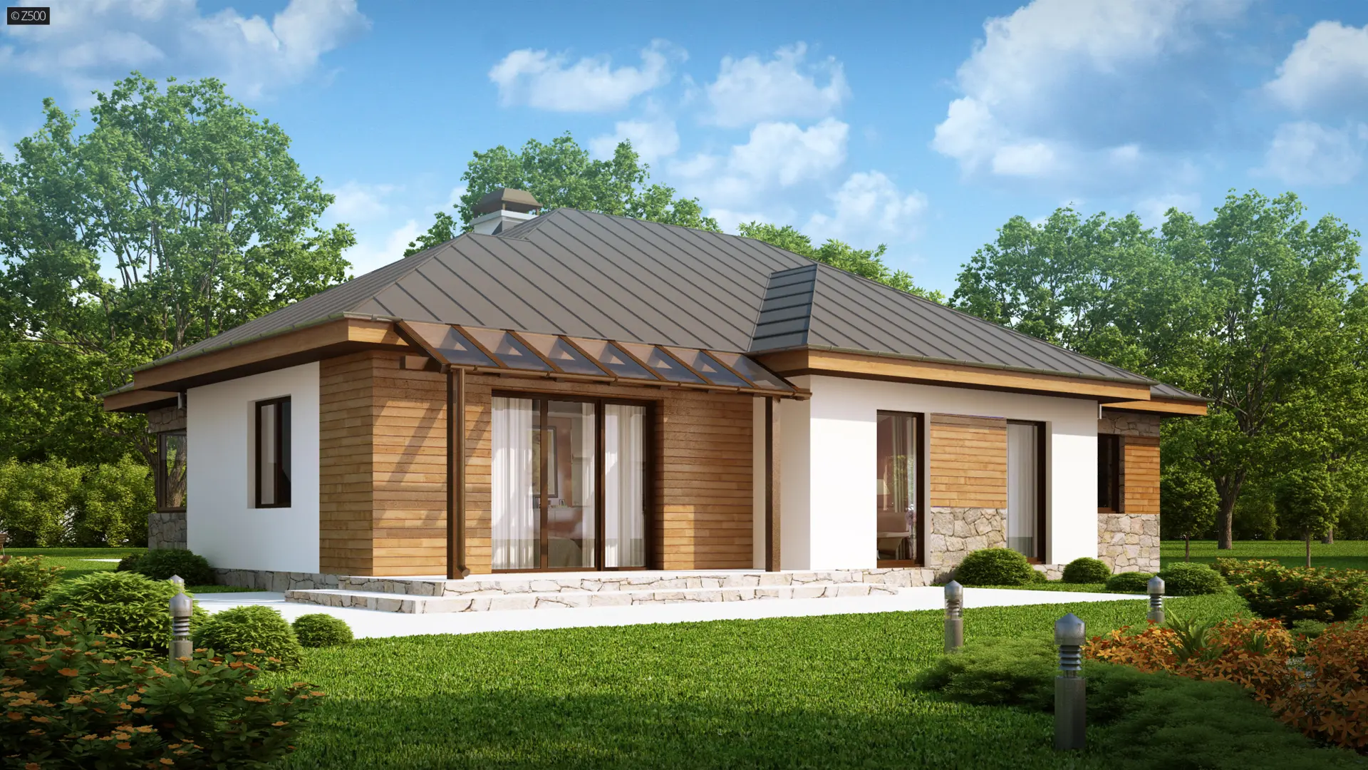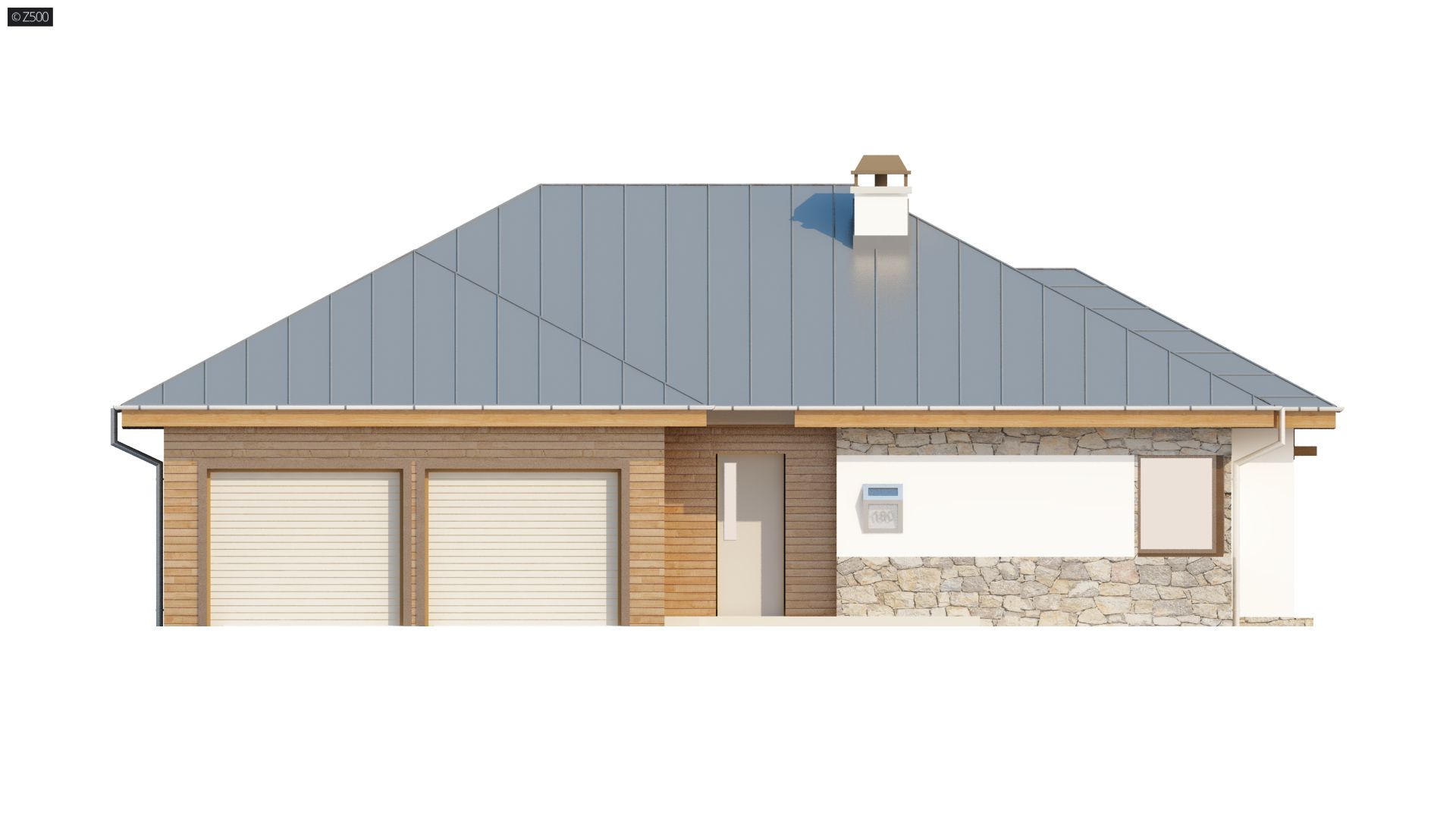 Z180 to komfortowy projekt domu parterowego. Posiada funkcjonalny garaż dwustanowiskowy z wjazdem od frontu. Tradycyjna z natury bryła domu, przykryta jest nowoczesną stylistyką elewacji.