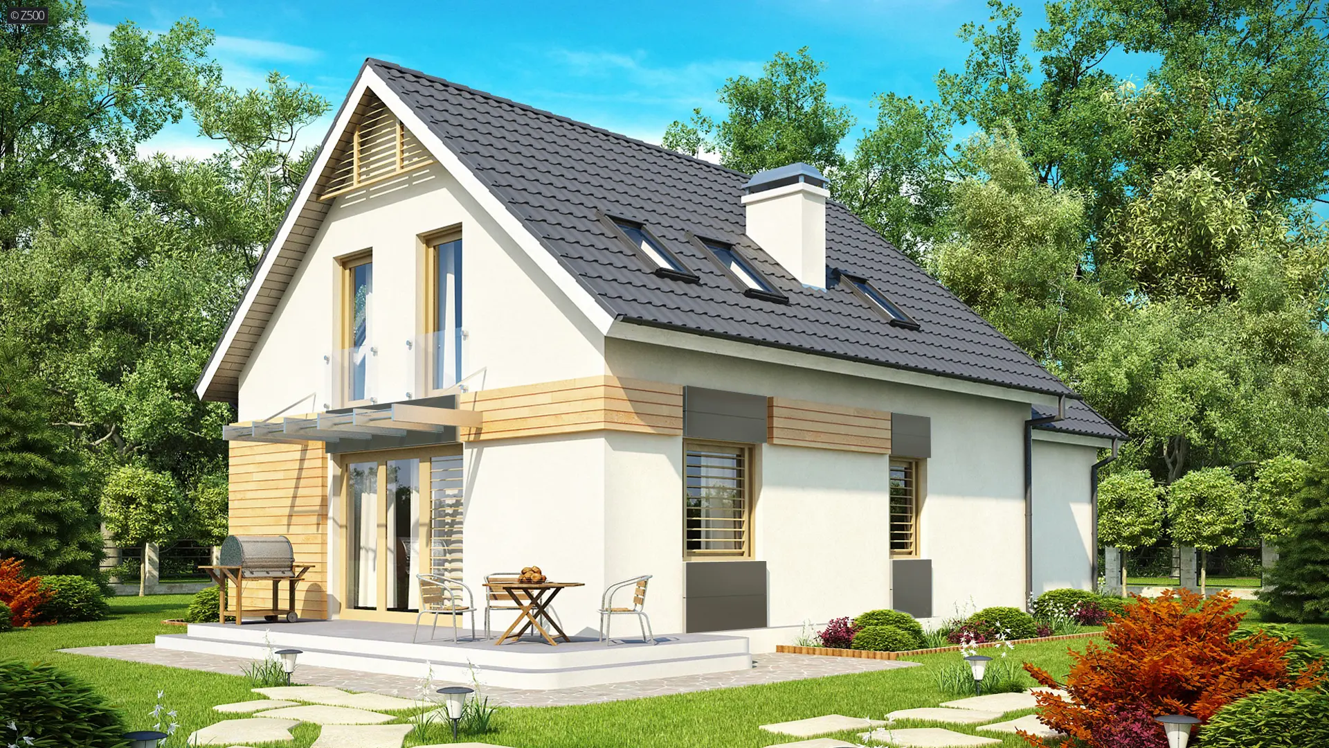 Z192 to dwulokalowy dom piętrowy o współczesnej architekturze i komfortowym układem funkcjonalnym.