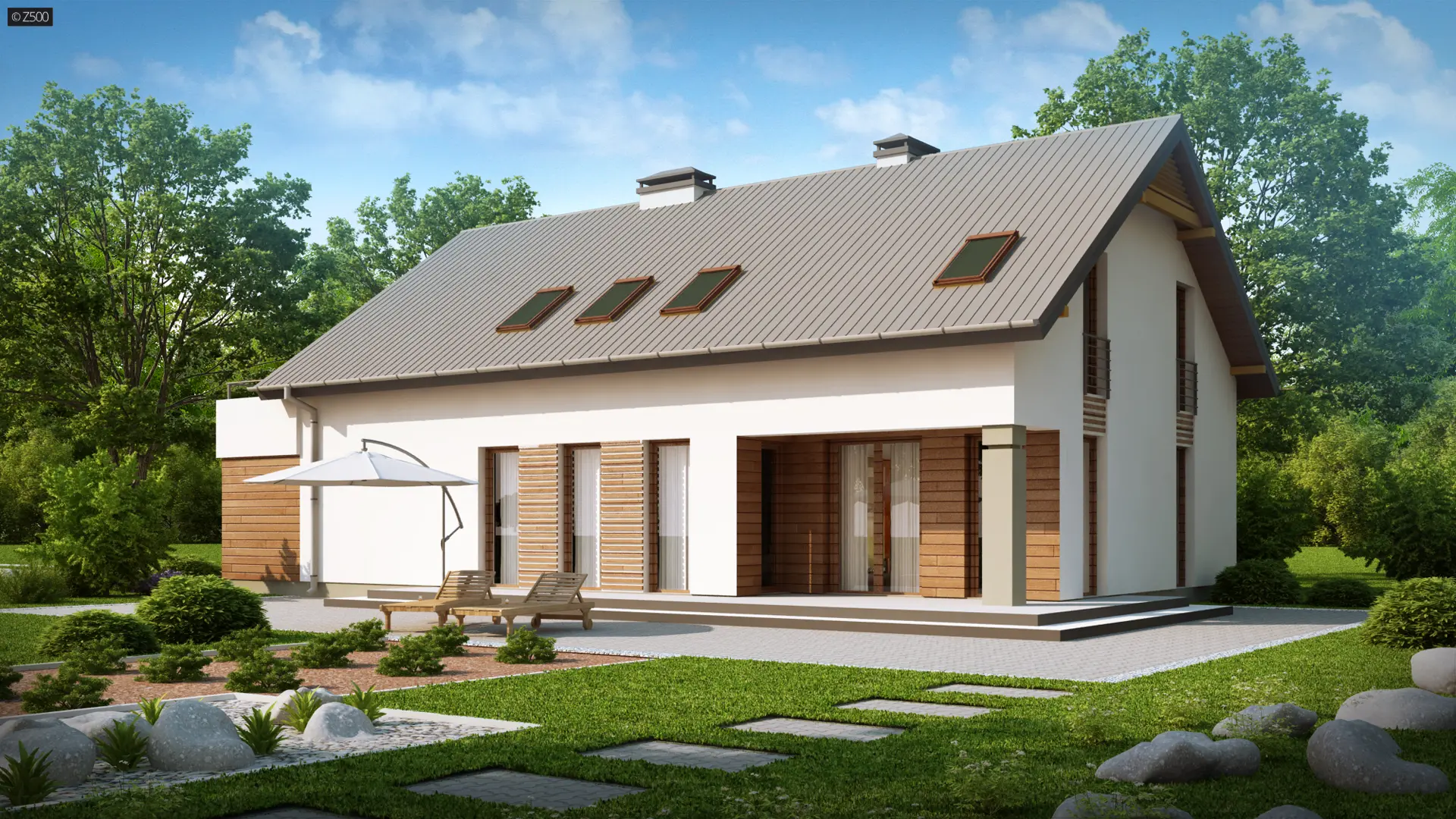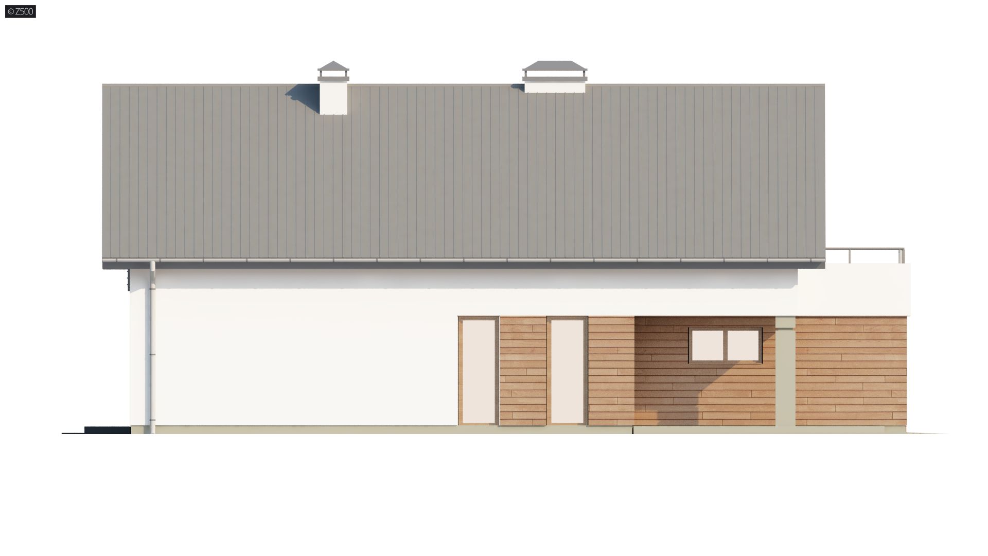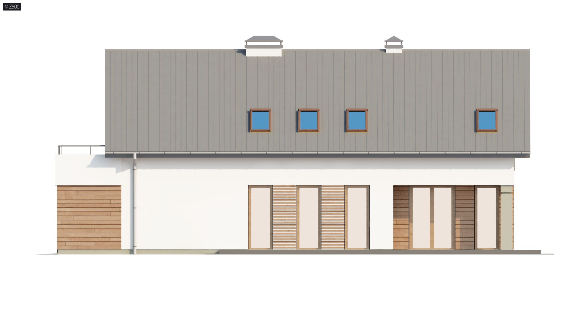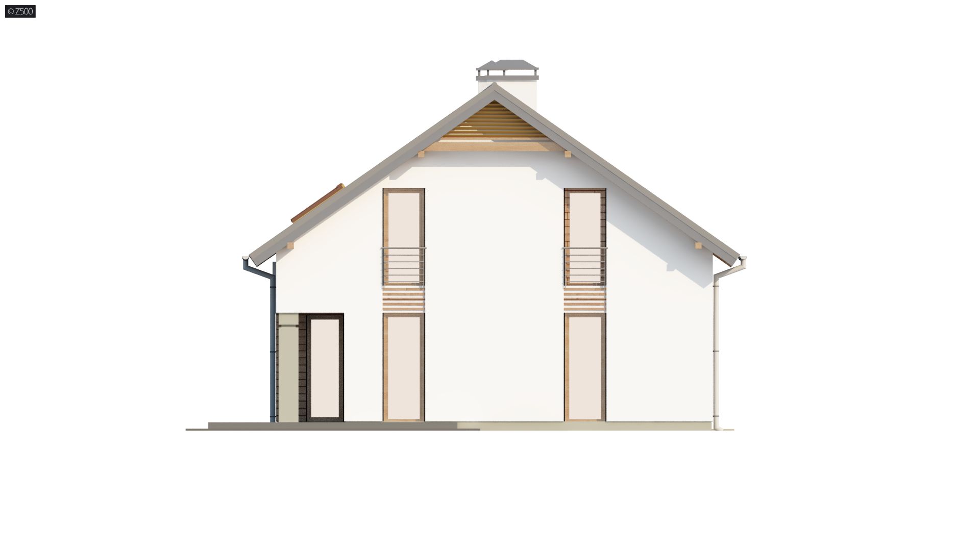 Z198 to piętrowy dom z dwustanowiskowym garażem i dachem dwuspadowym. Prostą formę urozmaica podcień w salonie oraz wysunięta bryła garażu. Subtelne wykończenia elewacji elementami z drewna nadają wysmakowanej elegancji.