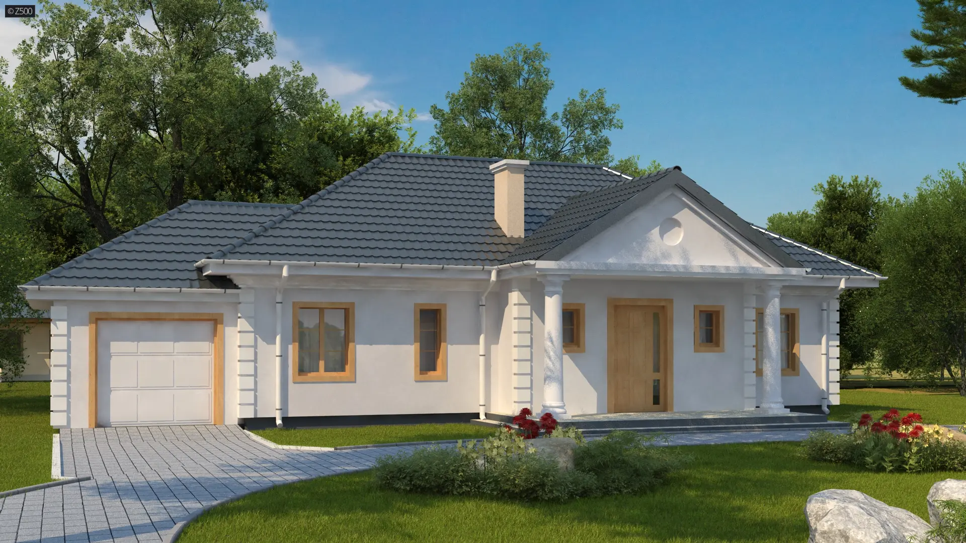 Projekt domu Z2 GL – to wariant podstawowy, w którym doprojektowano garaż po lewej stronie (19,7m2).