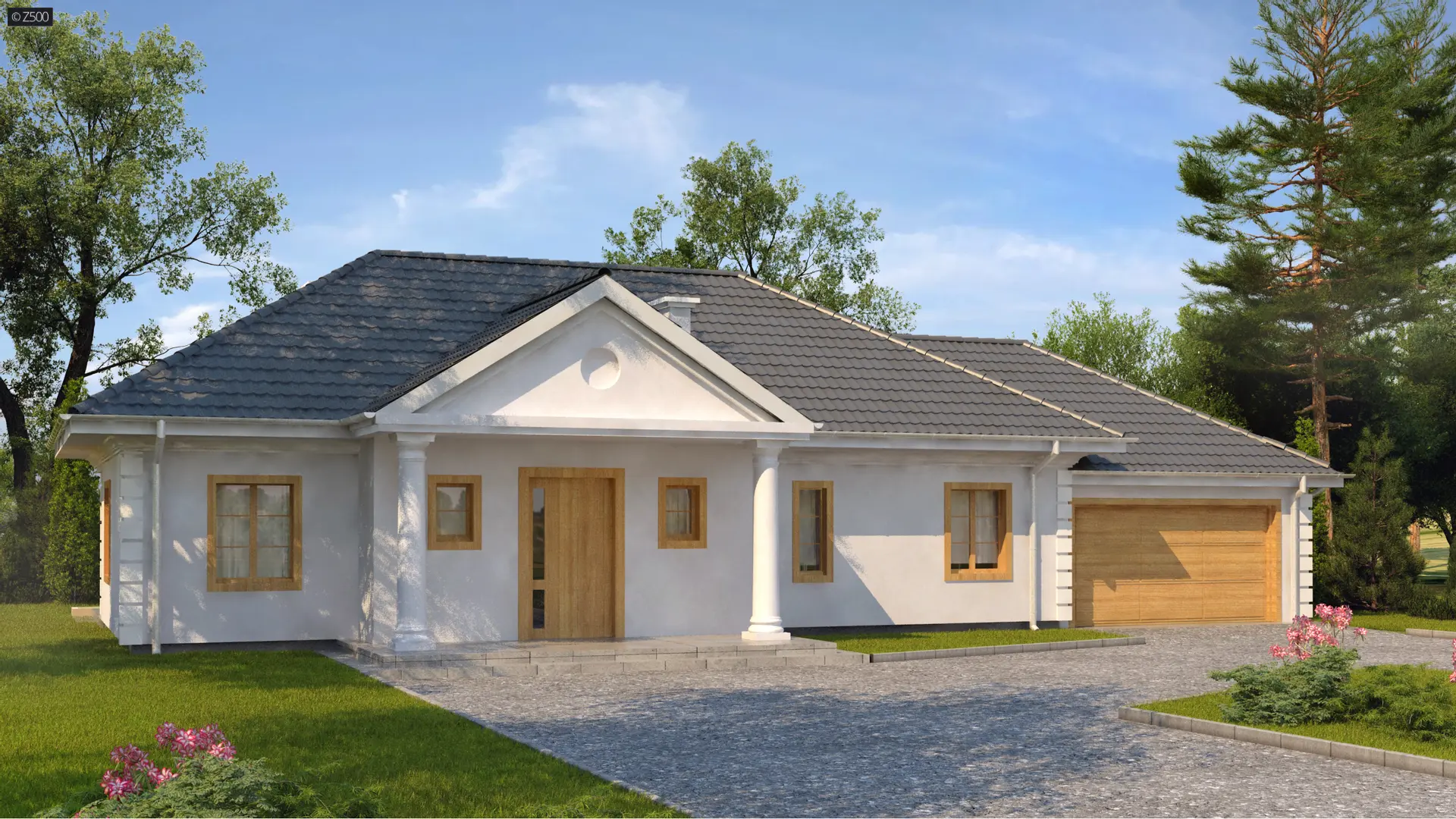 Wariant projektu Z2 z dwustanowiskowym garażem. Dodatkowo został powiększony.