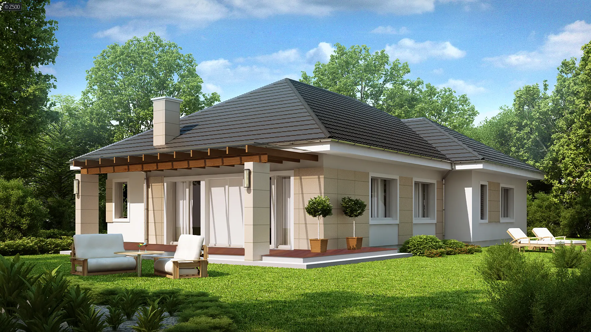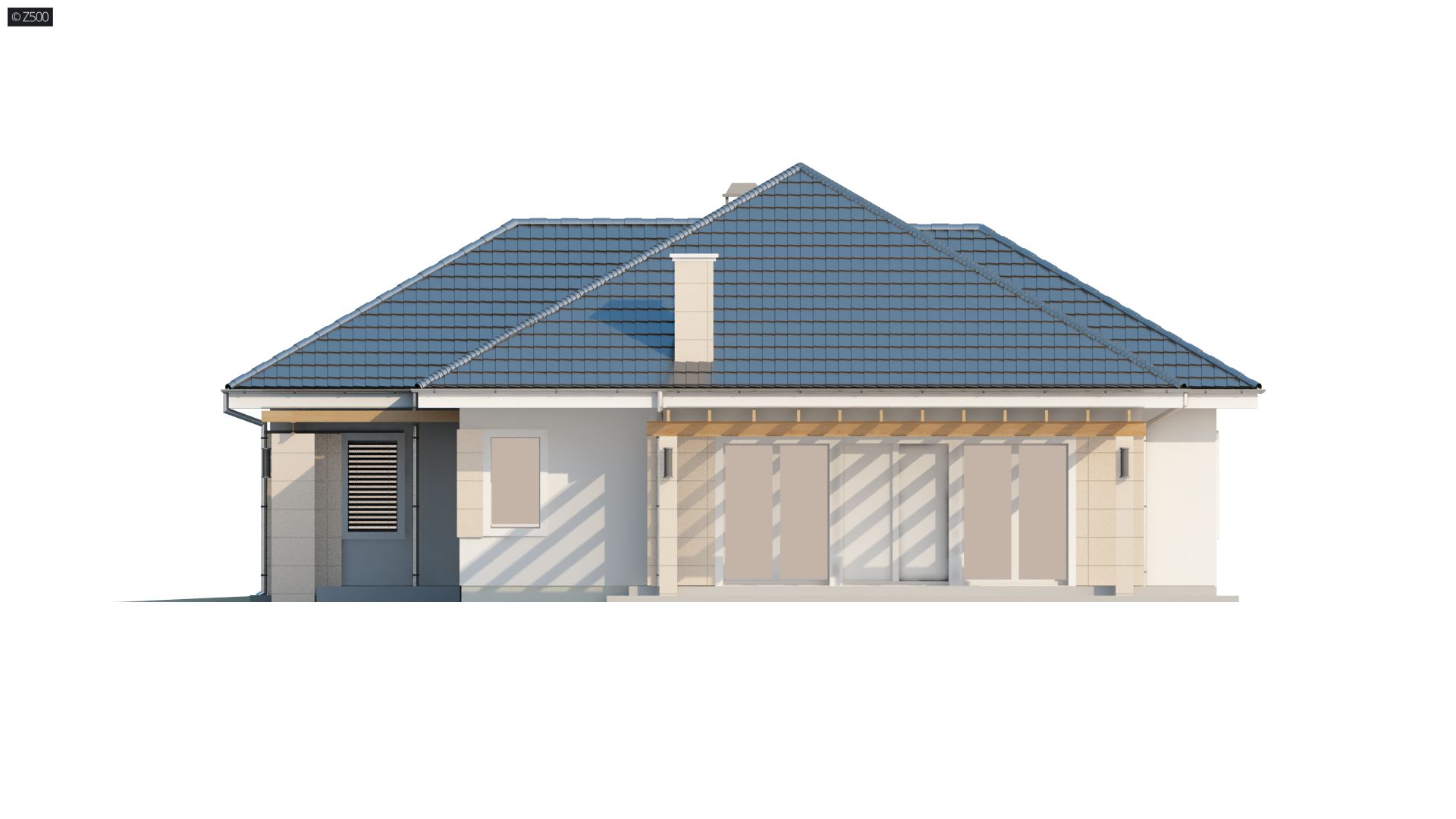 Z201 to komfortowy projekt dla rodziny ceniącej wygodę. Duże pokoje przy stosunkowo małej powierzchni komunikacji. Wkomponowany w zieleń dużej działki stanie się wygodną rezydencją dla całej rodziny. W części tarasowej zaprojektowano pergolę dającą cień w upalne dni. Pergola może być wypełniona przezroczystymi taflami z poliwęglanu i wtedy spełni się także jako osłona przed deszczem.
