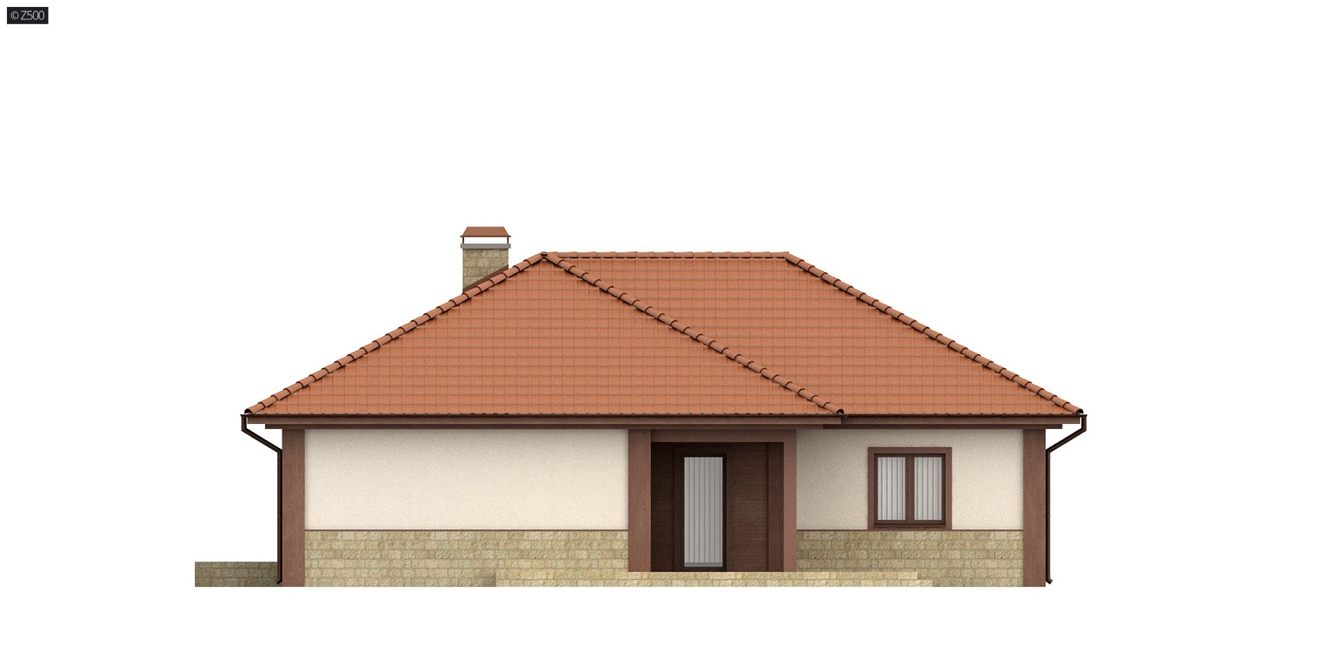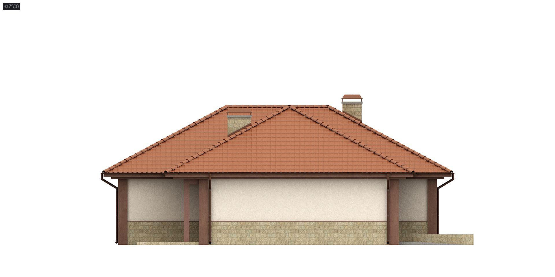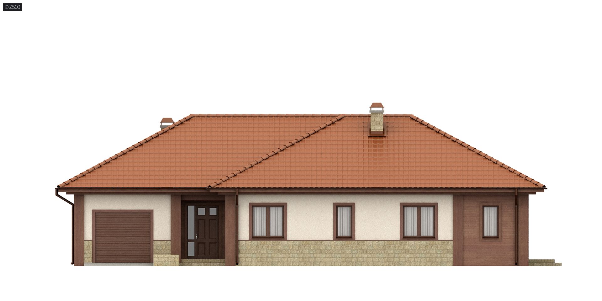 Projekt Z22 jest domem parterowym z bocznym garażem. Wykończenie elewacji impregnowanym drewnem oraz elementami kamiennymi nadają budynkowi indywidualny charakter.