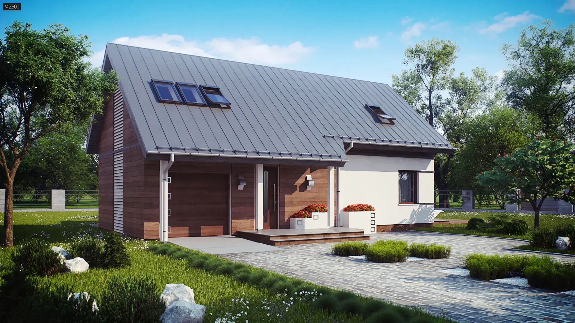 Wygodny, kompaktowy dom z poddaszem użytkowym, nowoczesną lukarną.