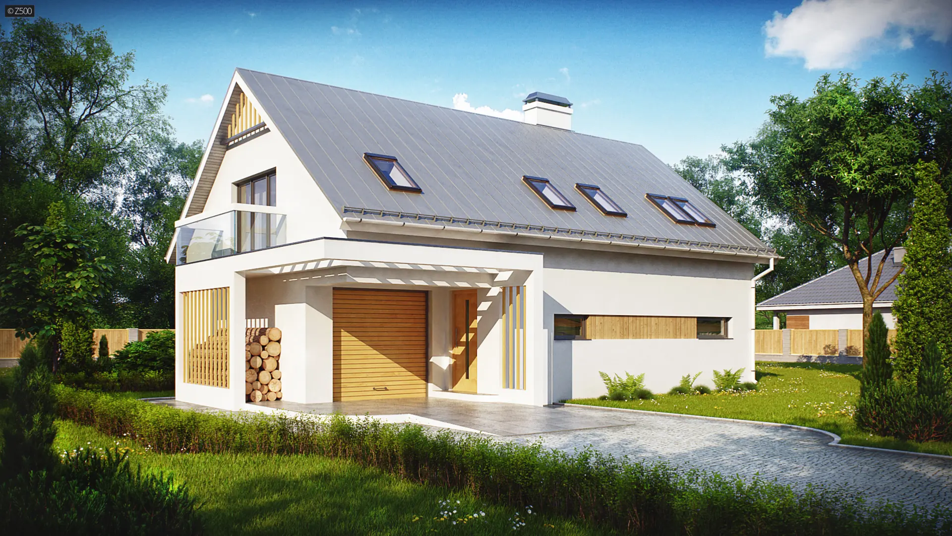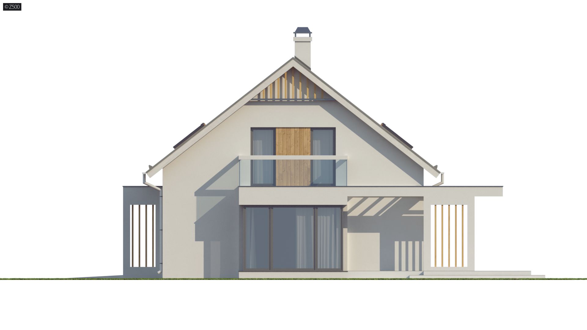 Projekt Z235 to piętrowy dom z dwuspadowym dachem i jednostanowiskowym garażem. Efektowne wykończenie elewacji, poprzez wkomponowanie drewnianych elementów podkreśla jego wyjątkowy charakter.