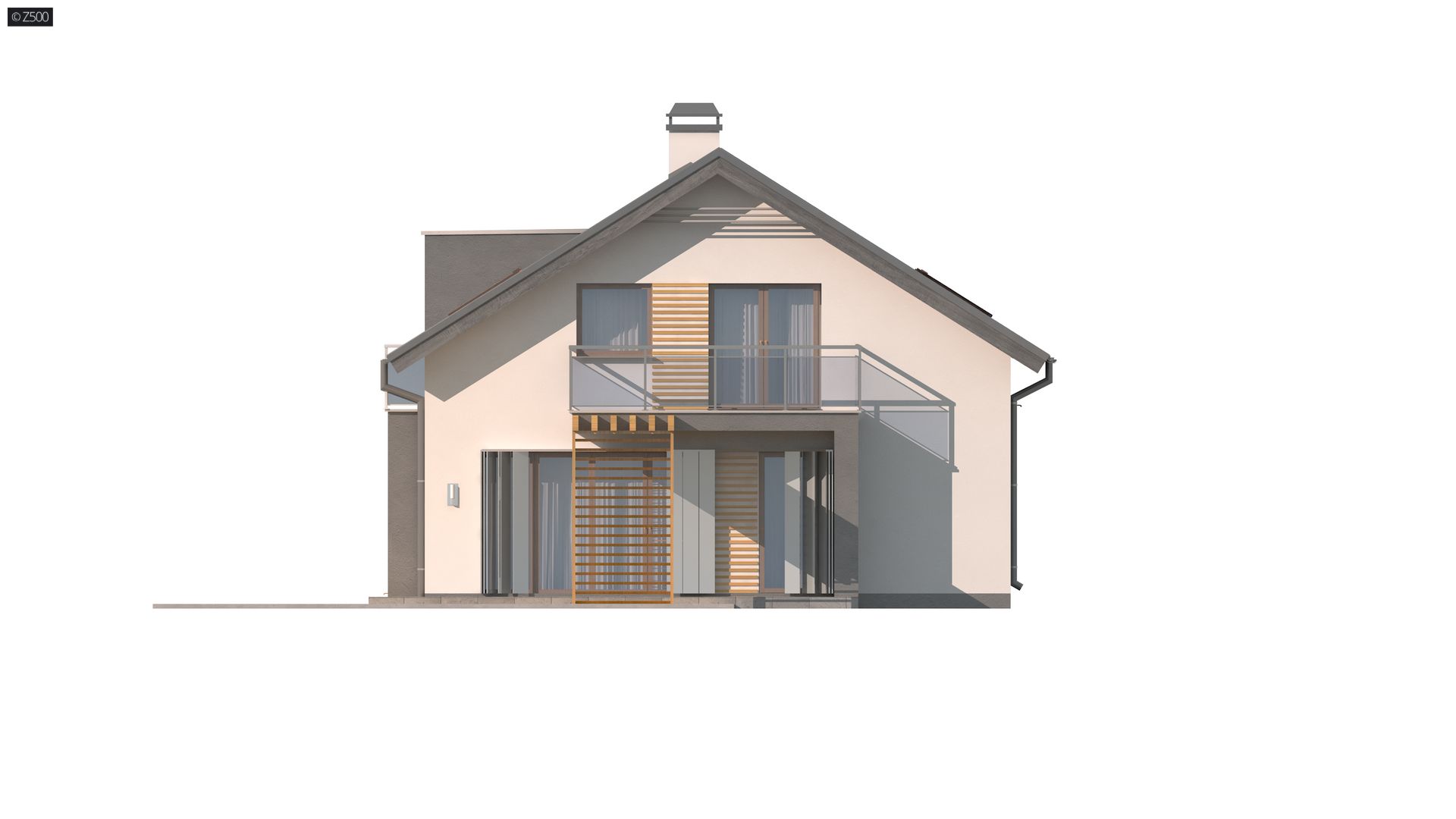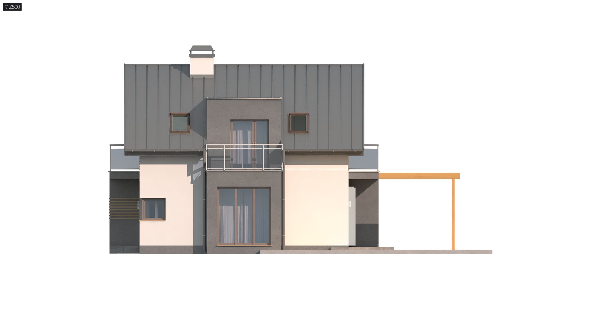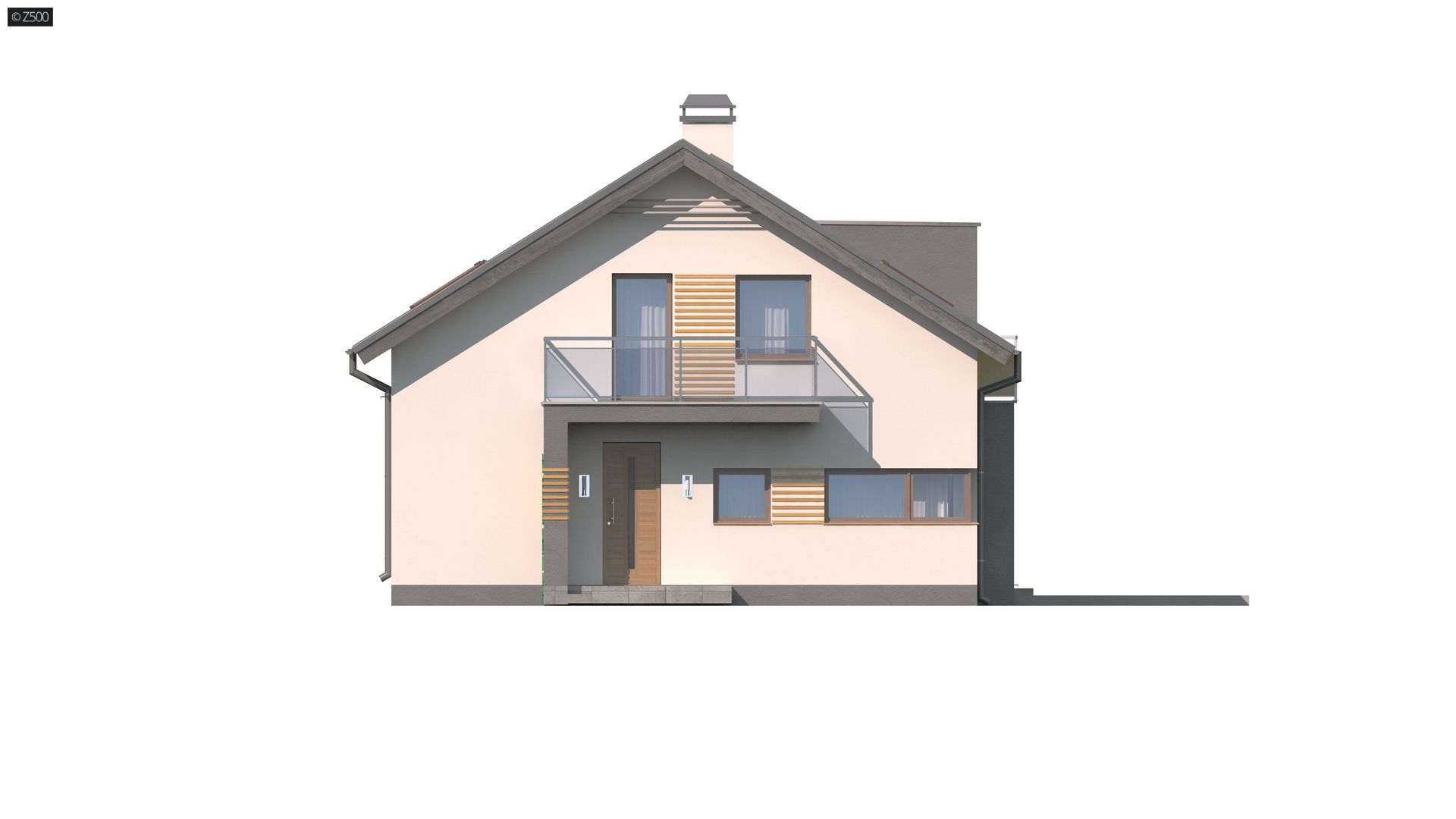 Z245 to piętrowy dom o współczesnym charakterze. Prosta a zarazem nowoczesna forma została urozmaicona poprzez ciekawe dodatki na elewacji.