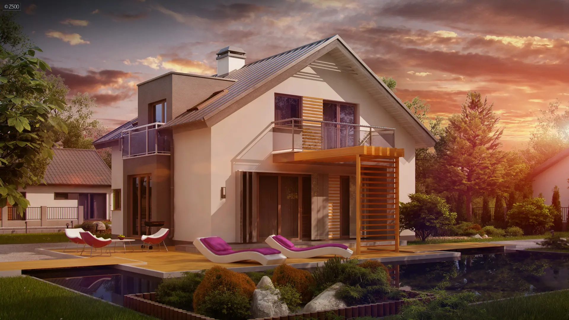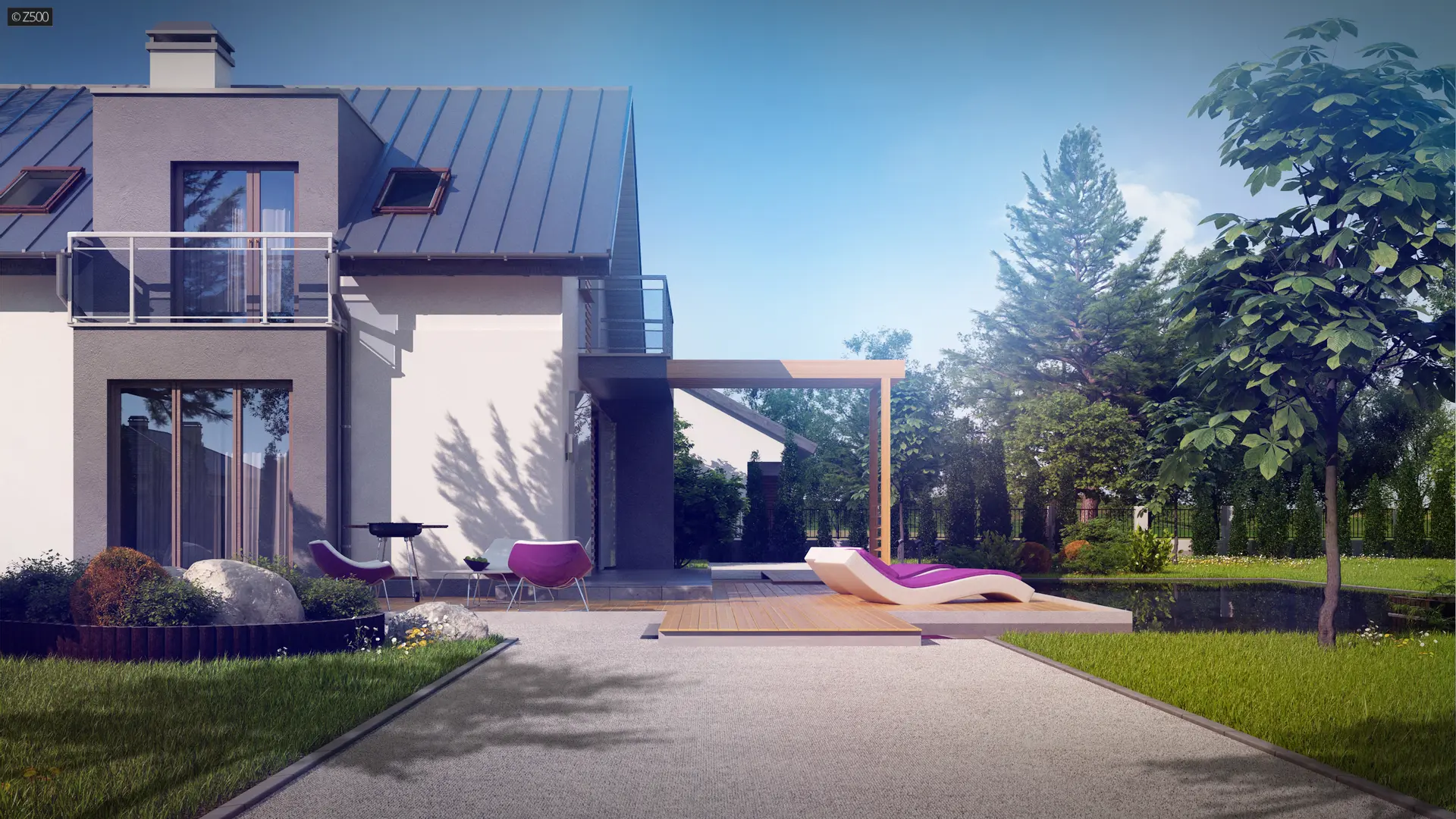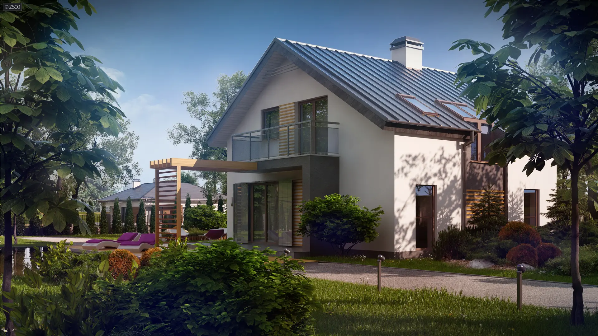 Z245 to piętrowy dom o współczesnym charakterze. Prosta a zarazem nowoczesna forma została urozmaicona poprzez ciekawe dodatki na elewacji.