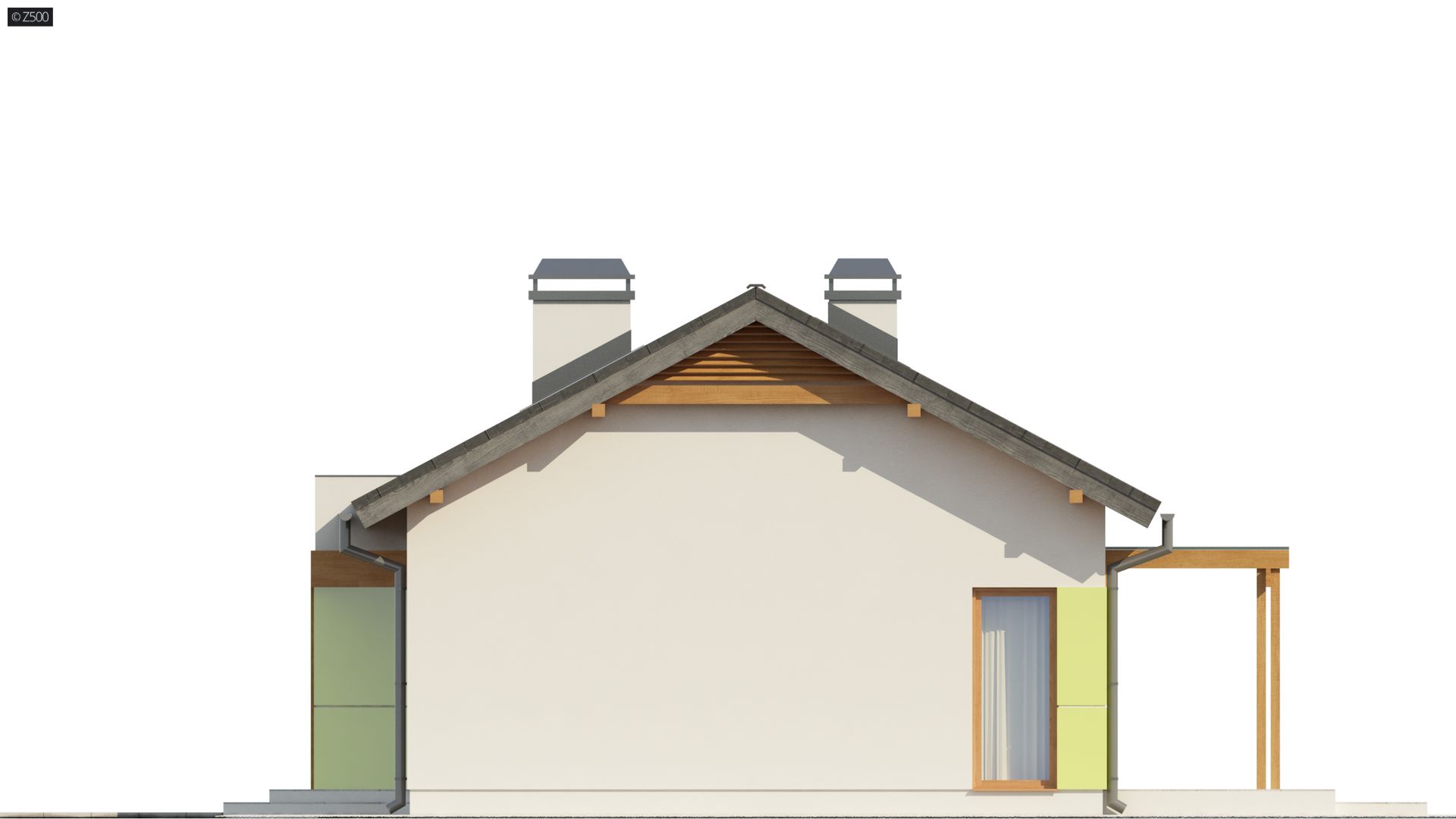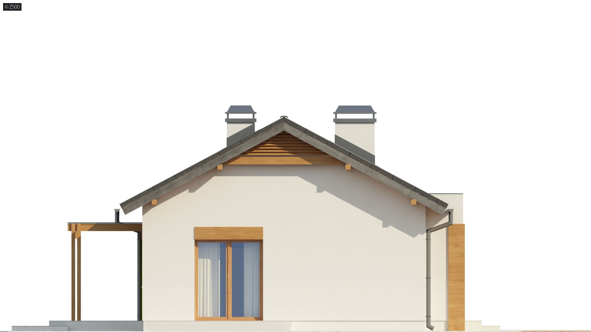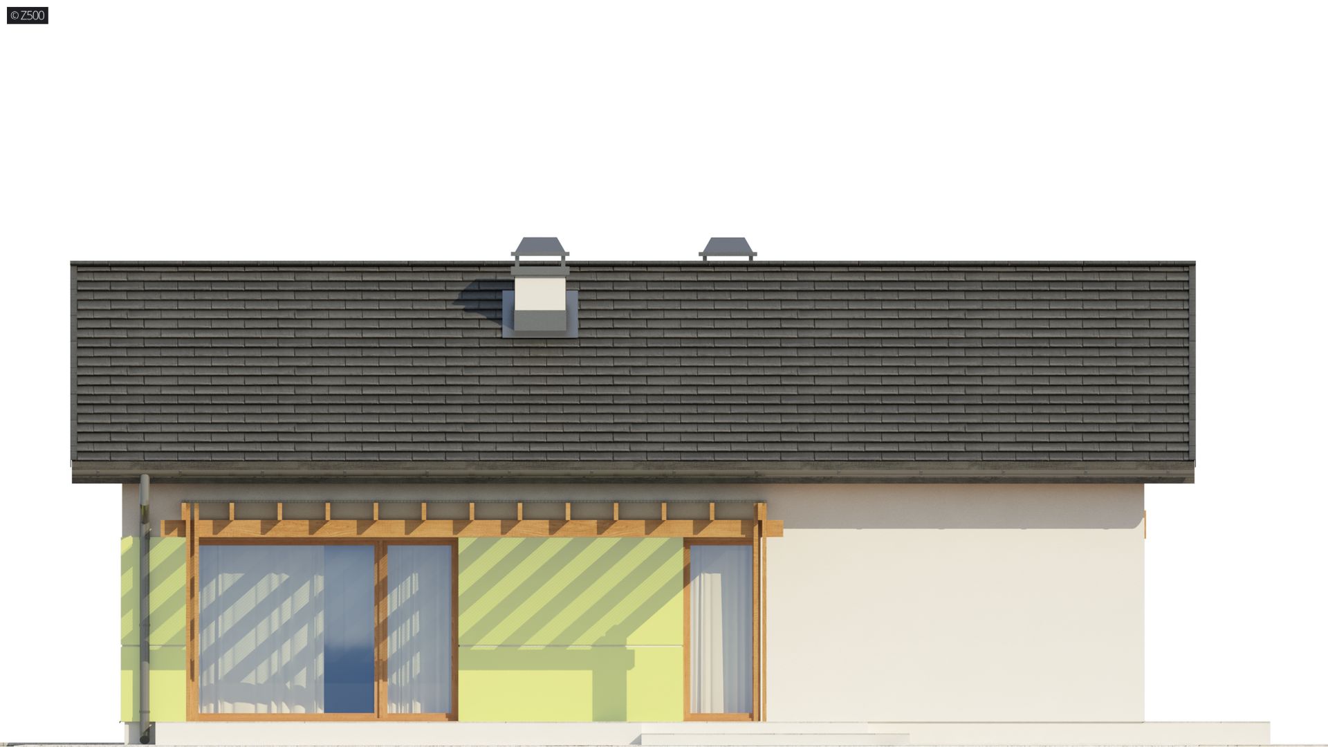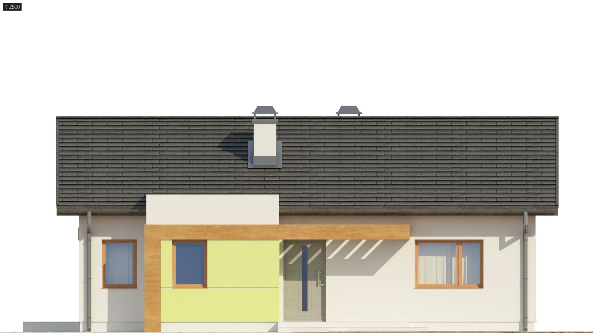 Z249 to zgrabny, kompaktowy dom parterowy z kolekcji LEO. Prostą bryłę przekrytą dwuspadowym dachem urozmaica wykusz od frontu z  ciekawa formą zadaszenia.