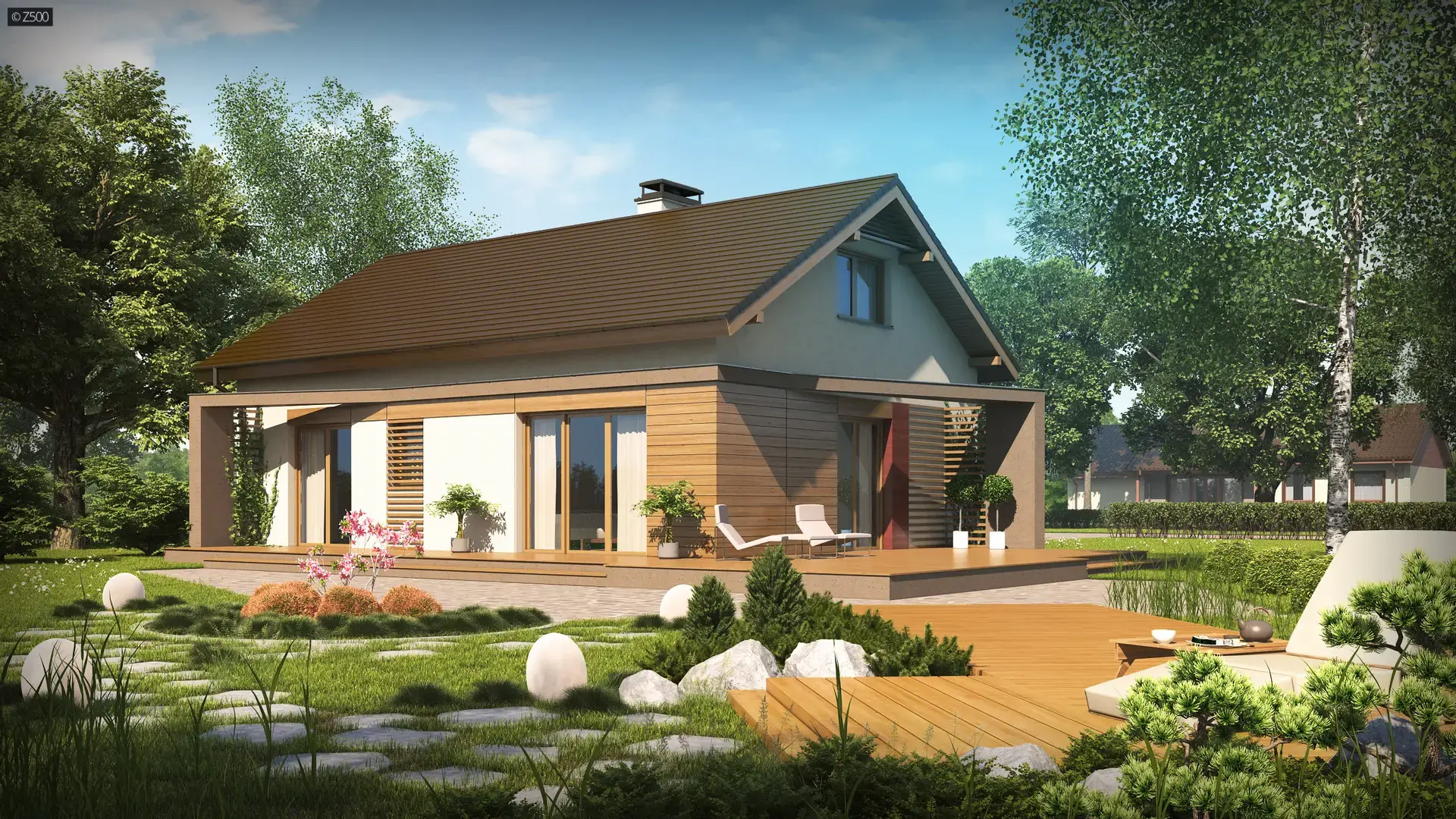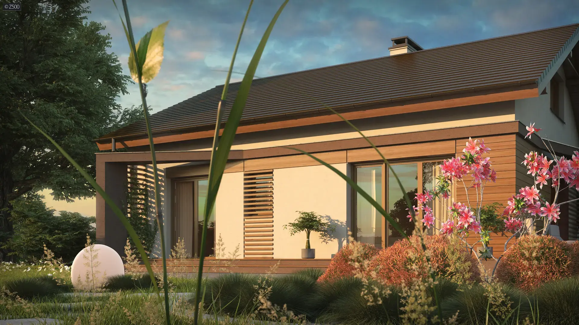 Kompaktowy dom z kuchnią i kotłownią od frontu oraz opcją adaptacji poddasza.