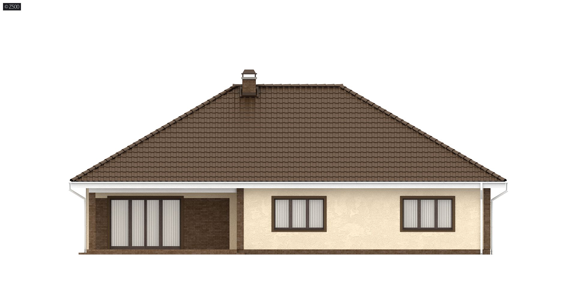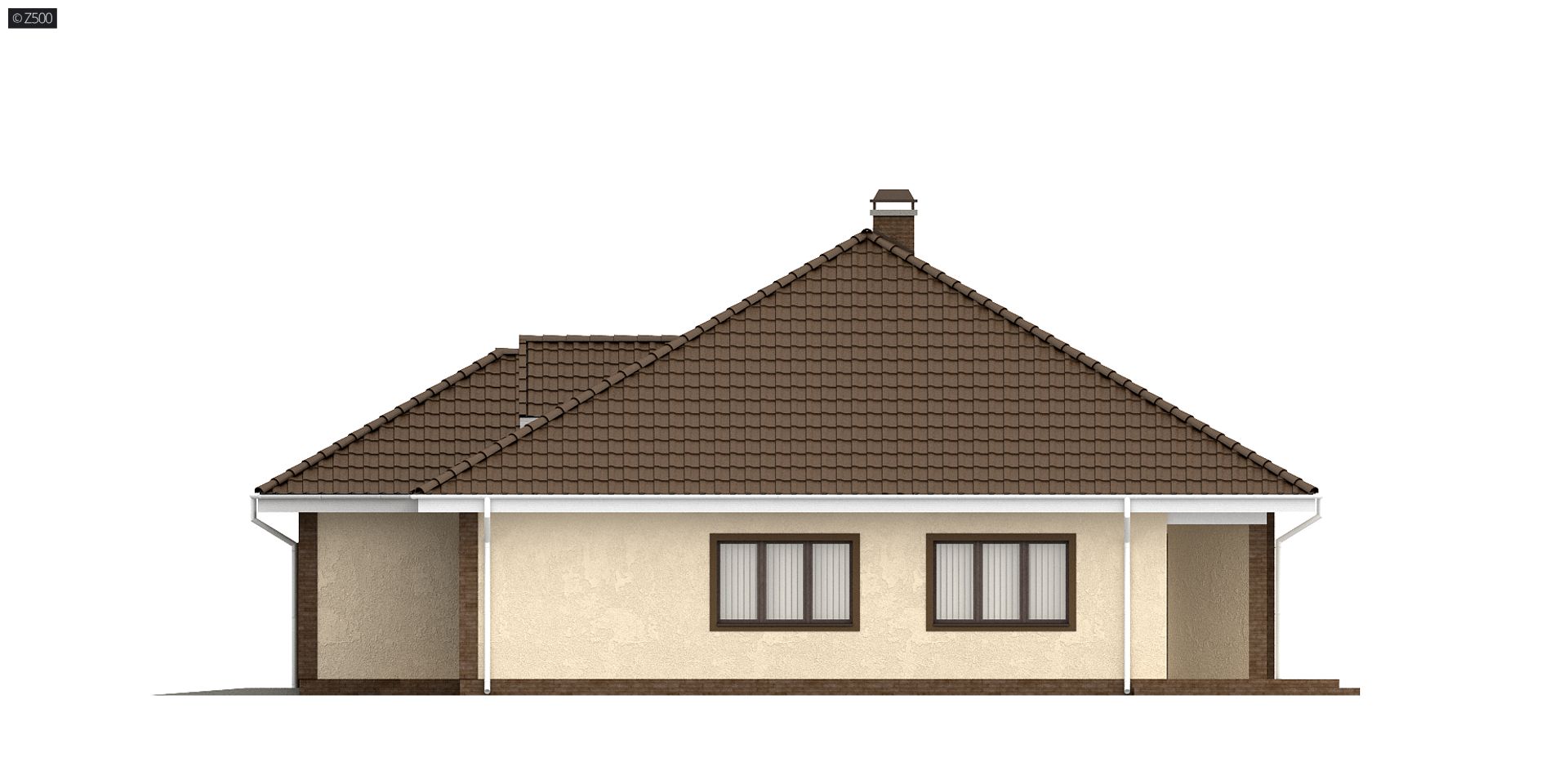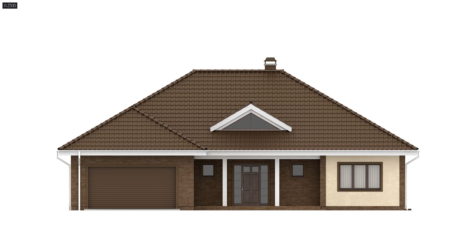 Projekt Z26 to dom z kopertowym dachem i dwustanowiskowym garażem z bezpośrednim przejściem do domu. Szerokie, zadaszone wejście do budynku wsparte na filarach zaakcentowano świetlikiem w kształcie trójkąta, co urozmaica elewację frontową.