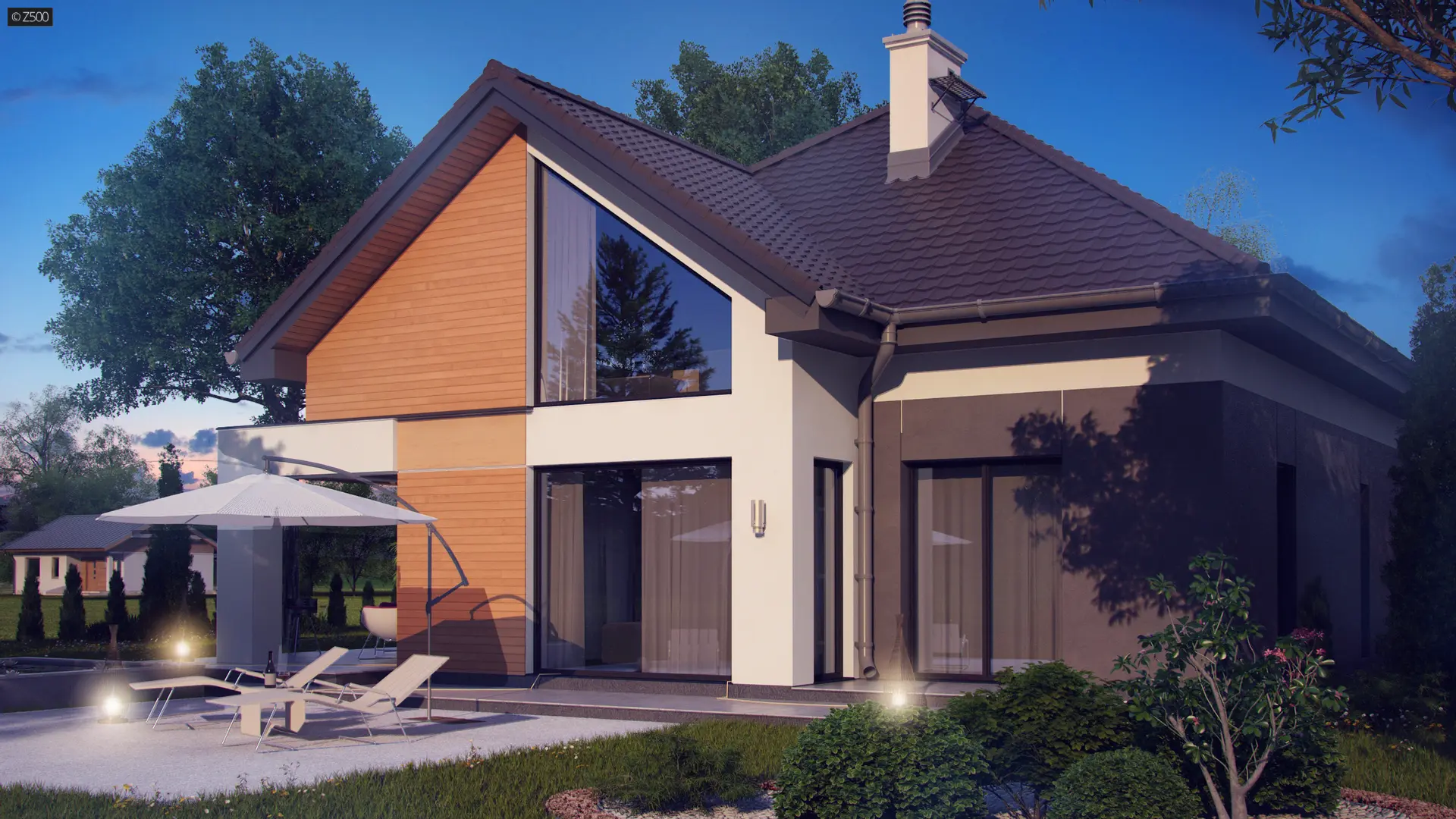 Z288 to propozycja dla osób poszukujących przestronnego domu jednorodzinnego o urozmaiconej bryle z wielospadowym dachem.