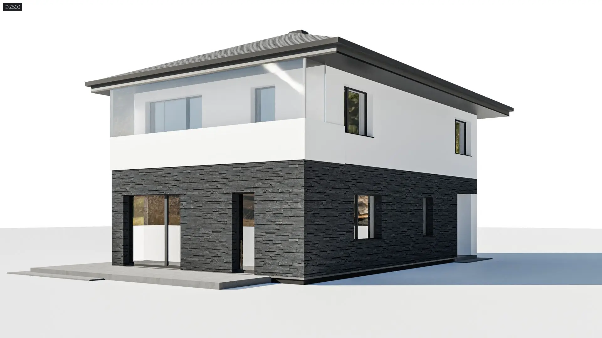 To zgrabny dom piętrowy o nowoczesnym wyglądzie z dachem kopertowym. Na niedużej powierzchni użytkowej zaprojektowano wygodne i funkcjonalne wnętrze dla 4 osobowej rodziny.