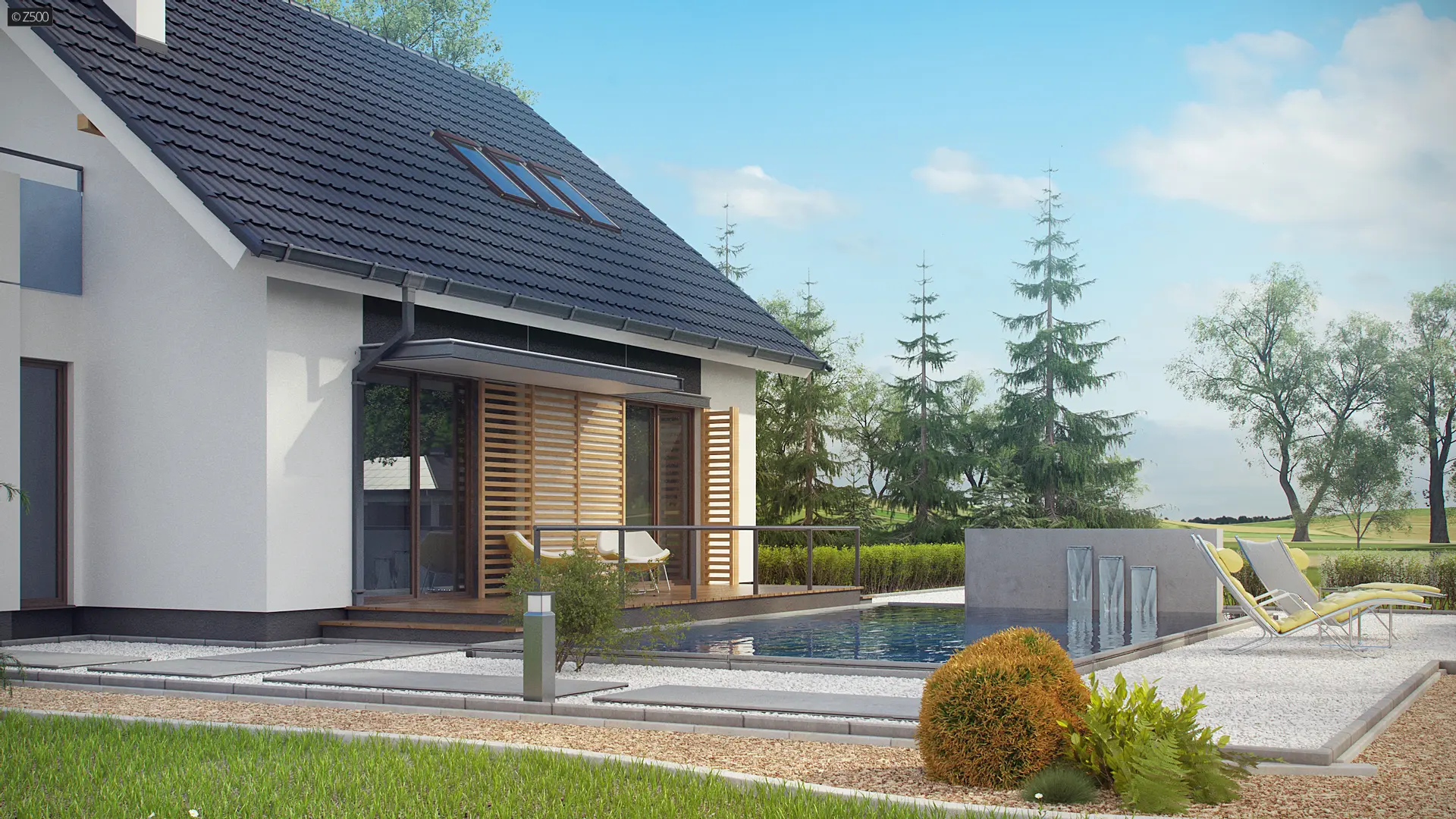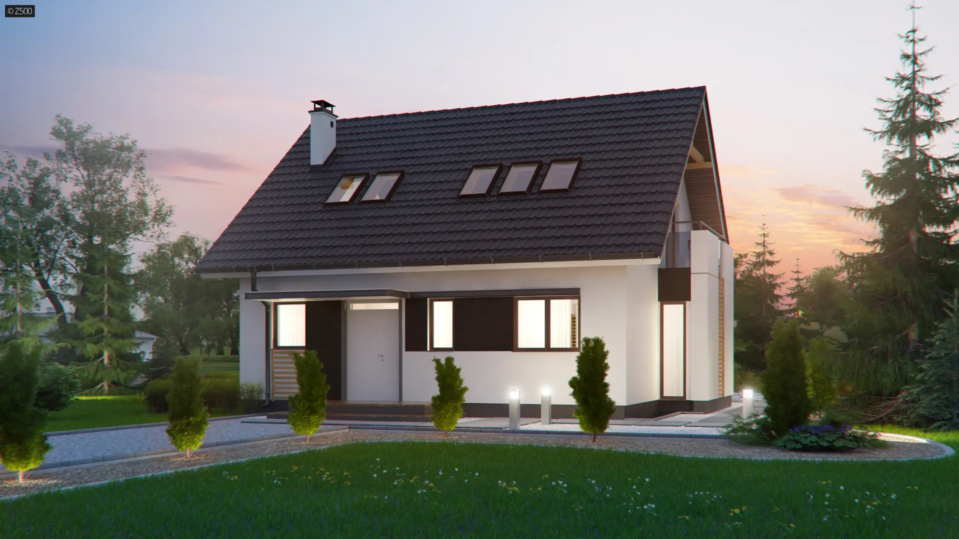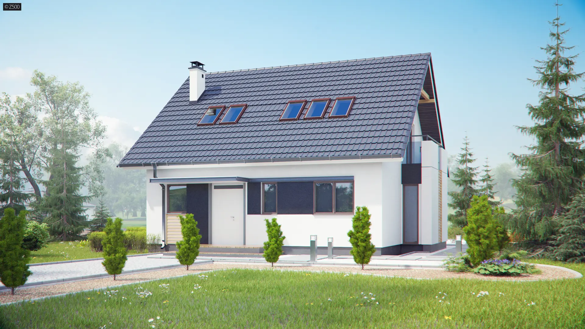 Z304 to elegancki domek o spokojnej bryle. Wyróżnia się starannym wykończeniem oraz przemyślanym układem pomieszczeń.