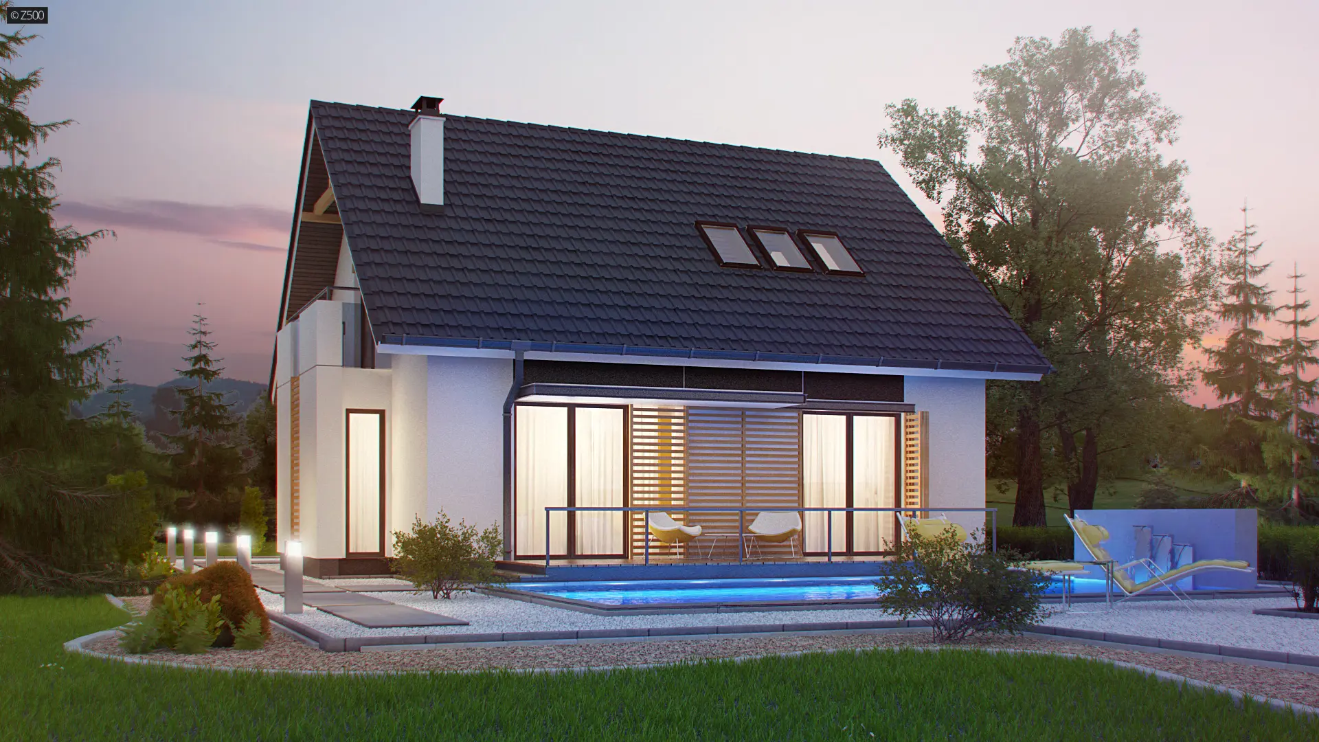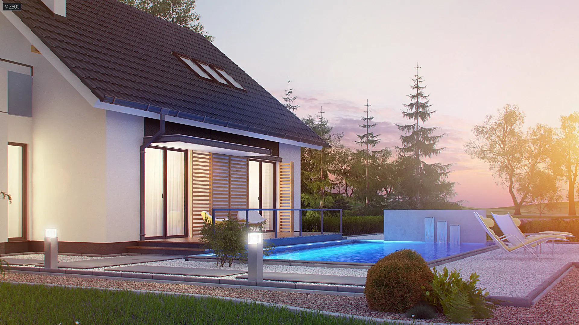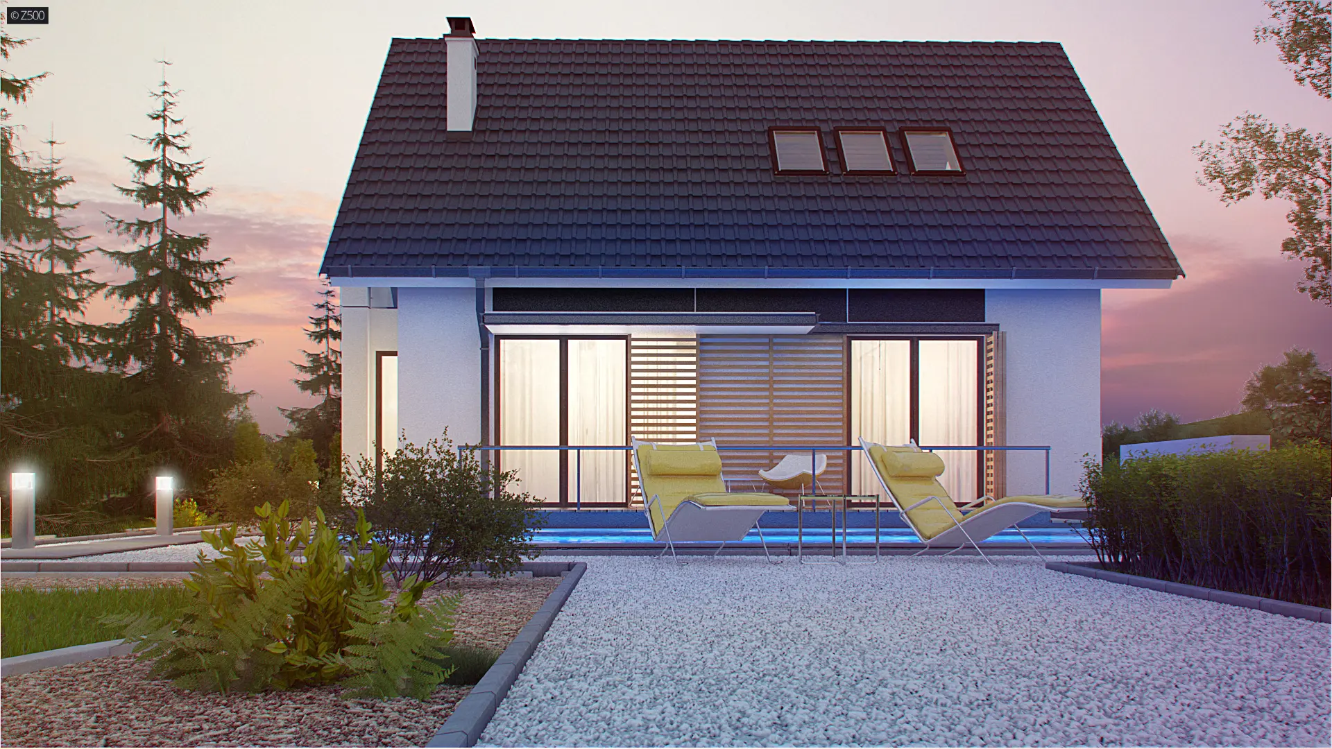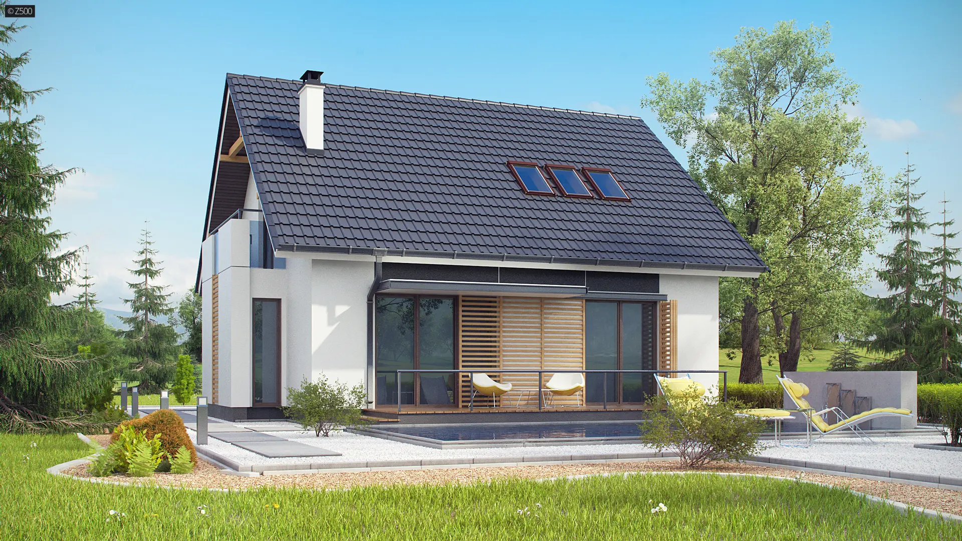 Z304 to elegancki domek o spokojnej bryle. Wyróżnia się starannym wykończeniem oraz przemyślanym układem pomieszczeń.