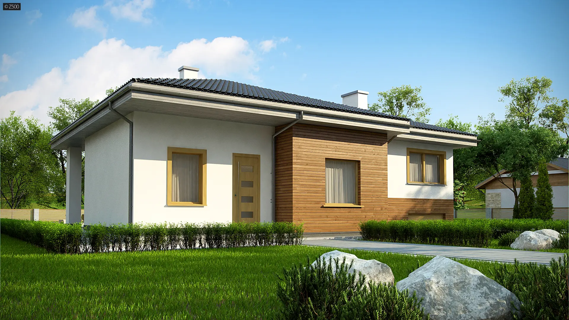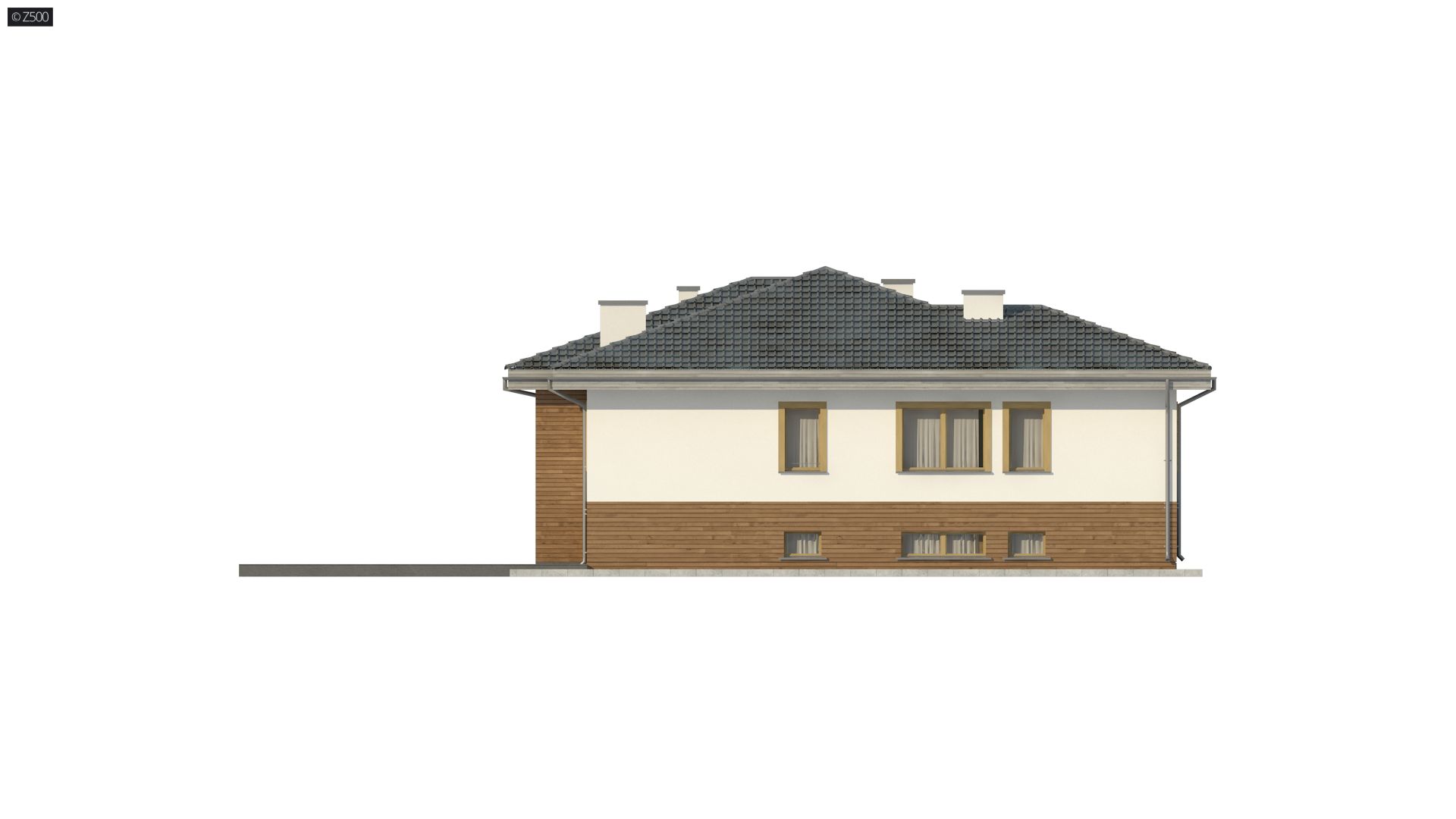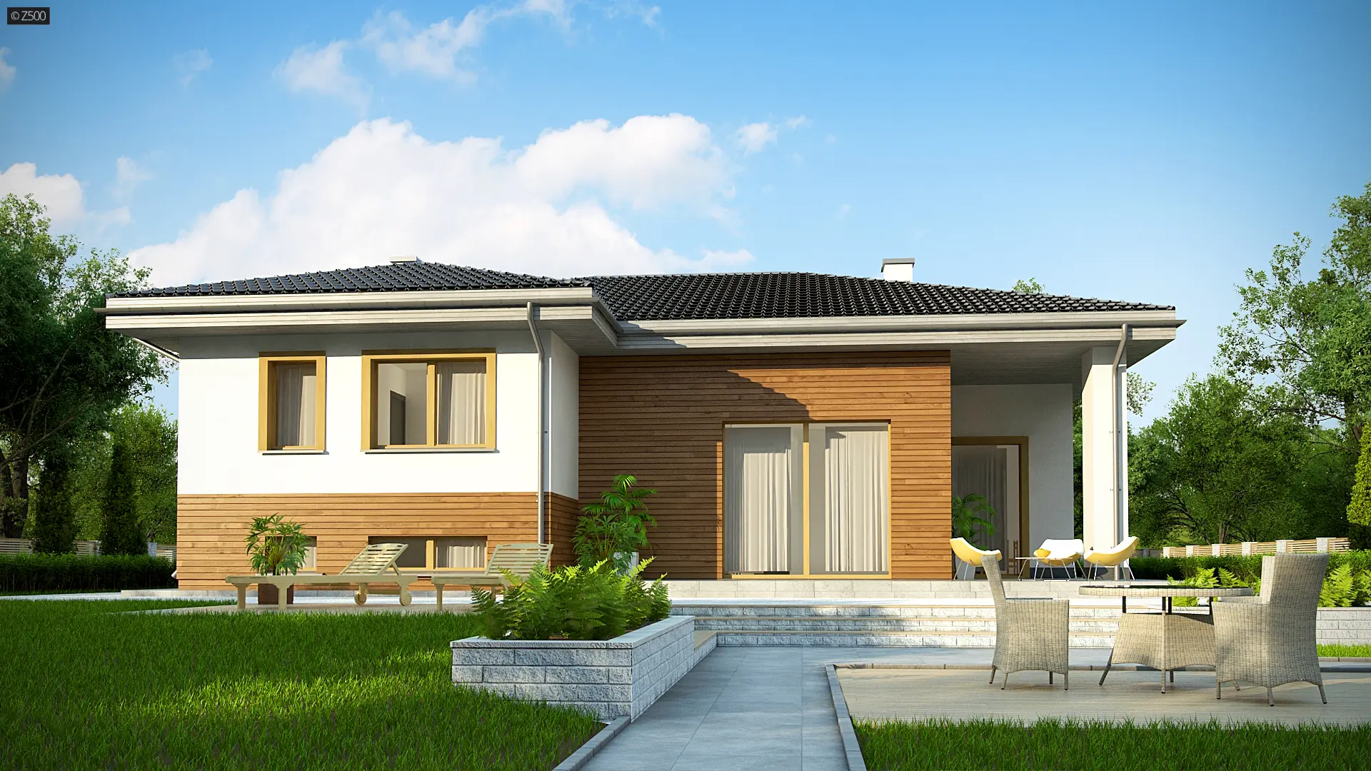 Jest kolejnym domem z serii Z500 z półpiętrem i dachem wielospadowym. Elewację można ozdobić białym tynkiem i brązową cegłą lub drewnem.