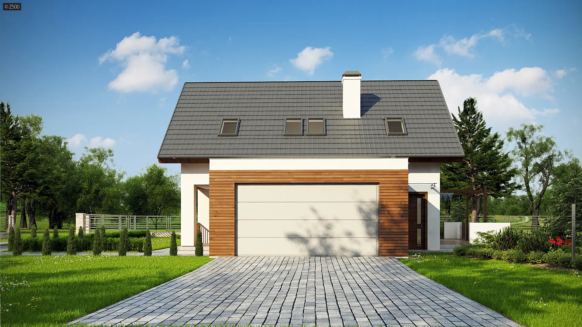 Dom z poddaszem użytkowym oraz bocznym garażem z ogrzewaniem na paliwo stałe