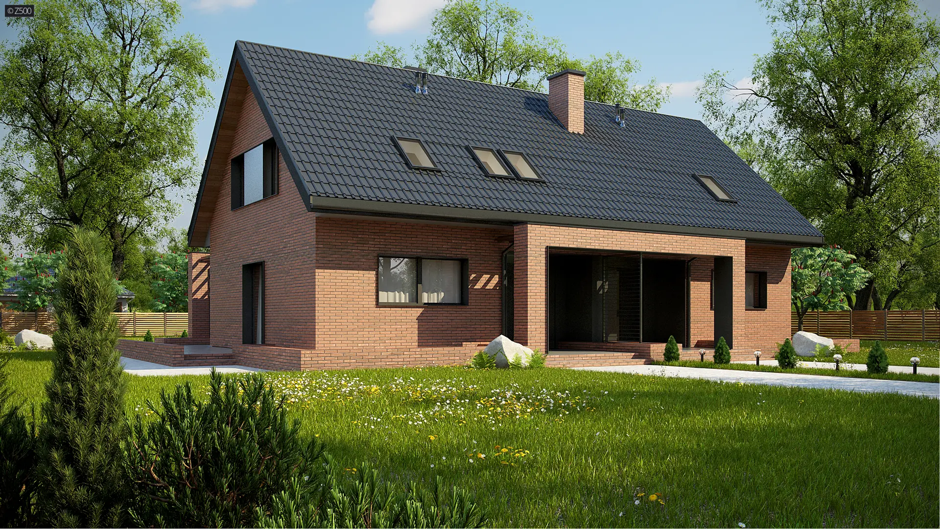 Z351 D to dom dwulokalowy z tradycyjnym dachem dwuspadowym. Aranżację
