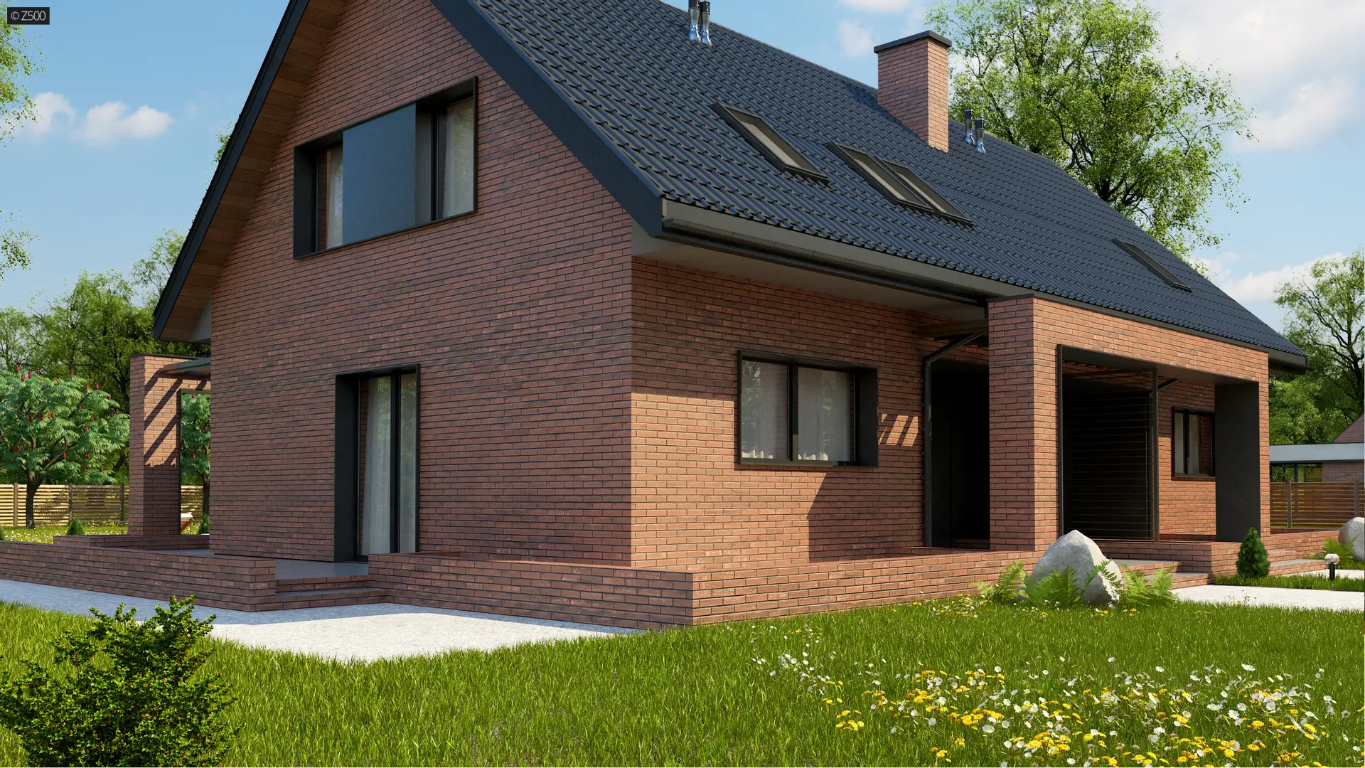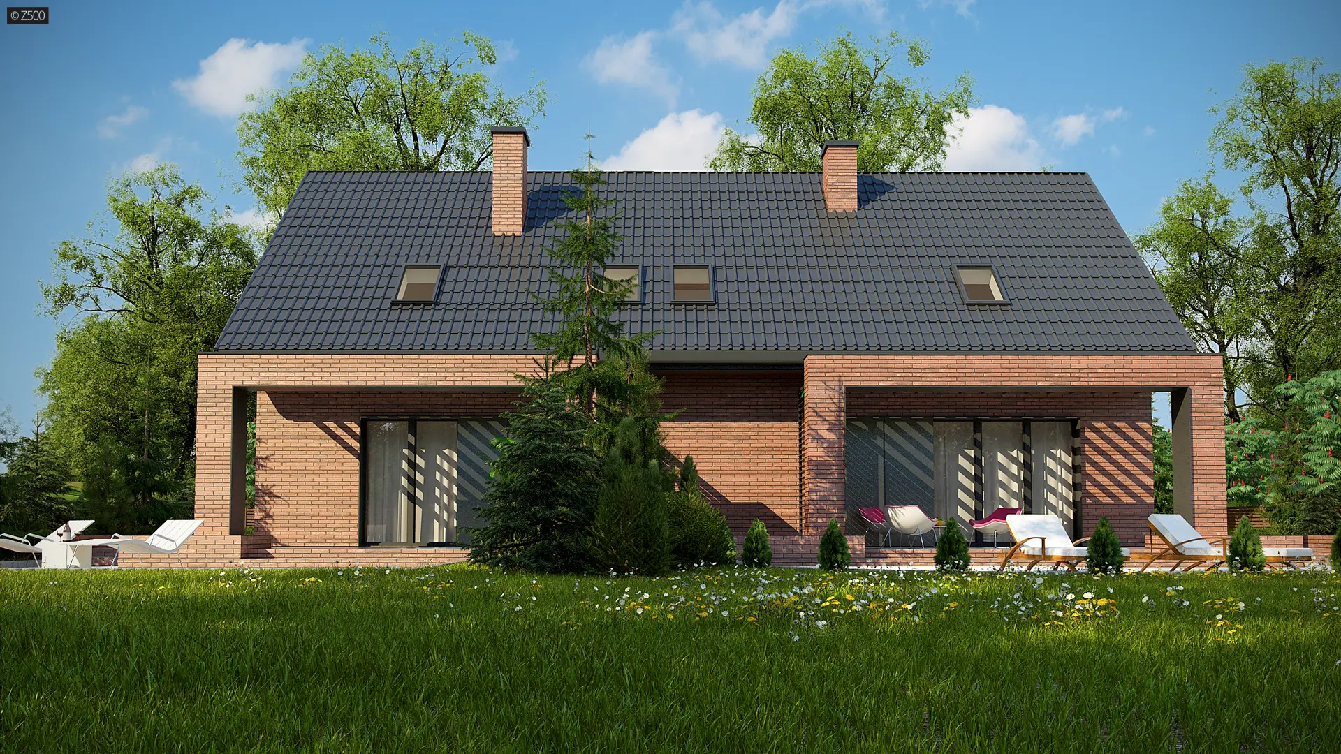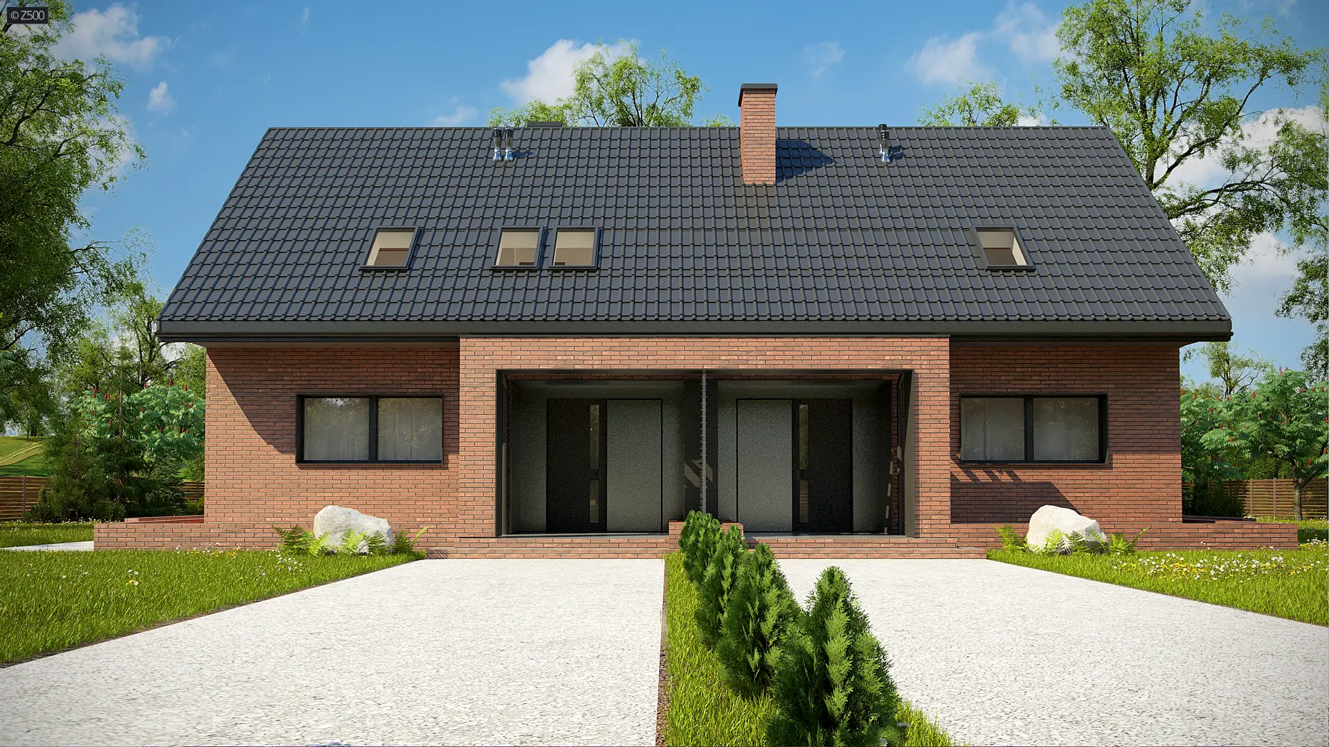 Z351 to dom dwulokalowy z tradycyjnym dachem dwuspadowym. Aranżację przyziemia stanowią klomby na tarasie. Elewację wykończono płytkami klinkierowymi. W połączeniu z kompozycją z pergoli są one znakomitym akcentem architektonicznym dopełniającym całość budynku.