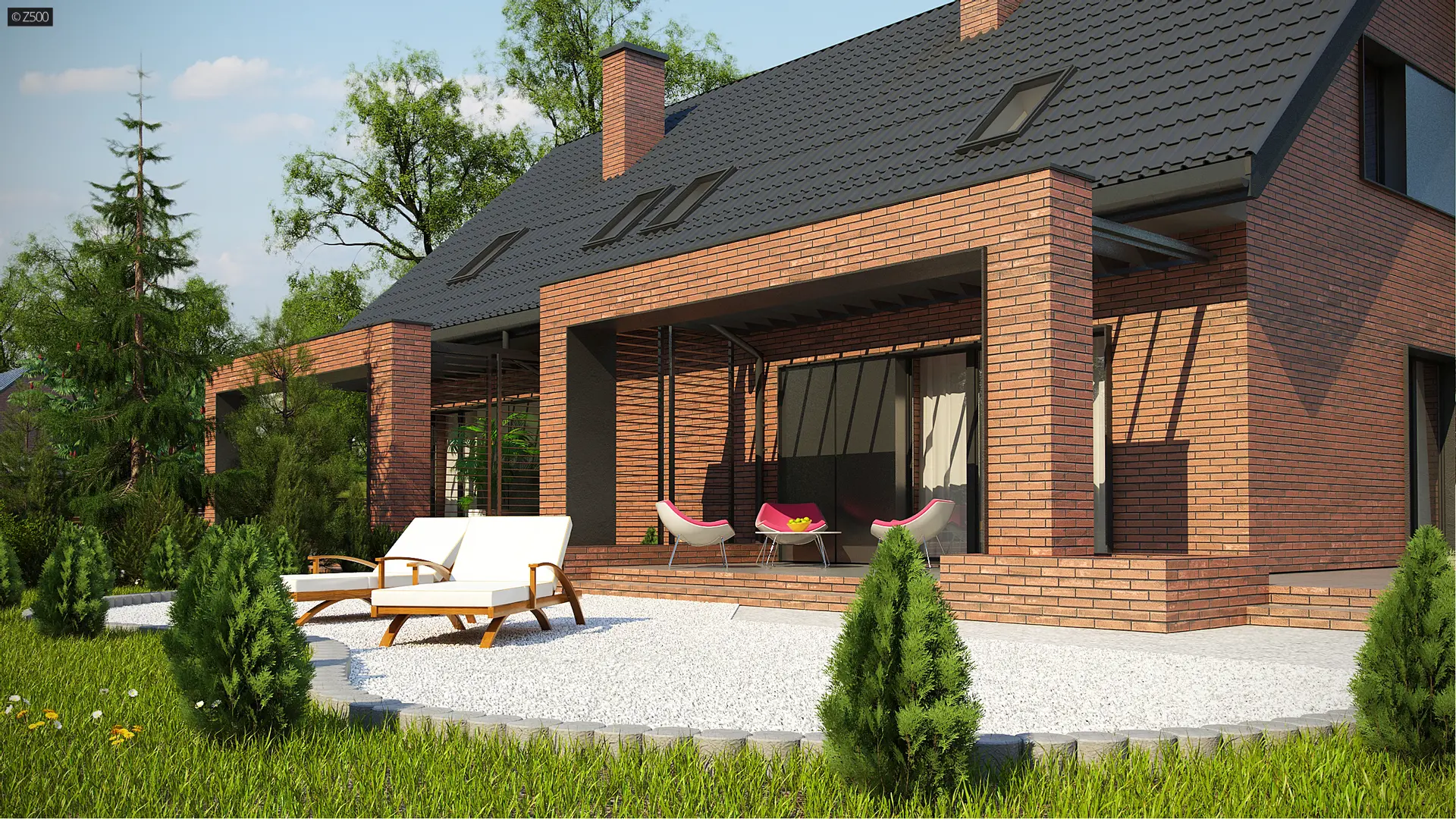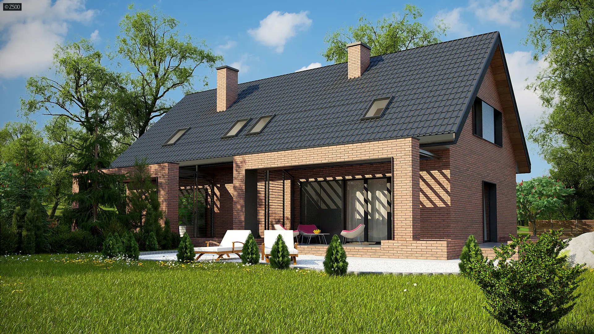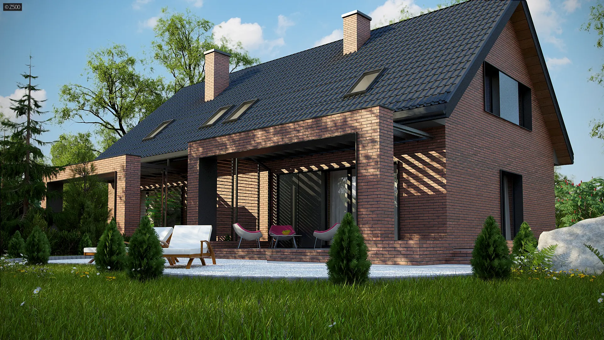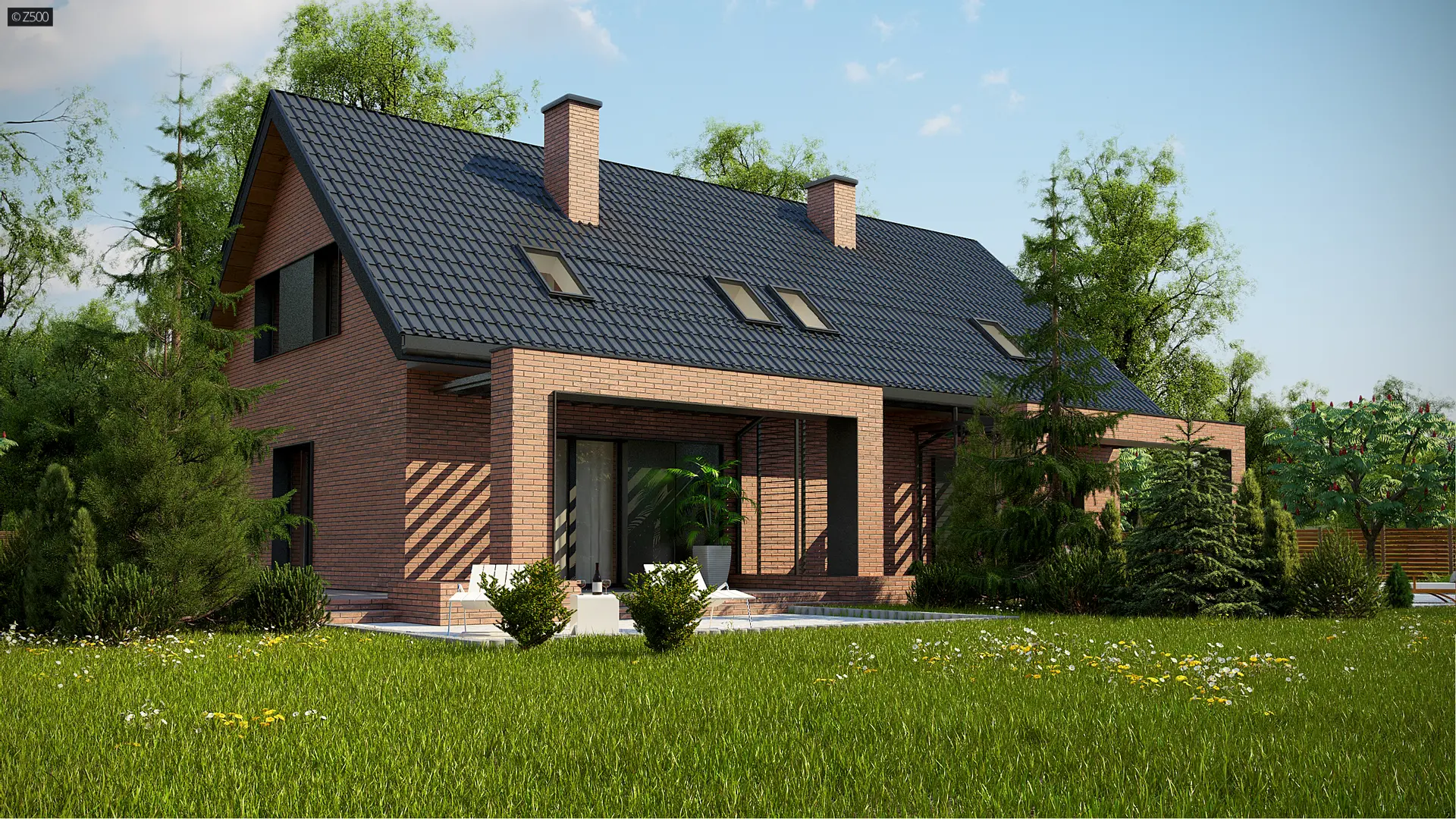 Z351 to dom dwulokalowy z tradycyjnym dachem dwuspadowym. Aranżację przyziemia stanowią klomby na tarasie. Elewację wykończono płytkami klinkierowymi. W połączeniu z kompozycją z pergoli są one znakomitym akcentem architektonicznym dopełniającym całość budynku.