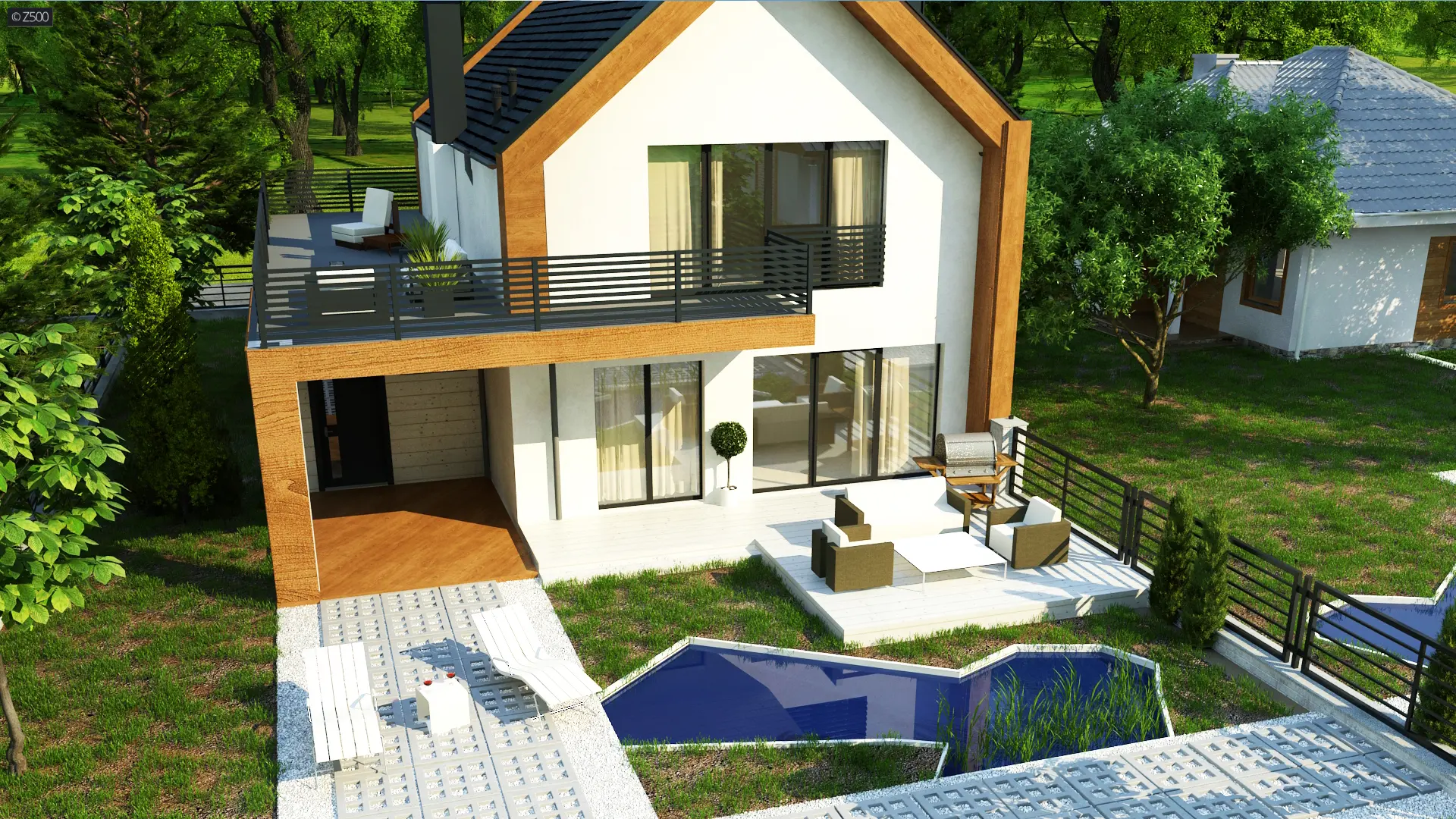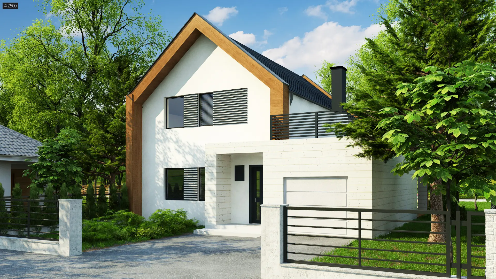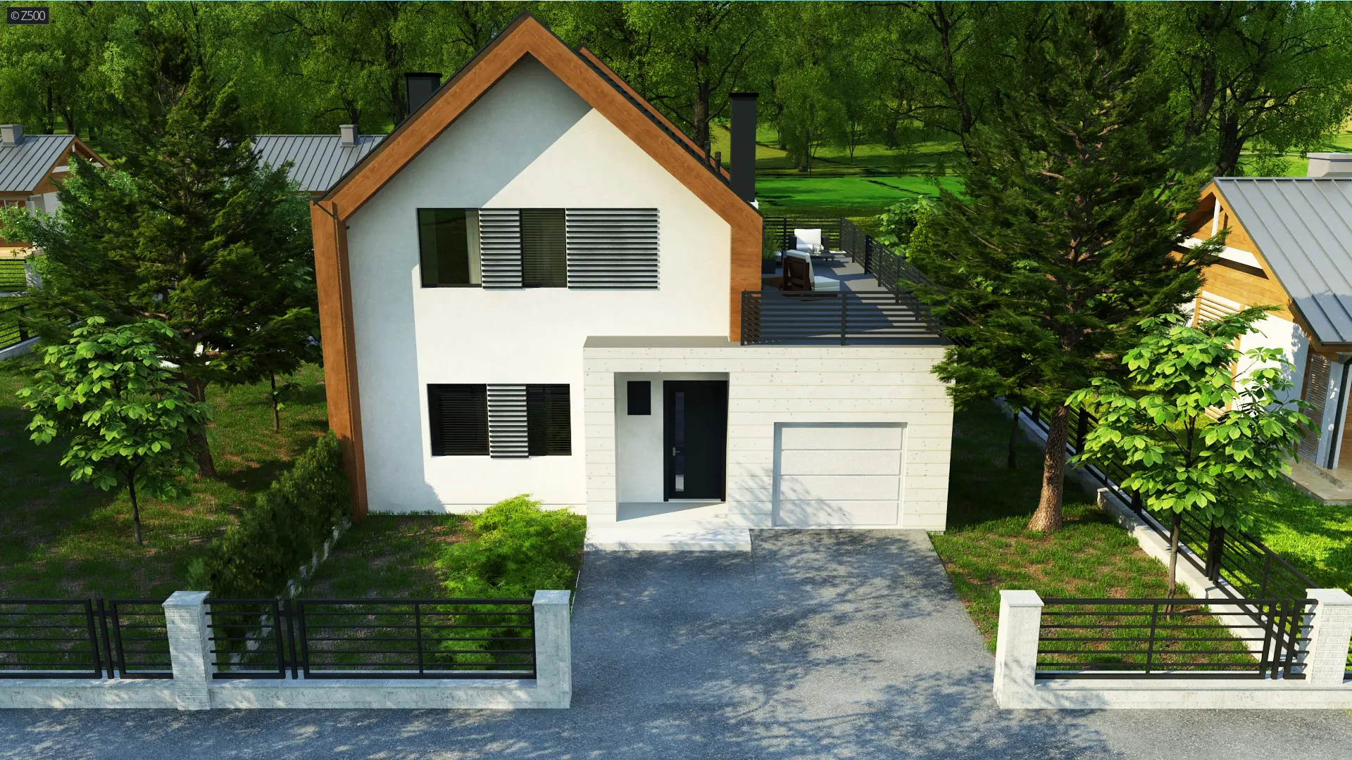 Z424 to projekt nowoczesnego domu dwurodzinnego. Część mieszkalna została przykryta dachem dwuspadowym, zaś garaż zwieńczono stropodachem. Bryła garażowa umiejscowiona jest z zewnętrznej części segmentów mieszkalnych, co umożliwia jej rozbudowanie na garaż wielostanowiskowy.