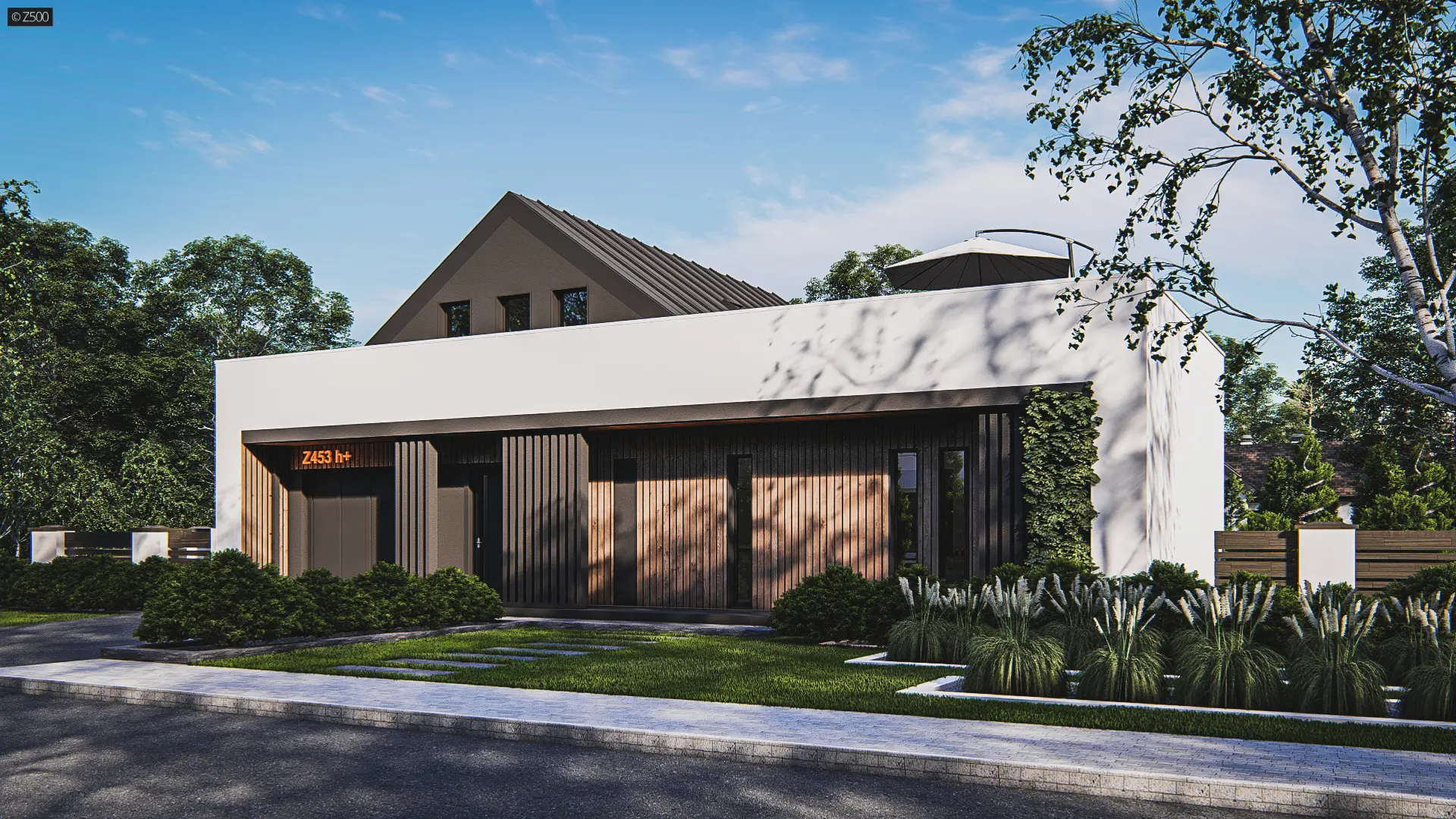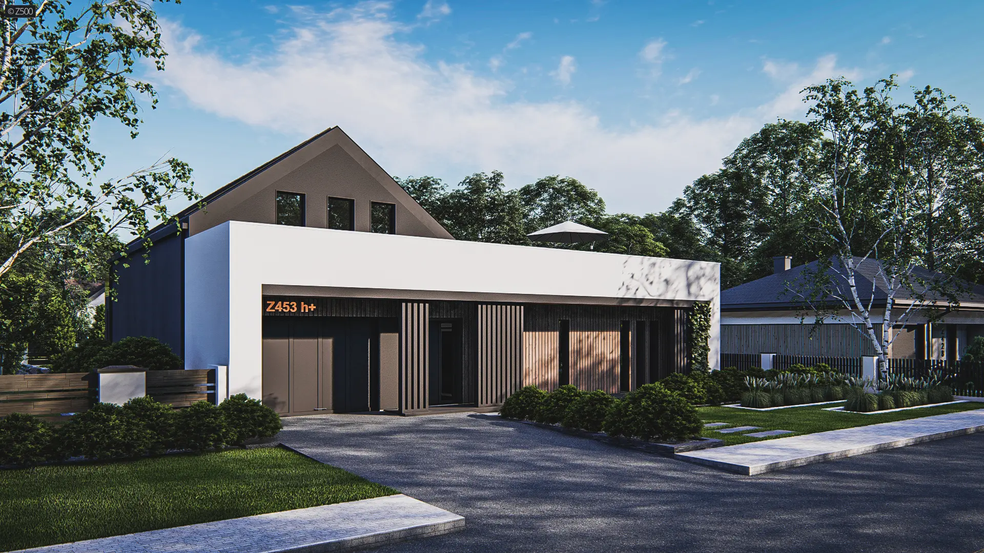 Projekt Z453 jest alternatywą dla ludzi, którzy lubią połączenie tradycji i nowoczesności. Sama bryła składa się z dachu dwuspadowego i płaskiego.