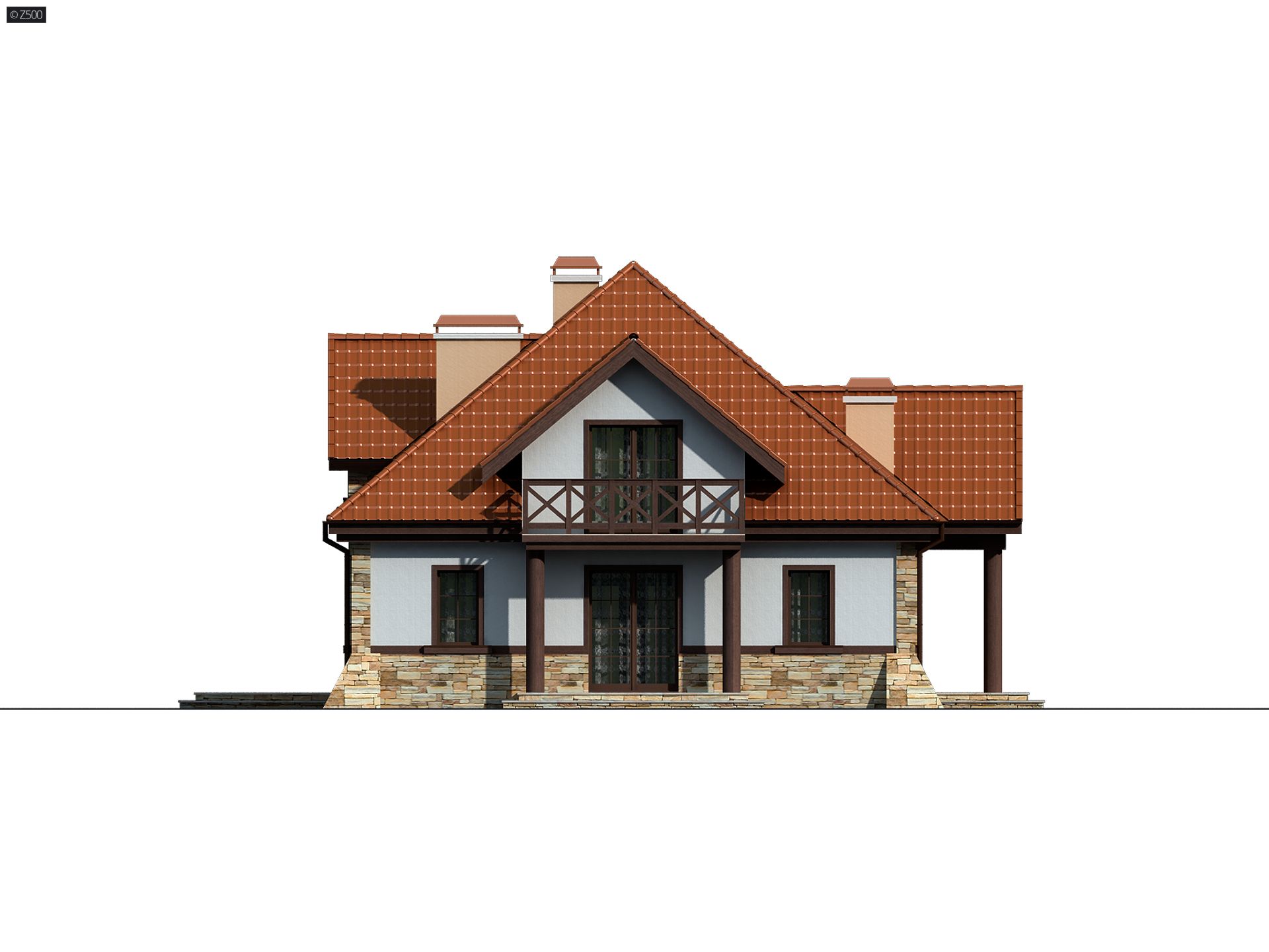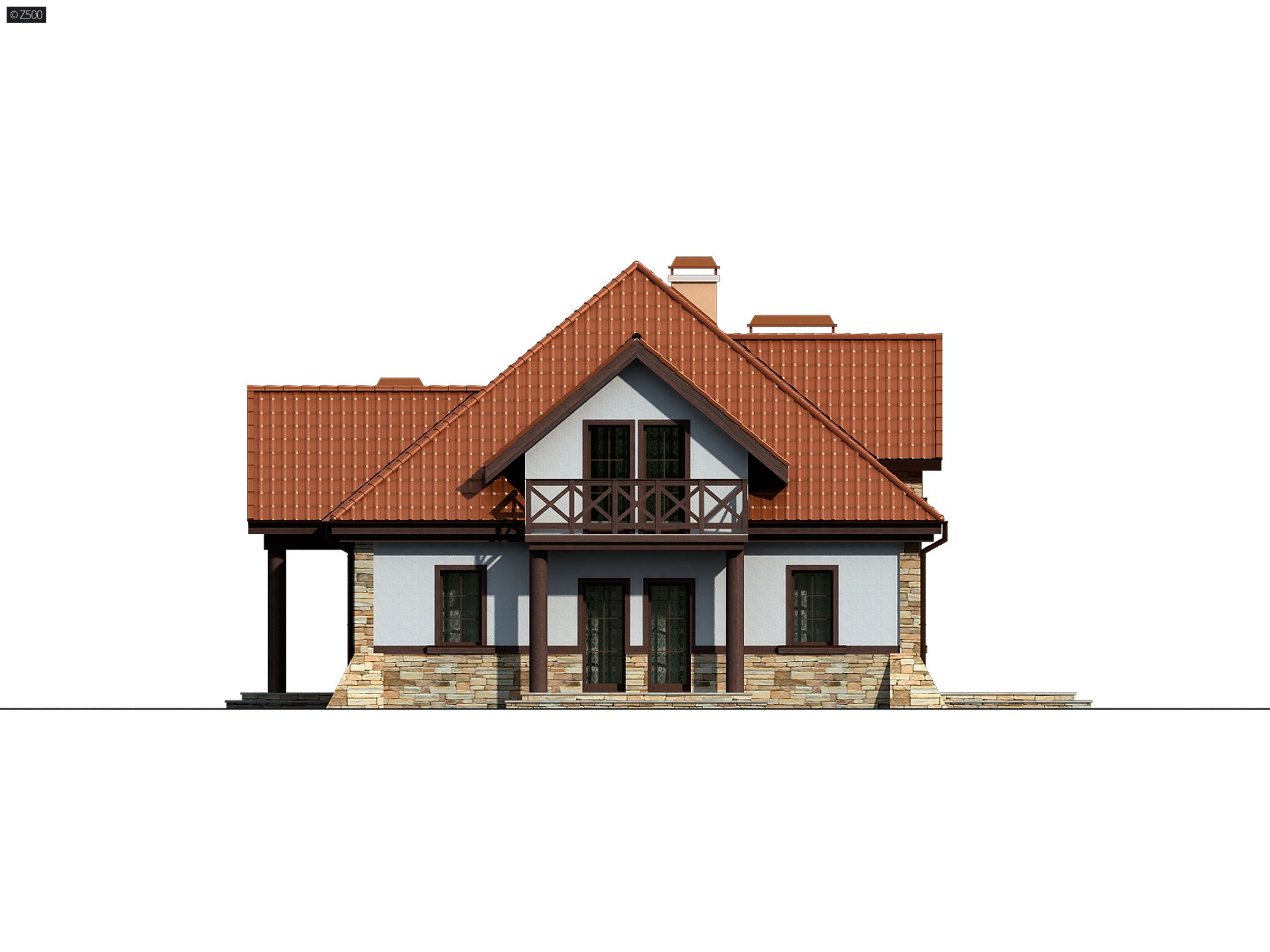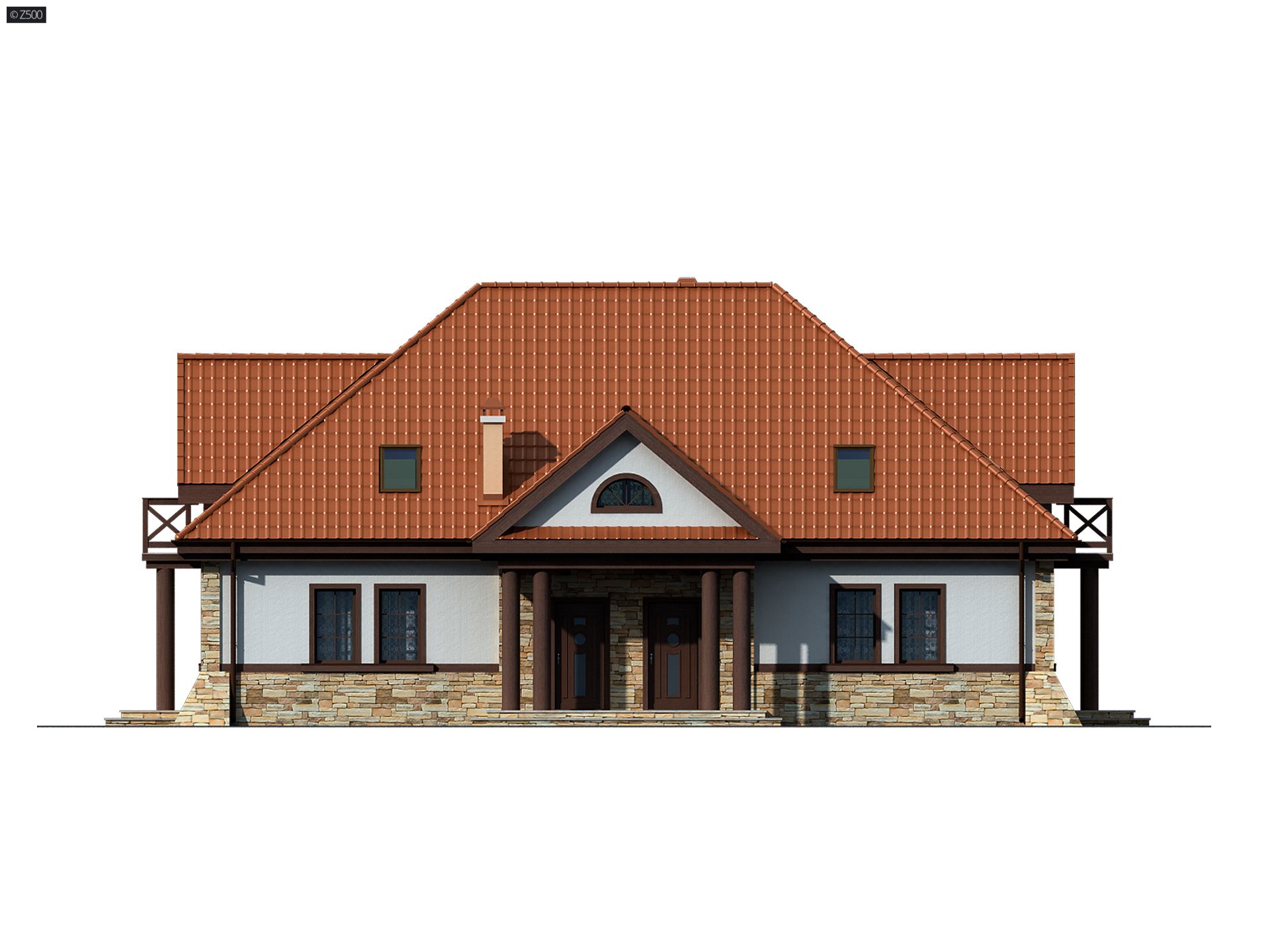 Bryła domu ma charakter dworu staropolskiego: od frontu wzbogaca ją wysunięty daszek wsparty na filarach, a elewacje mogą być urozmaicone wykończeniami z klinkieru lub kamienia łamanego, co nadaje malowniczy i niepowtarzalny klimat. Wnętrze domu zaplanowane jest w sposób funkcjonalny, mający na uwadze ekonomikę użytkowania: zblokowany węzeł sanitarny w pomieszczeniu gospodarczym.