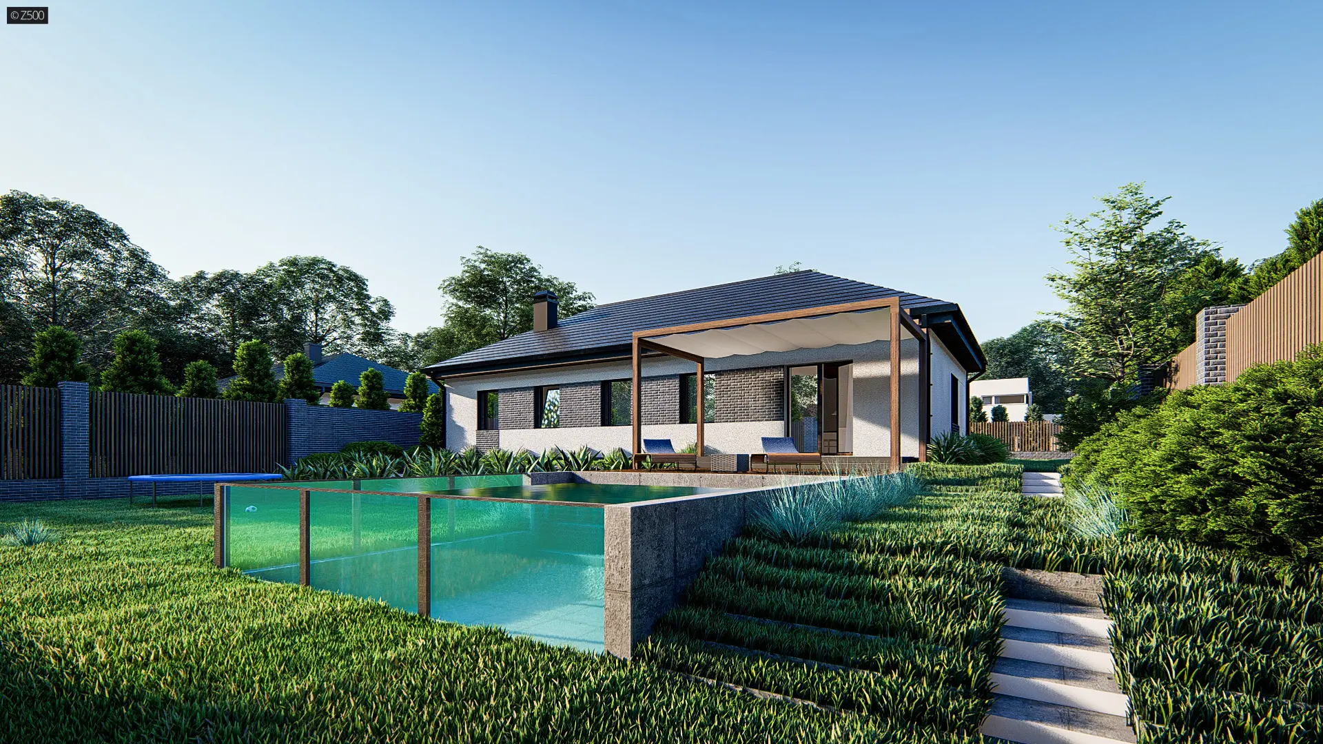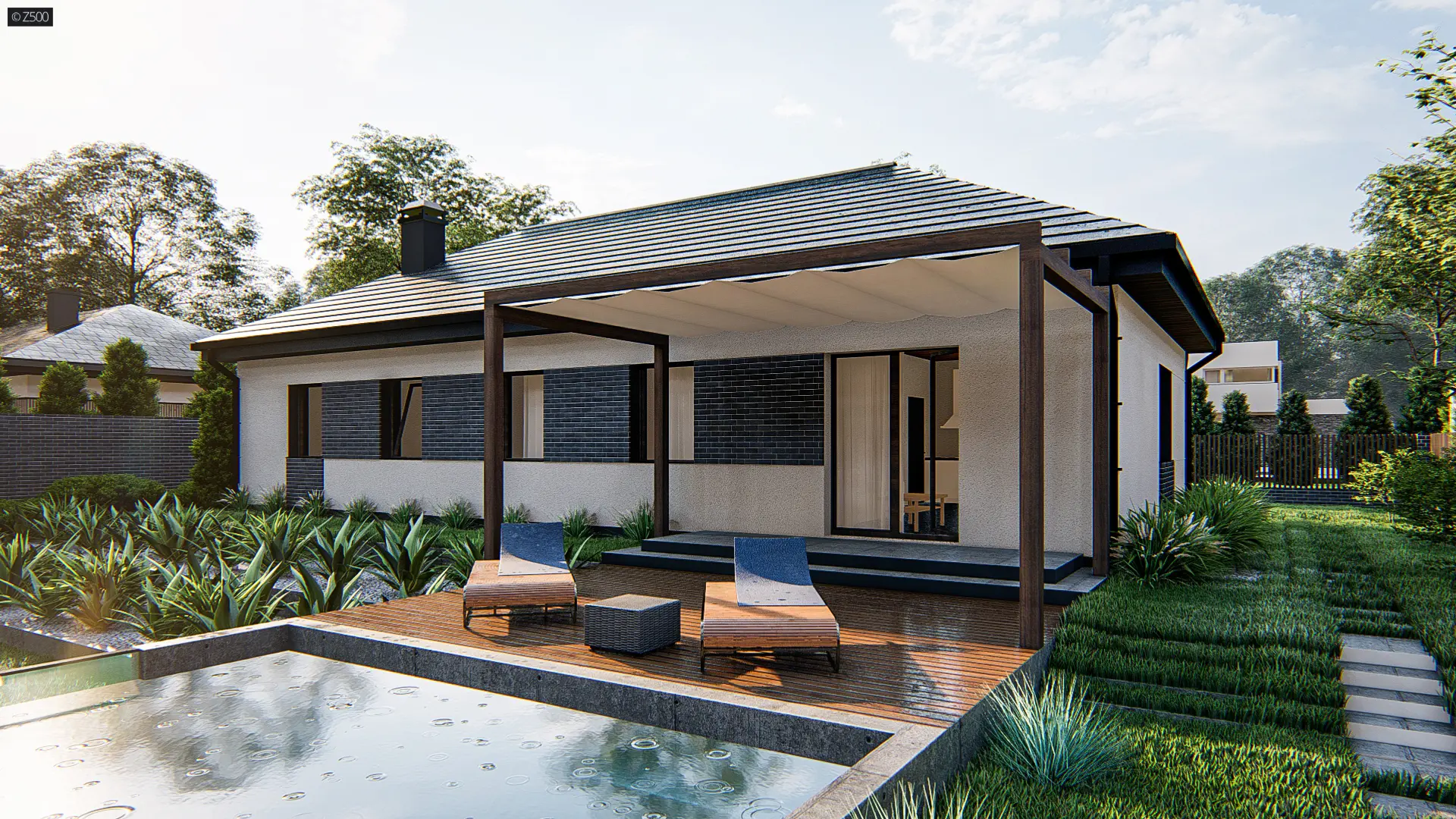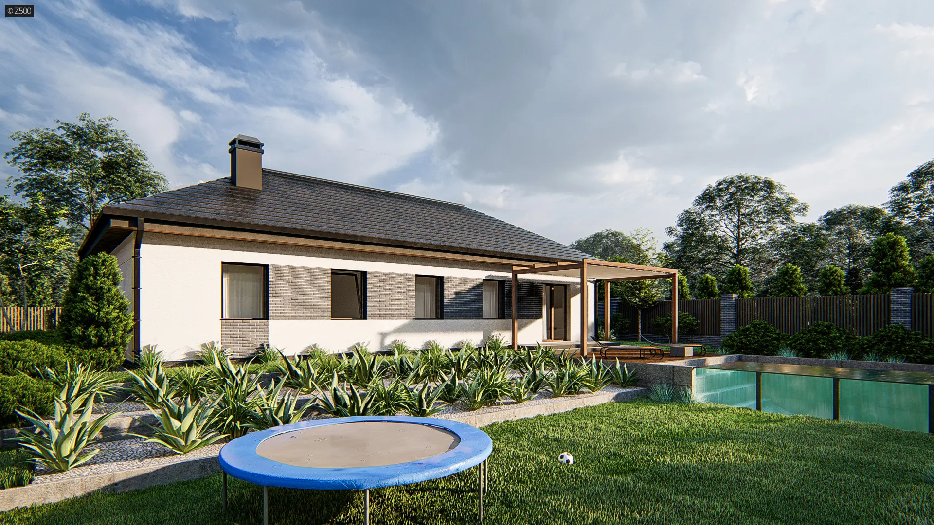Parterowy dom z 3 pokojami, salonem z jadalnią i garażem jednostanowiskowym
