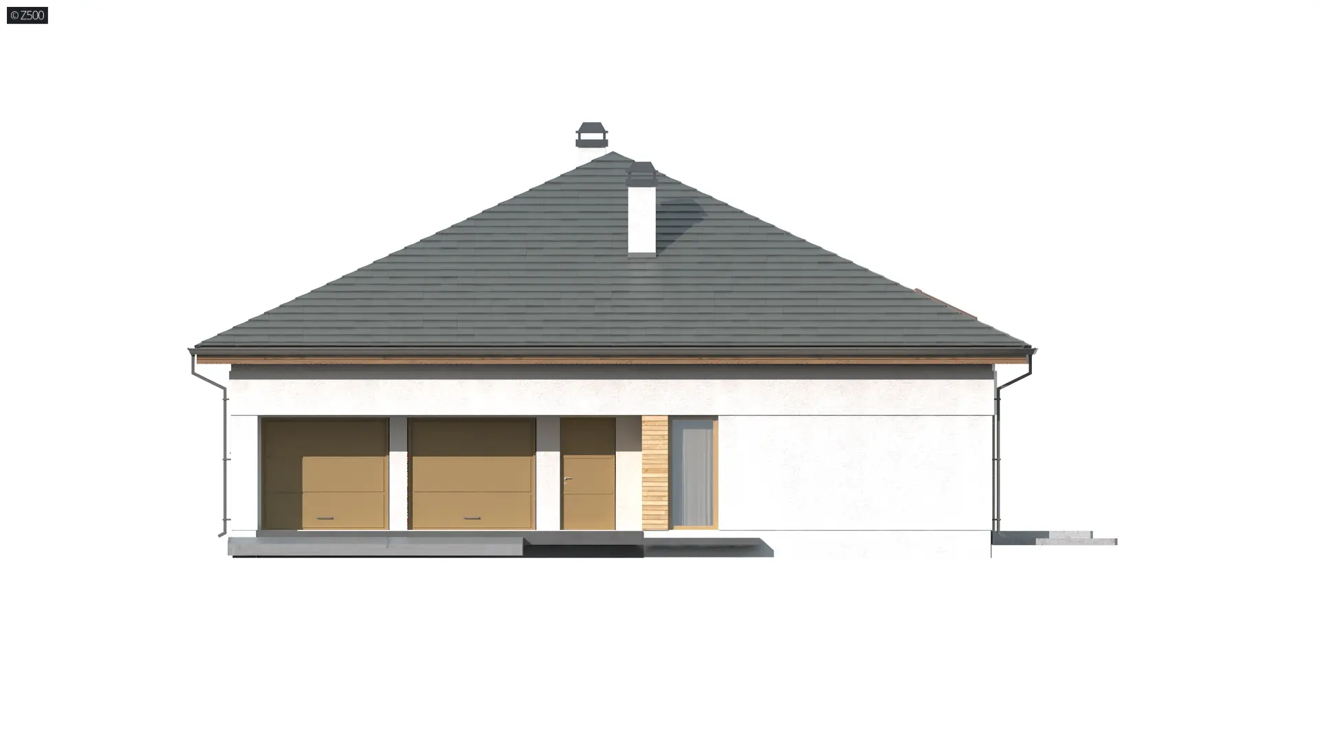 Istnieje możliwość zaprojektowania wjazdu do garażu na bocznej elewacji, co pozwoli na inne ustawienie budynku na działce – z bocznym wejściem.