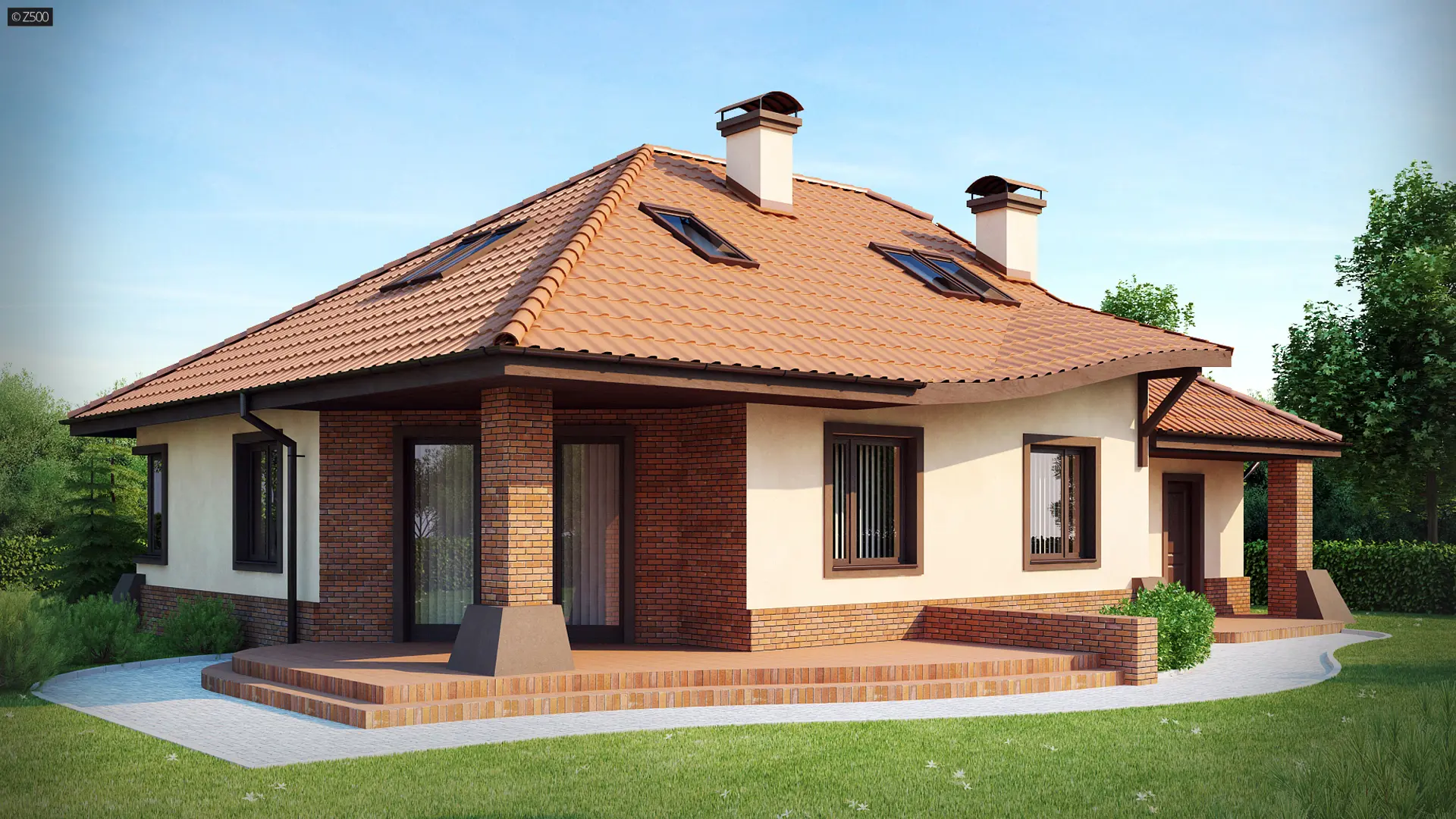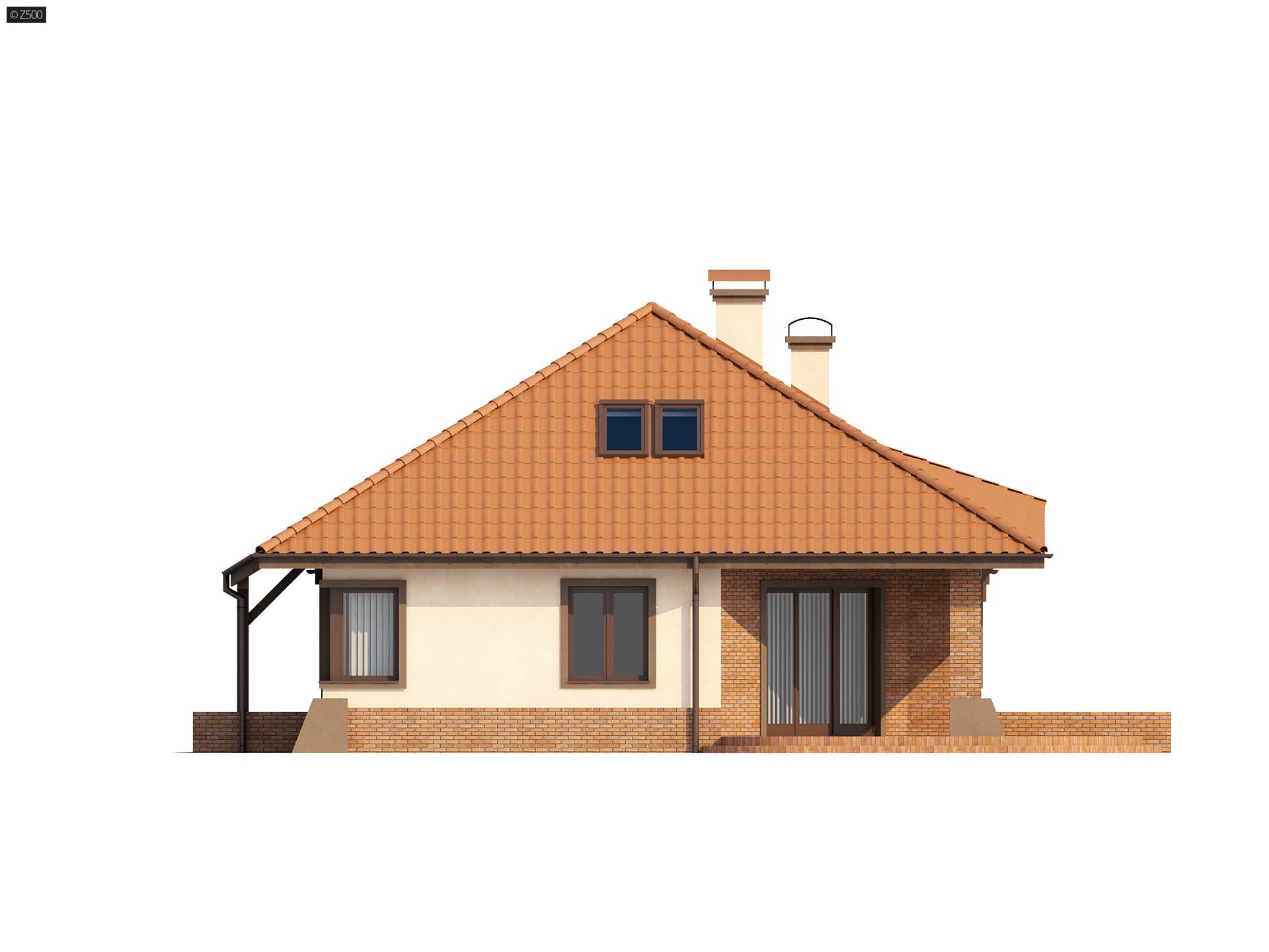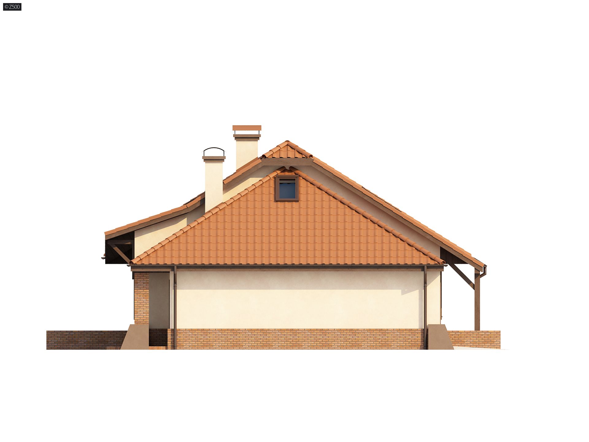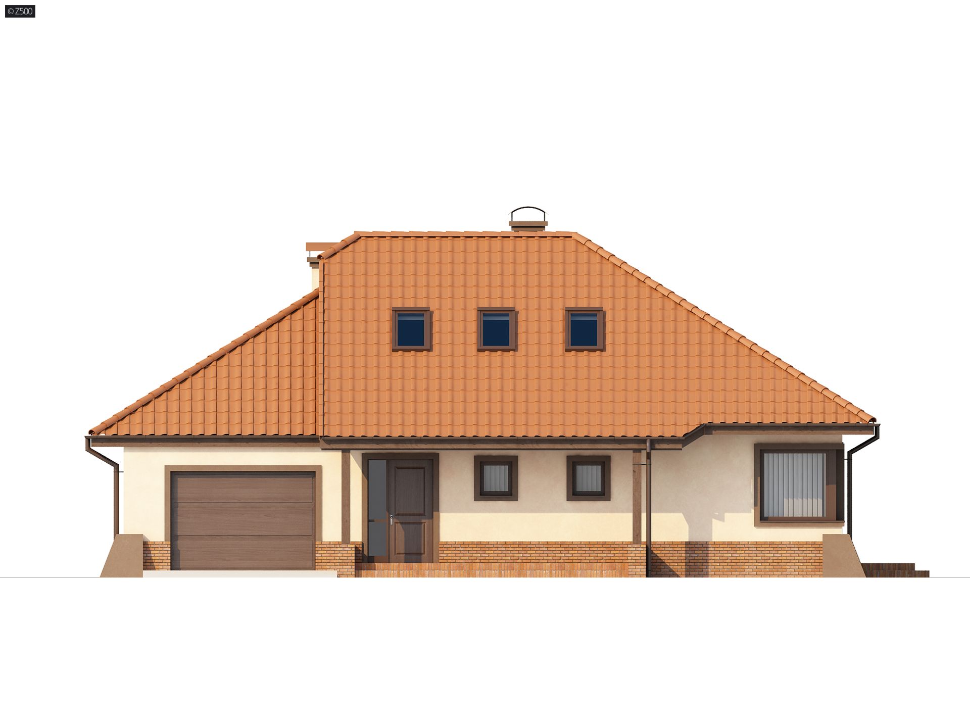 Projekt Z56 to propozycja domu z kopertowym dachem i garażem. Budynek zaprojektowano na rzucie zbliżonym do prostokąta. Słupy podpierające podcień, oraz przypory czynią dom efektownym i indywidualnym.