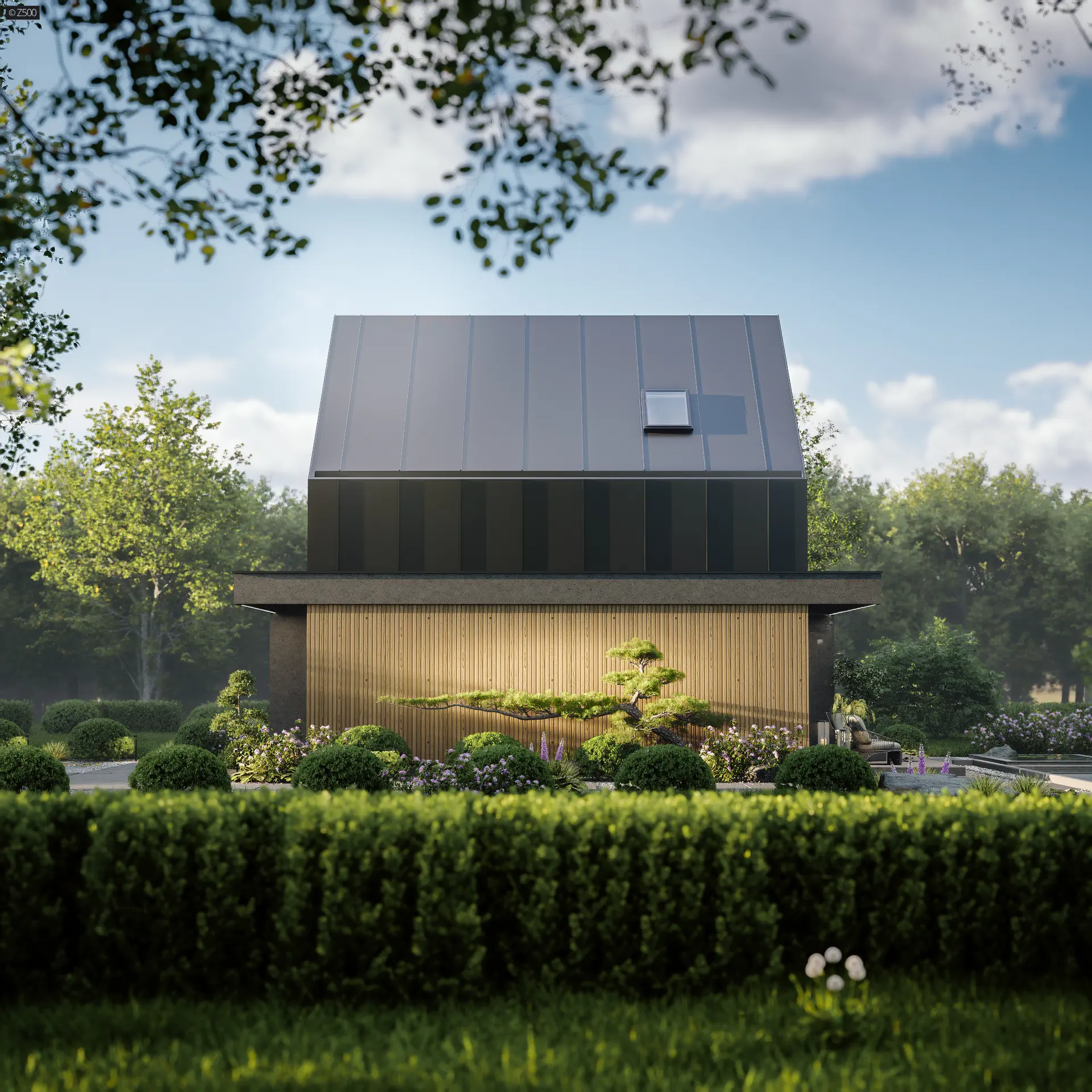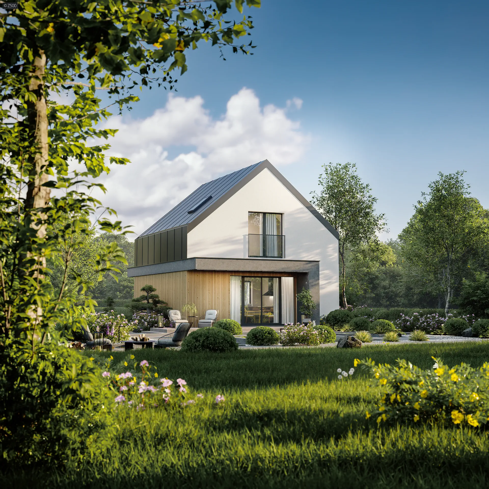 Dom w stylu nowoczesnej stodoły z pompą ciepła, dachem bez okapu i 2 pokojami