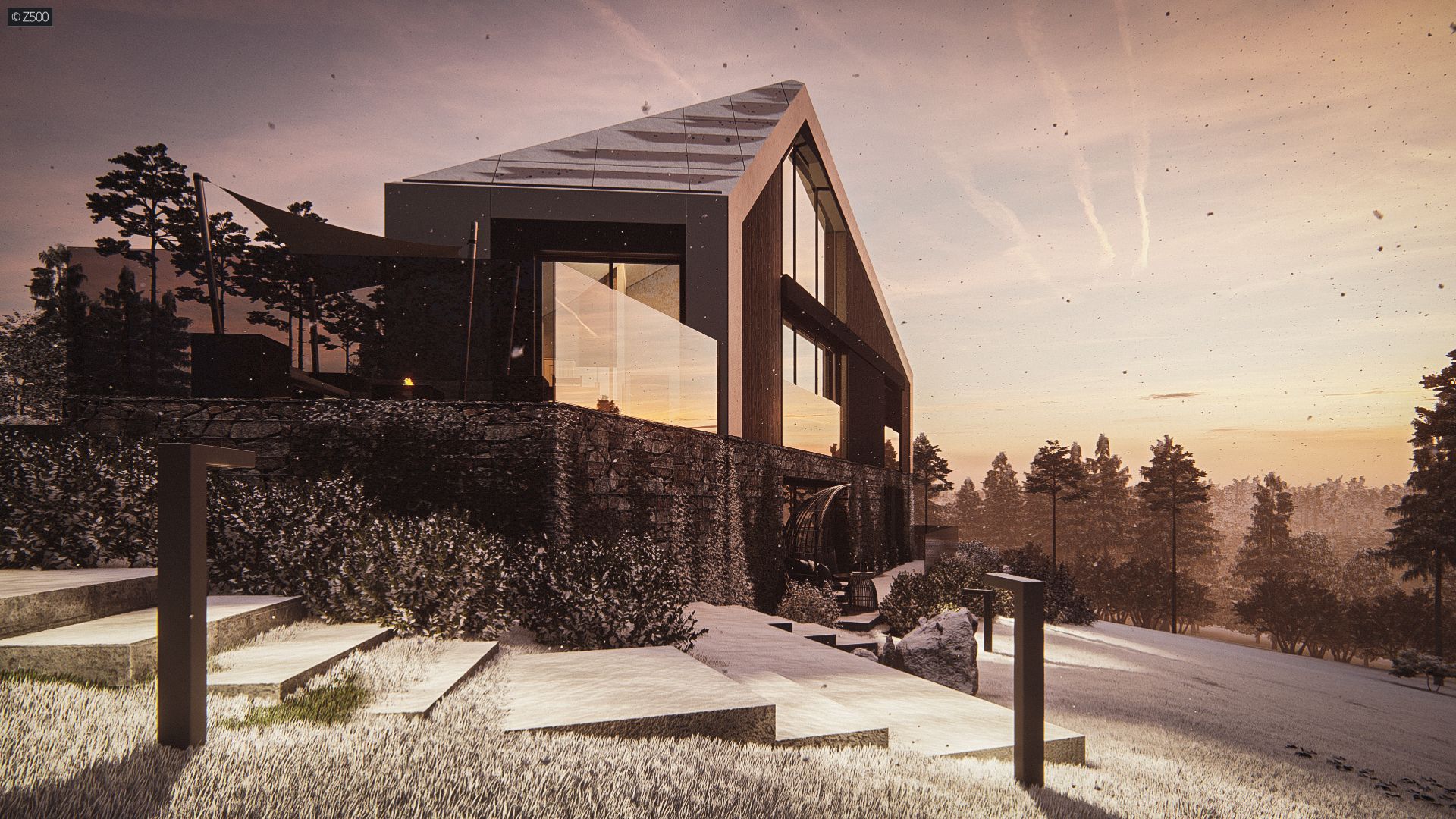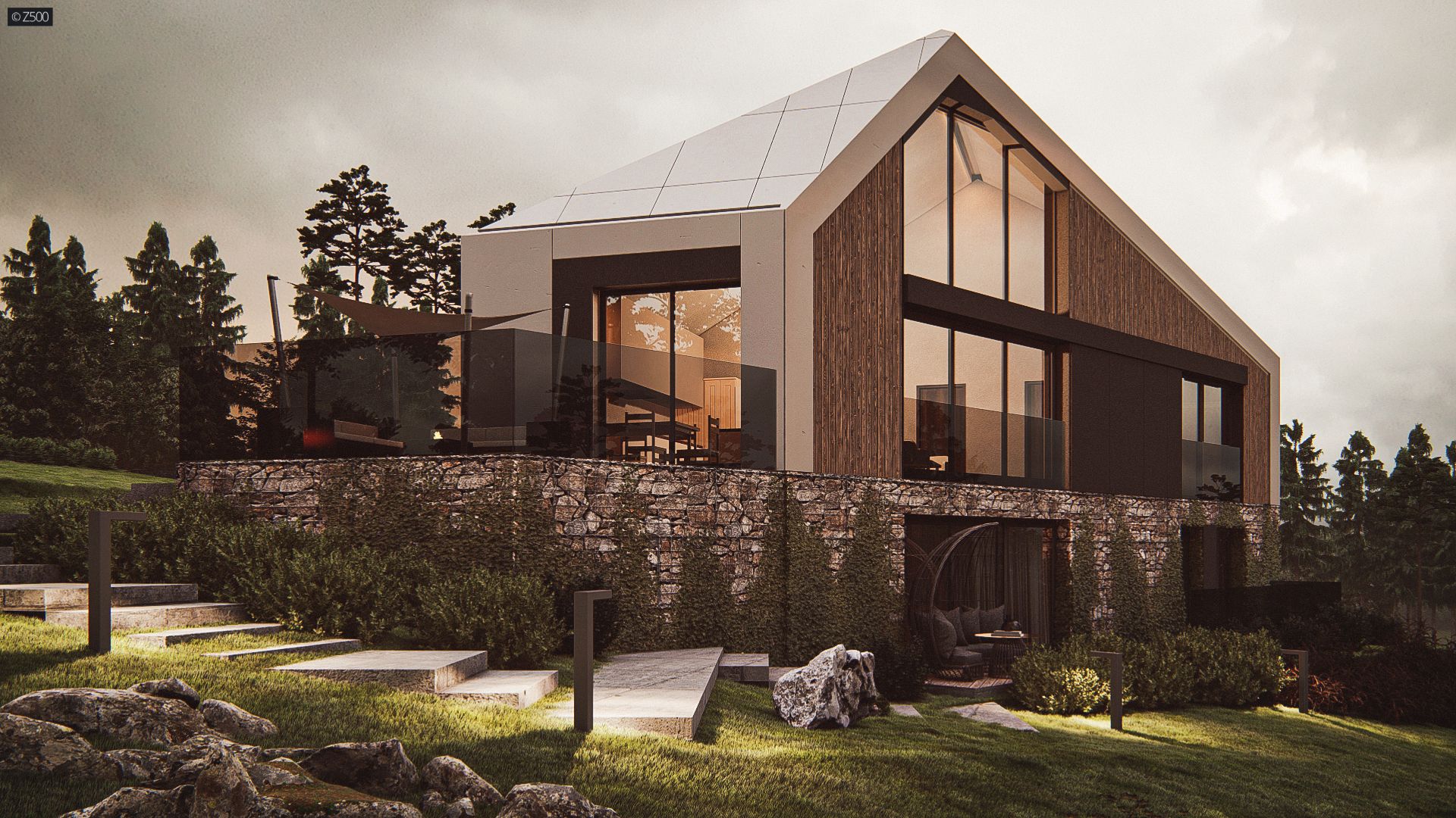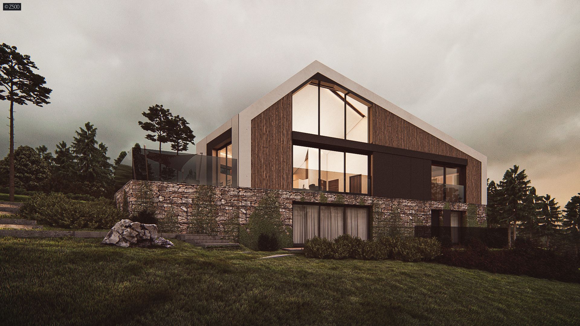 wariant projektu na skarpę ze zmienionym układem wnętrza, bez tarasów