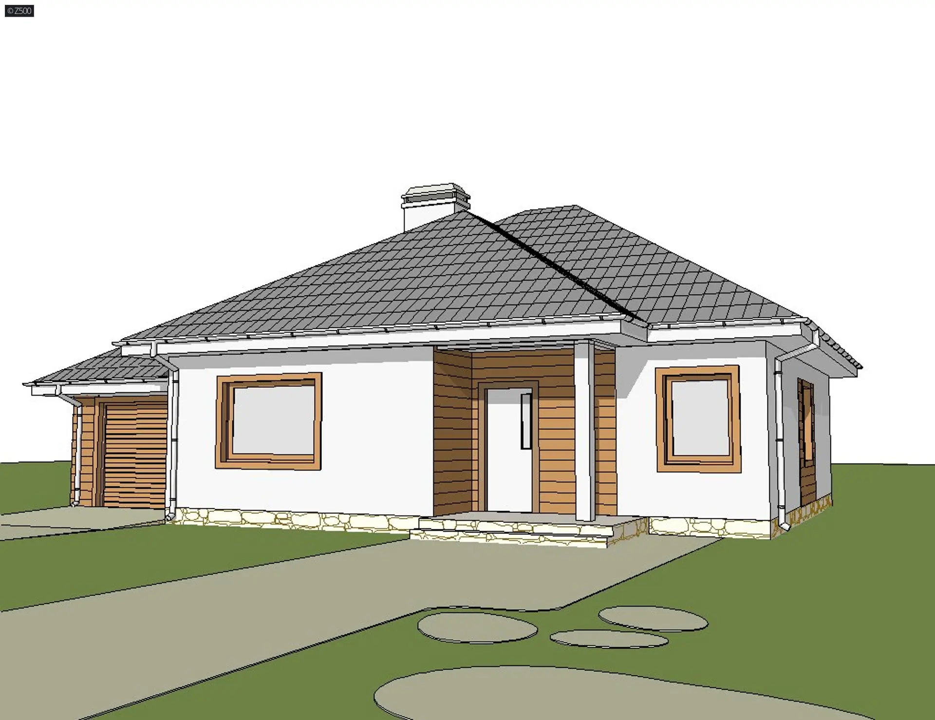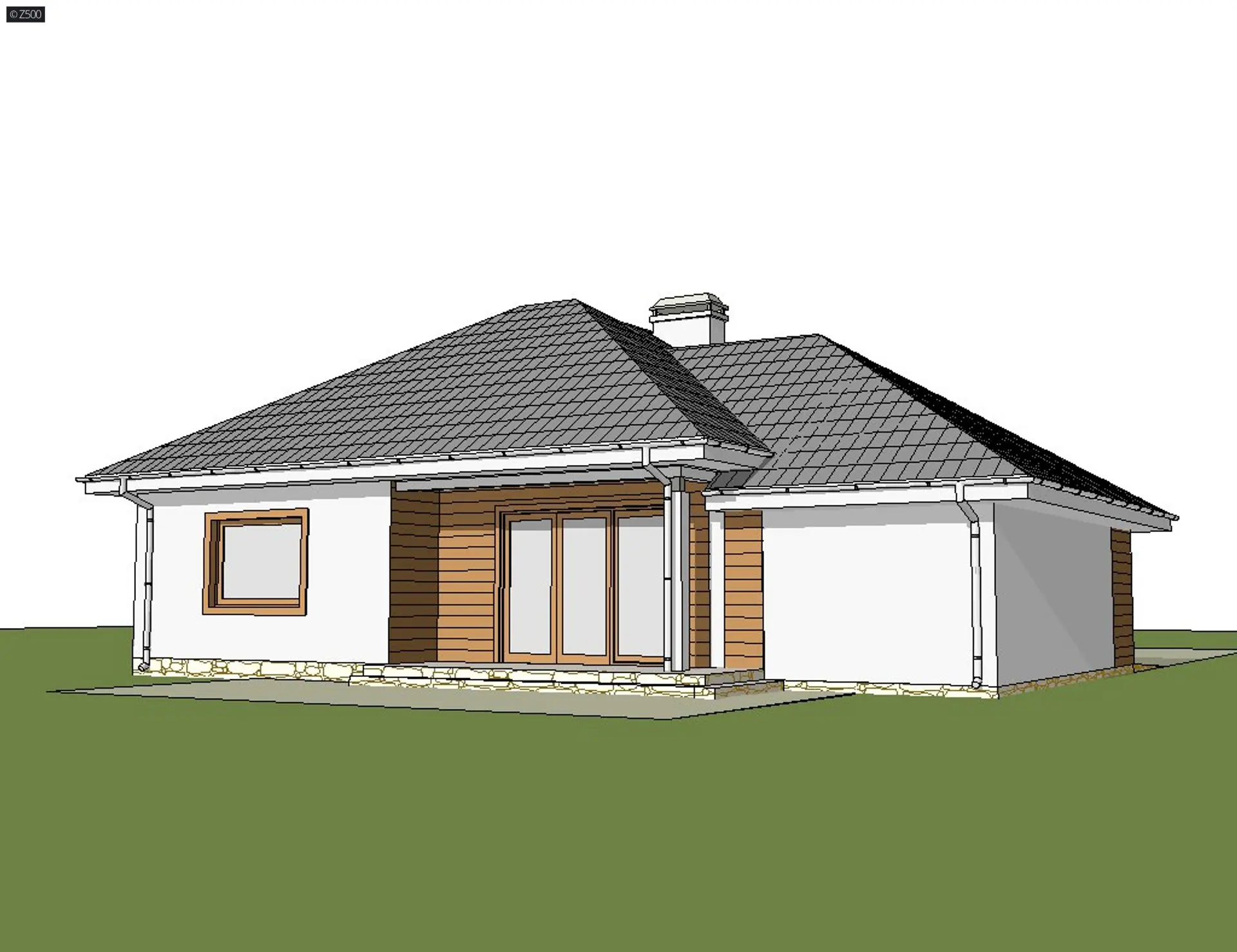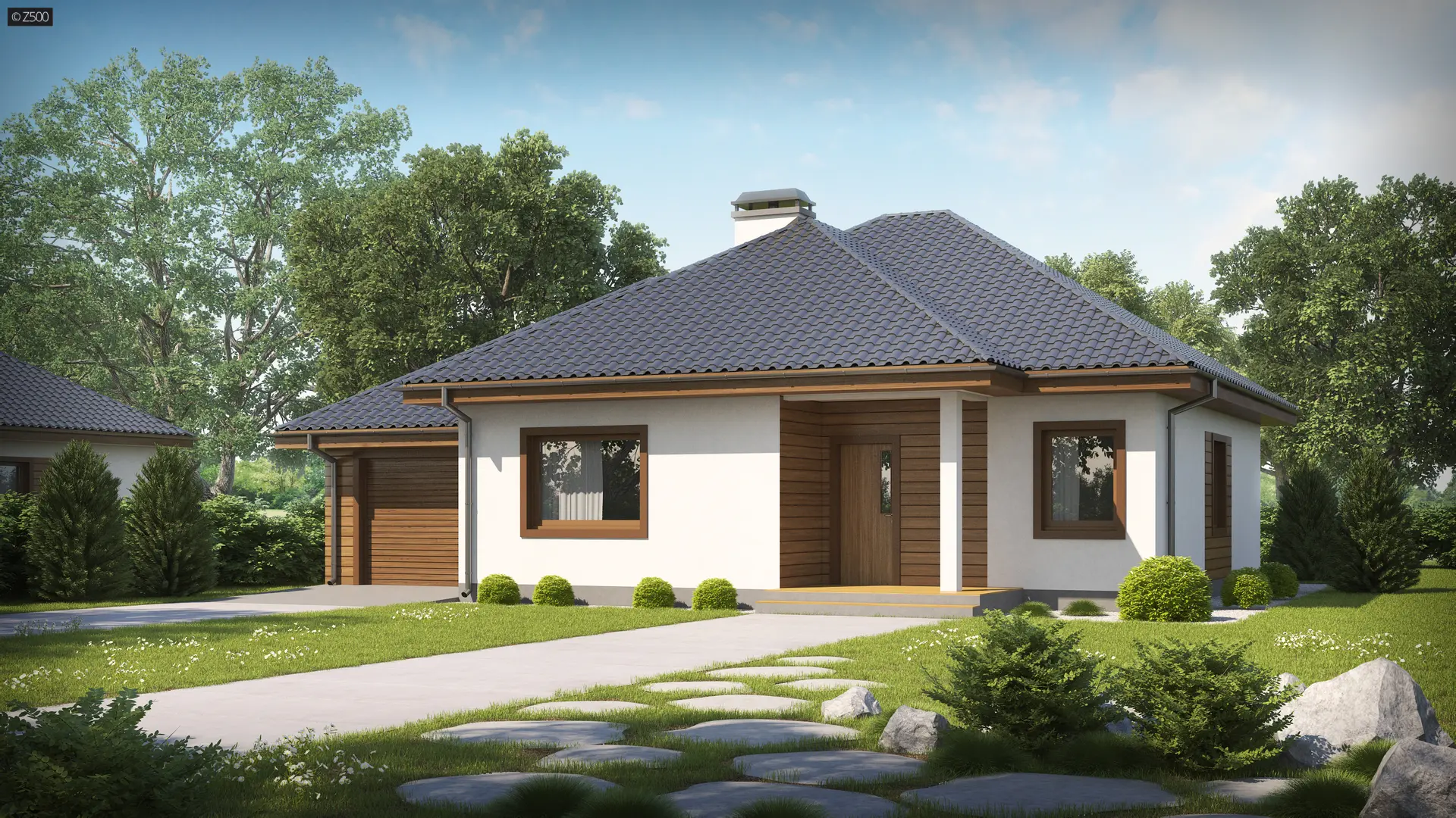 Praktyczny dom parterowy z garażem, dużą strefą dzienną, tarasem i spiżarnią